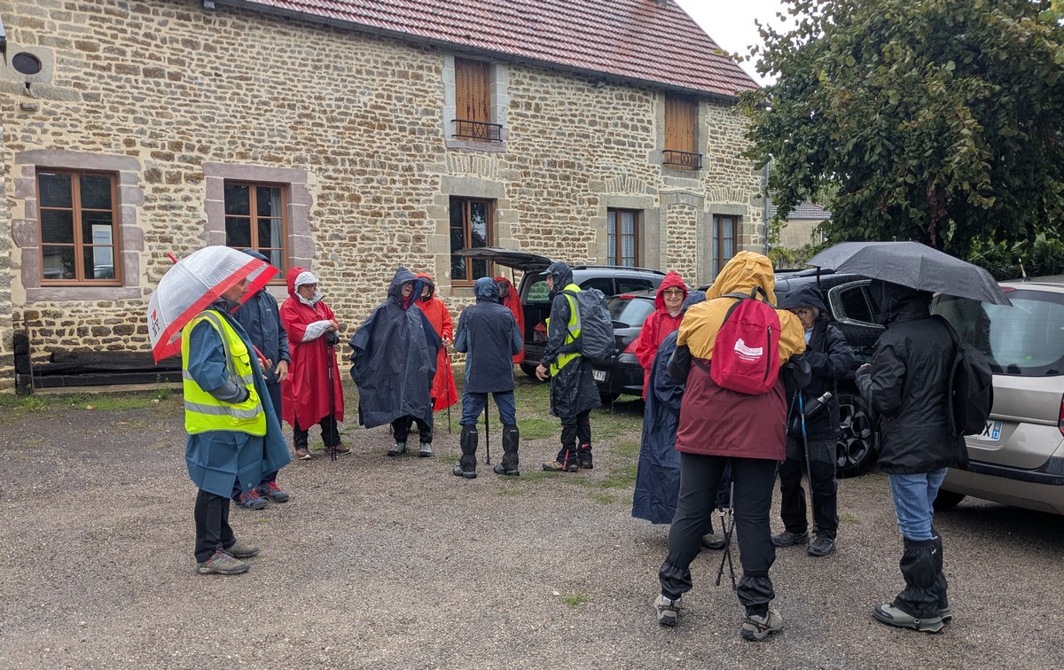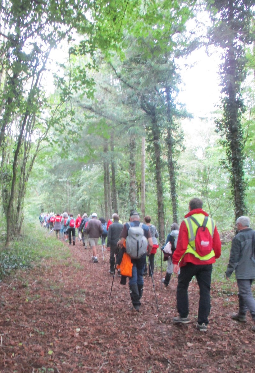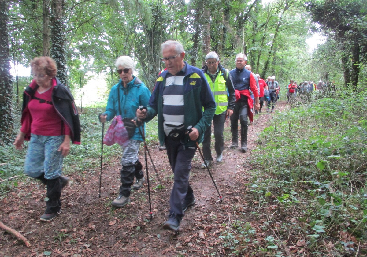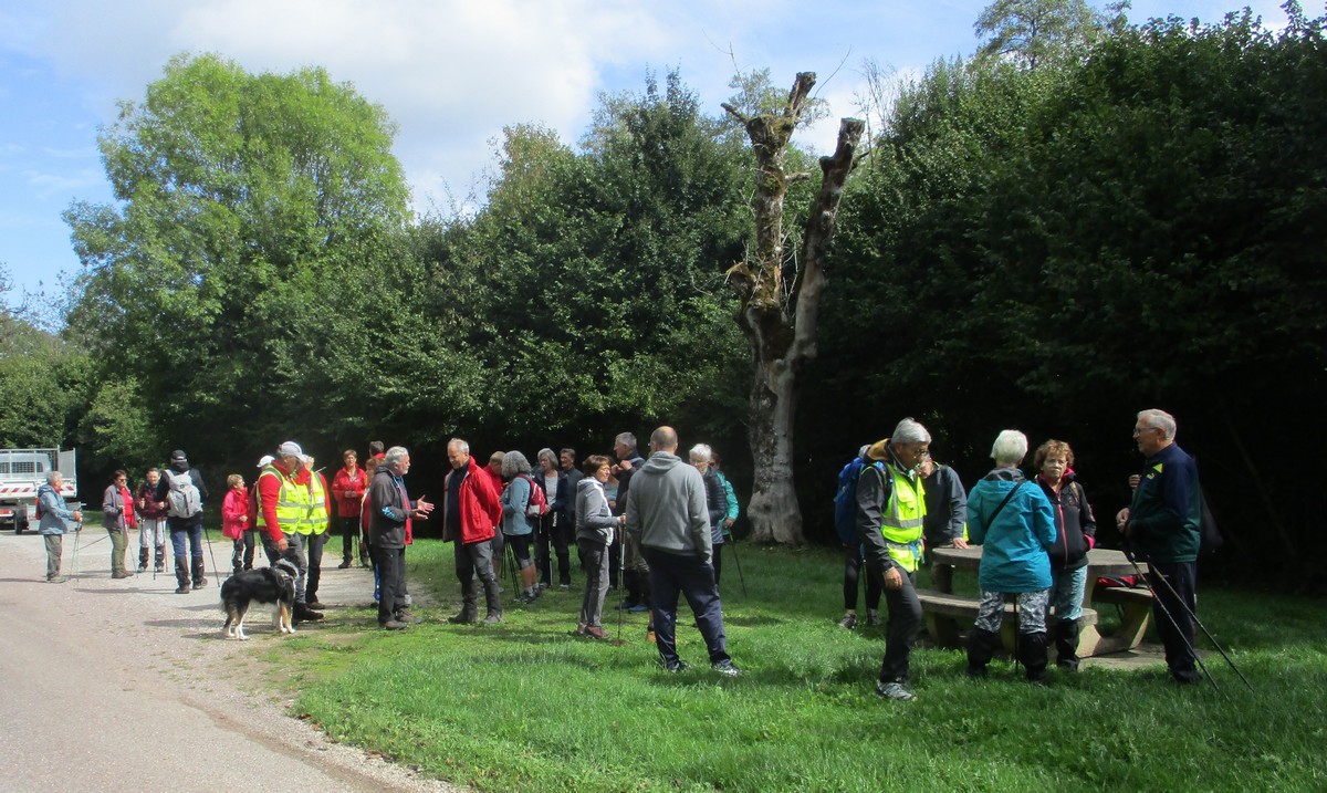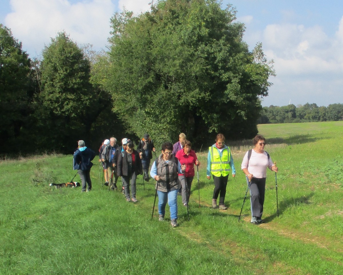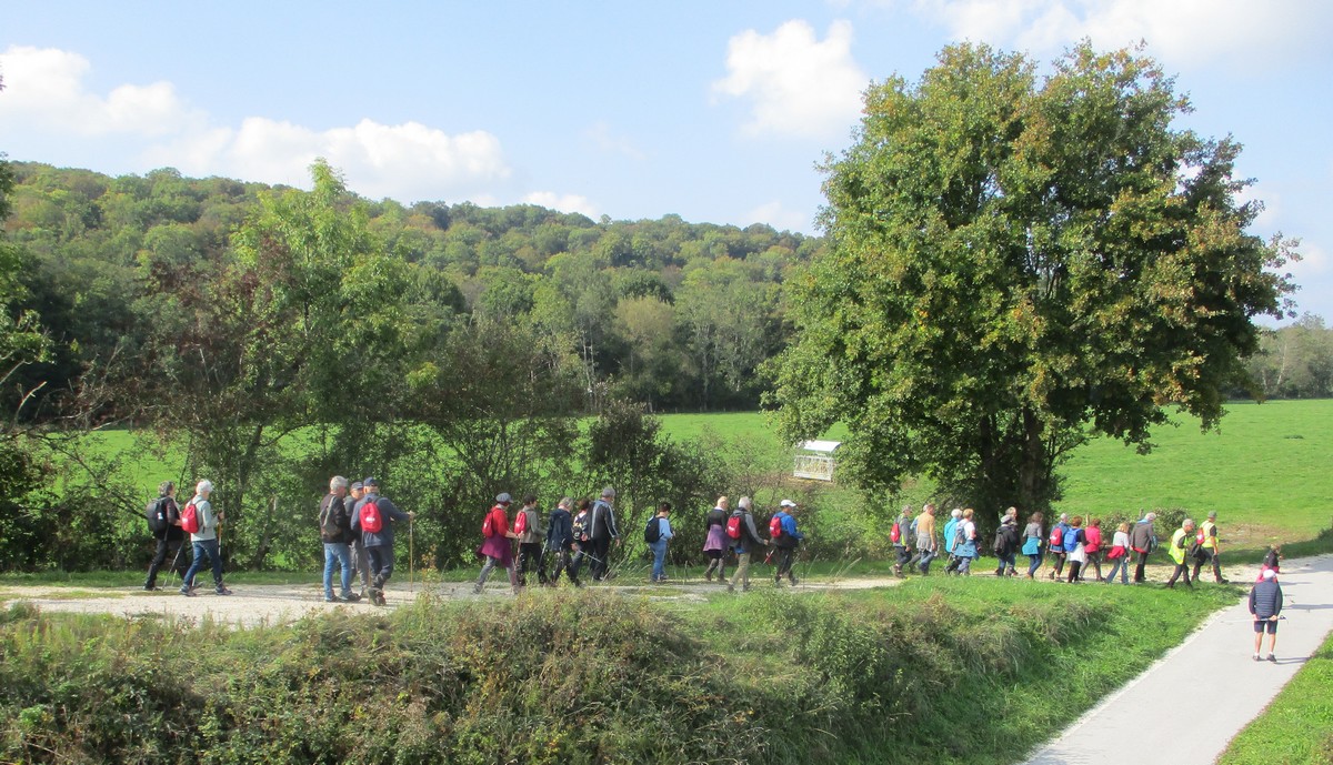Nous voici de retour de vacances sous le soleil. Nous sommes une cinquantaine de valeureux marcheurs à venir à Vieux-Moulins pour repartir du bon pied ou plutôt de bons pieds. Après s’être raconté nos périples de la semaine passée, nous partons en direction de Perrancey et plus précisément du hameau du « Moulin des Pères », lequel nous traversons pour rejoindre le bois. Les sentiers sont légèrement humides, mais pas gouillasseux. Quelques entraves barrent notre parcours par endroits, mais Noël nous fait le chemin. Nous sortons du bois pour traverser le ruisseau de Lanvau (Lanvas disent certains) qui coule fort après les dernières pluies tombées. Une bonne grimpette pour le cardio et nous voici sur le plateau où nous décidons de faire la photo de groupe ; ça en fait du monde sur la pellicule. Nous finissons tranquillement notre balade, toujours sous le soleil, jusqu’à redescendre en direction du village en suivant le cours de la « Mouche ». Et pour finir, un dicton local : « Tout est bien à Vieux-Moulins. Si tu y viens, tu y reviens » signé Gilberte !