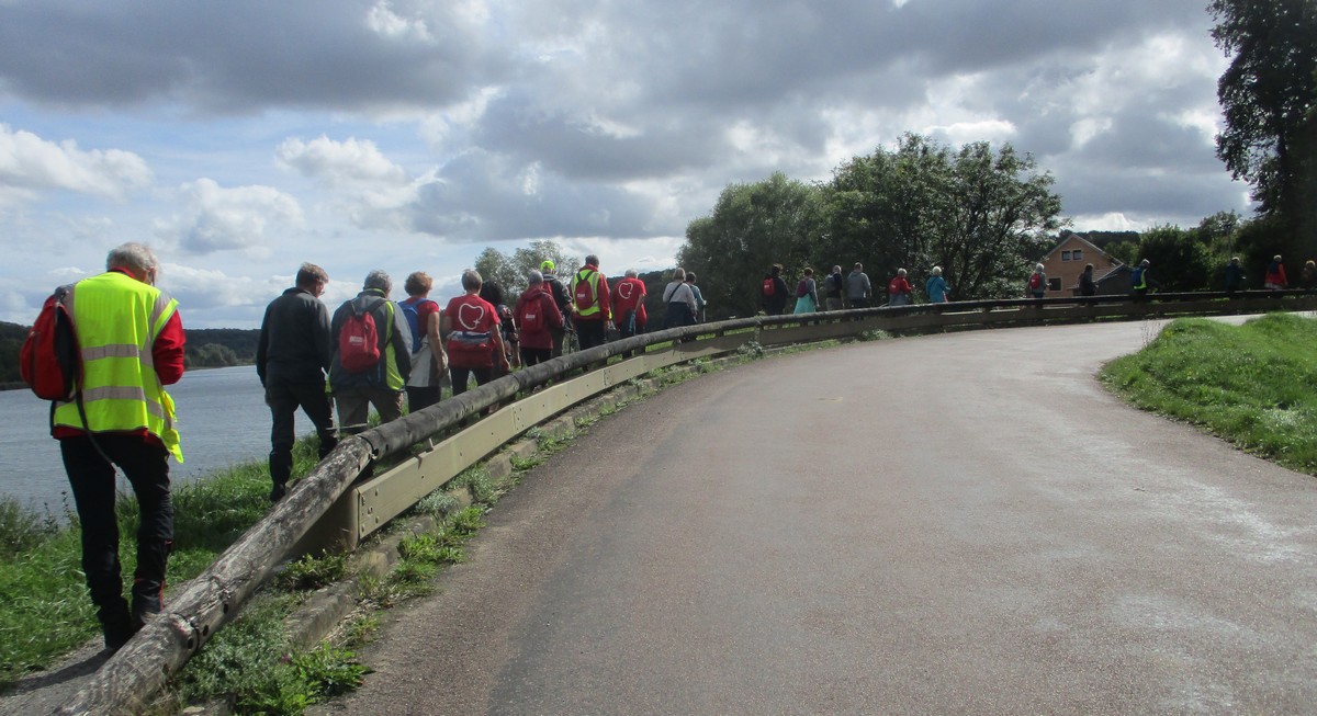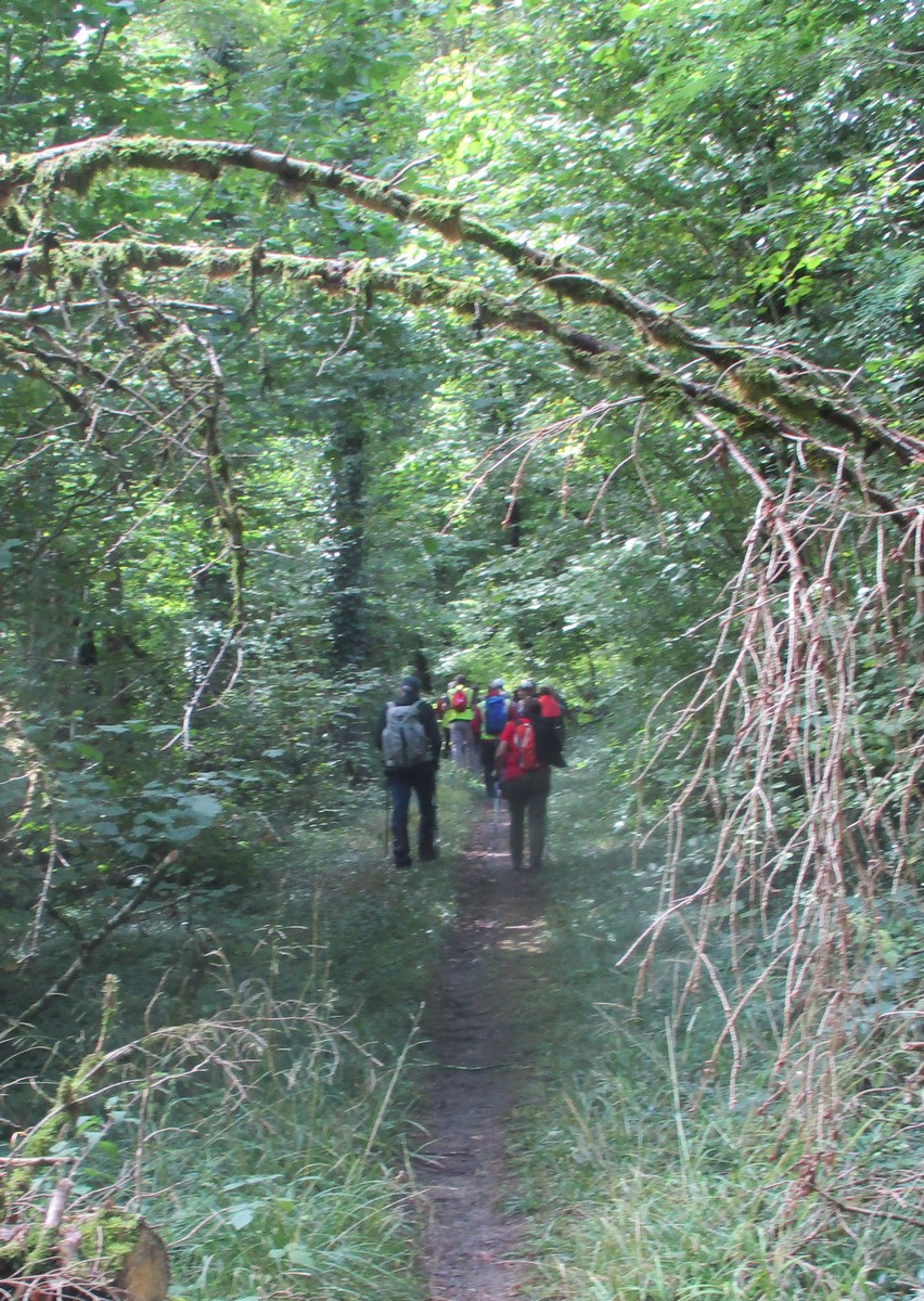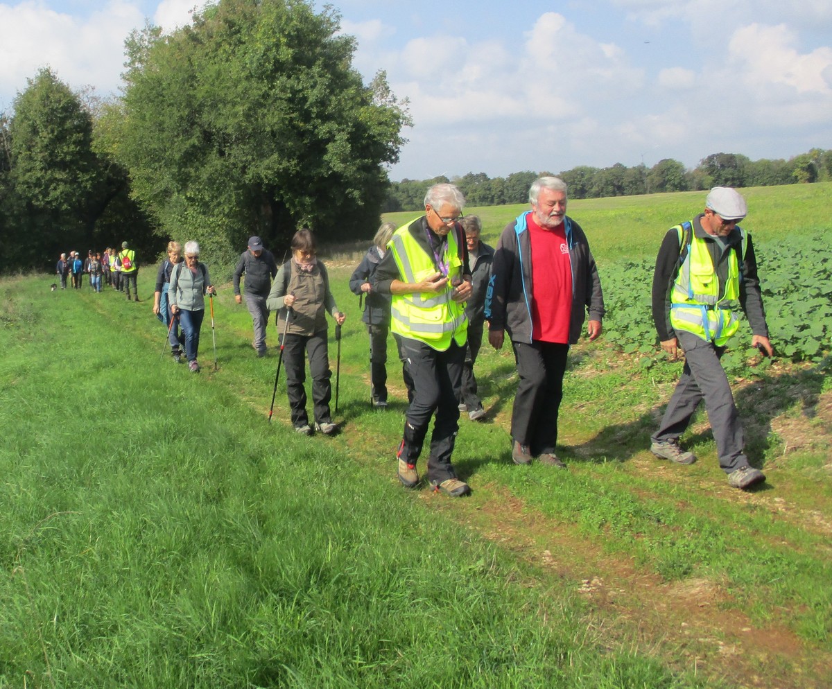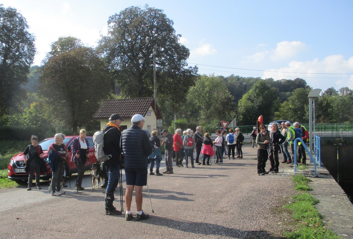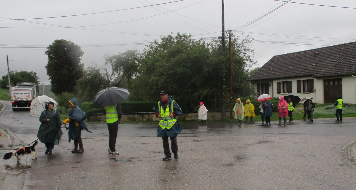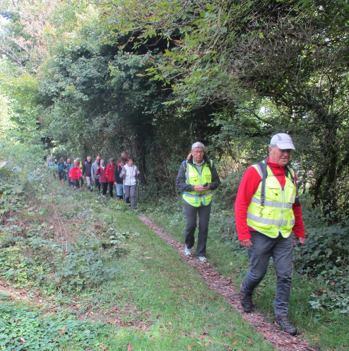 Nous voici de retour de vacances sous le soleil. Nous sommes une cinquantaine de valeureux marcheurs à venir à Vieux-Moulins pour repartir du bon pied ou plutôt de bons pieds. Après s’être raconté nos périples de la semaine passée, nous partons en direction de Perrancey et plus précisément du hameau du « Moulin des Pères », lequel nous traversons pour rejoindre le bois. Les sentiers sont légèrement humides, mais pas gouillasseux. Quelques entraves barrent notre parcours par endroits, mais Noël nous fait le chemin. Nous sortons du bois pour traverser le ruisseau de Lanvau (Lanvas disent certains) qui coule fort après les dernières pluies tombées. Une bonne grimpette pour le cardio et nous voici sur le plateau où nous décidons de faire la photo de groupe ; ça en fait du monde sur la pellicule. Nous finissons tranquillement notre balade, toujours sous le soleil, jusqu’à redescendre en direction du village en suivant le cours de la « Mouche ». Et pour finir, un dicton local : « Tout est bien à Vieux-Moulins. Si tu y viens, tu y reviens » signé Gilberte !