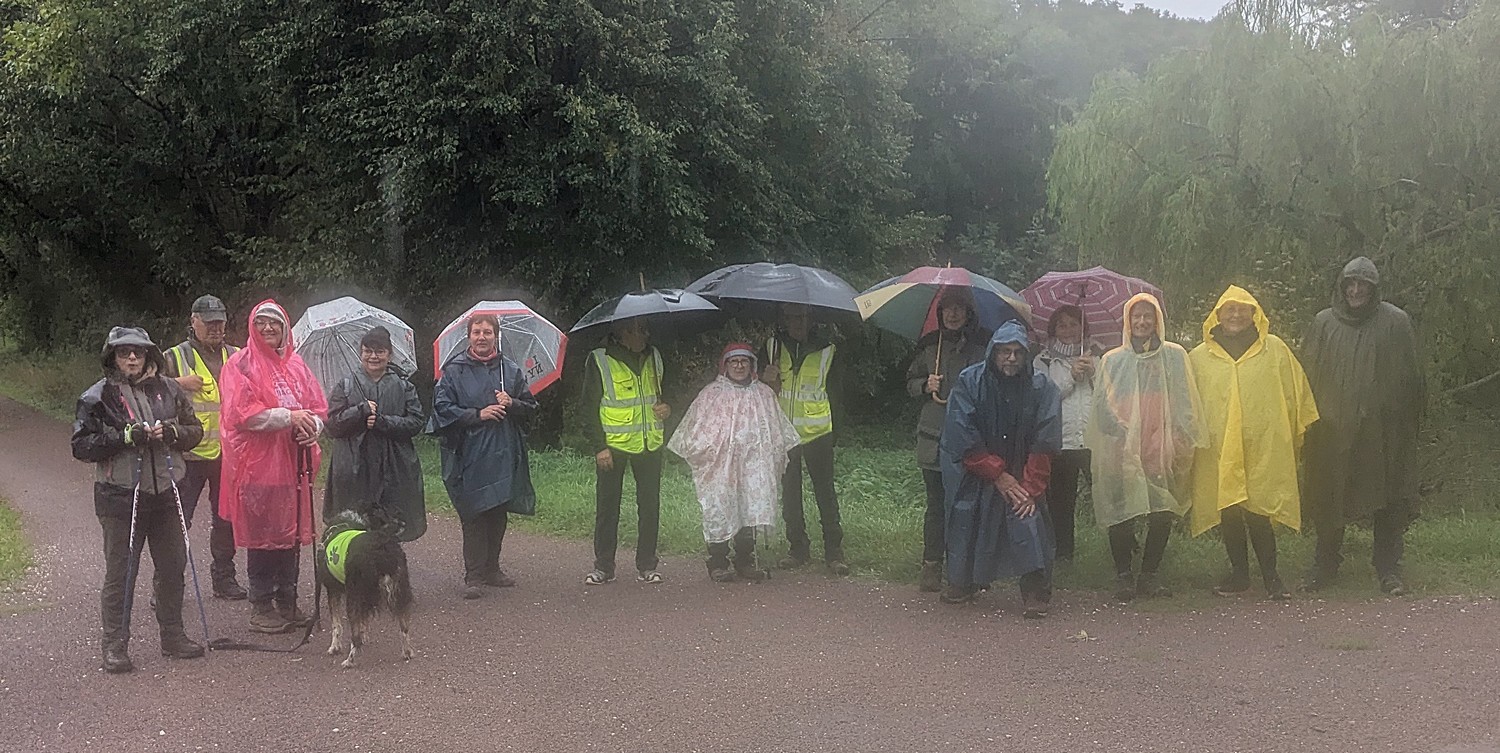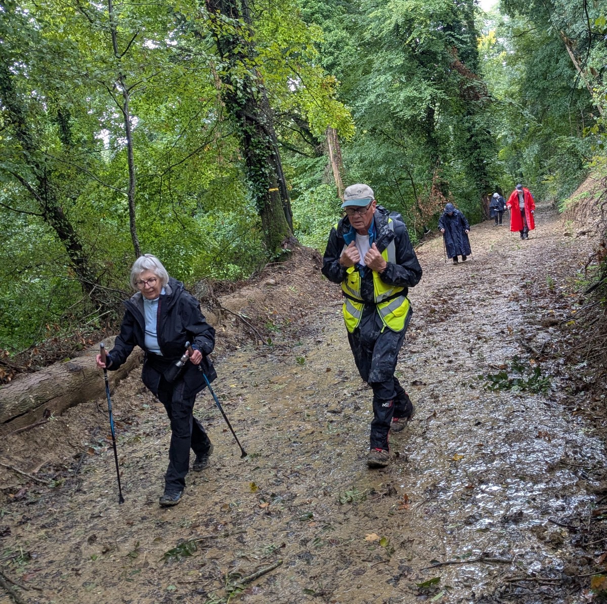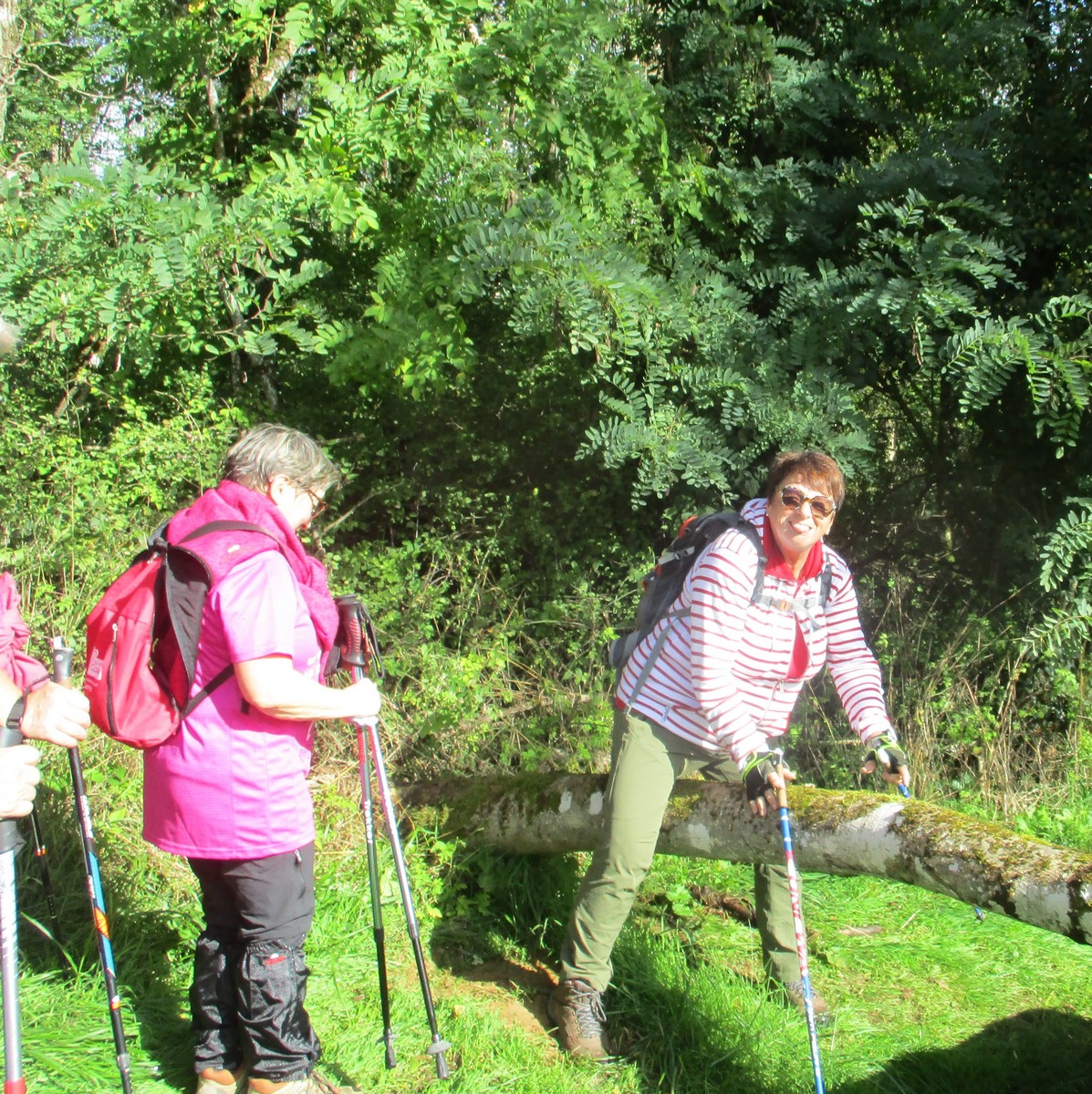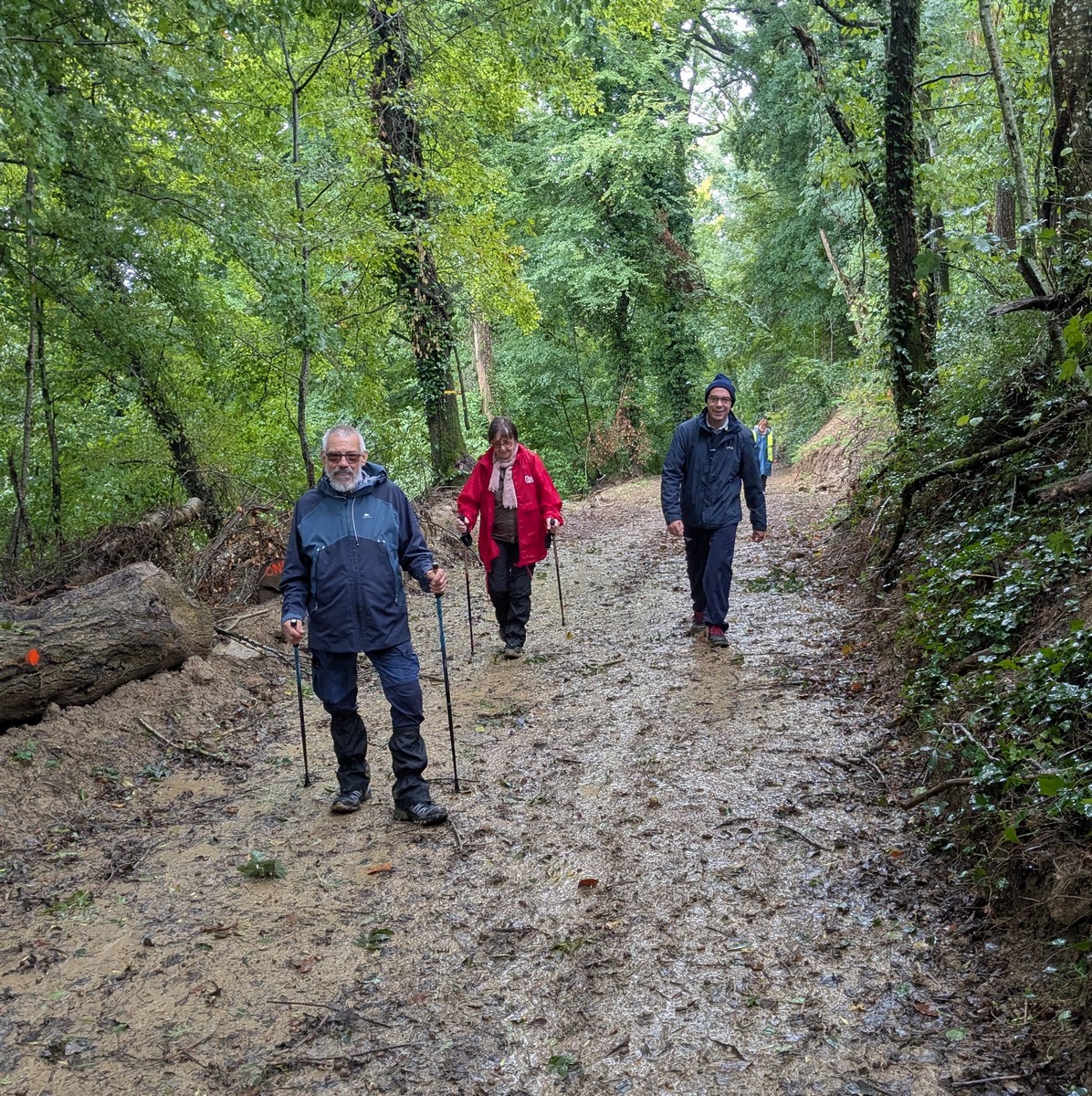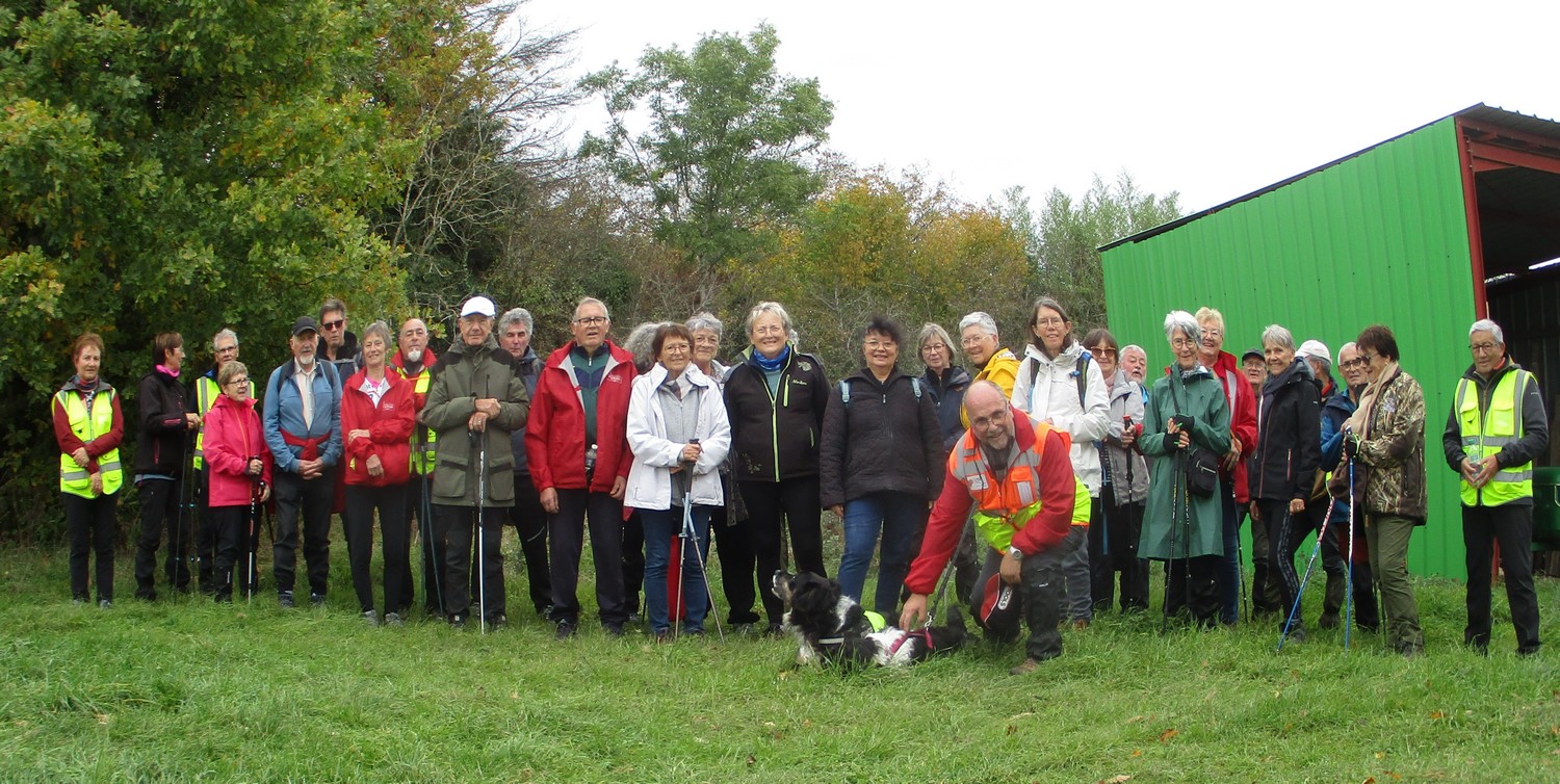 En ce vendredi de rentrée dans la saison 2025-2026 des marches santé, nous étions une petite vingtaine à vouloir arpenter les chemins à l’intérieur du bois de Marac. Tout au long du parcours, il nous a fallu alterner entre éclaircies et averses. On a profité d’un rayon de soleil pour prendre une photo de notre groupe.