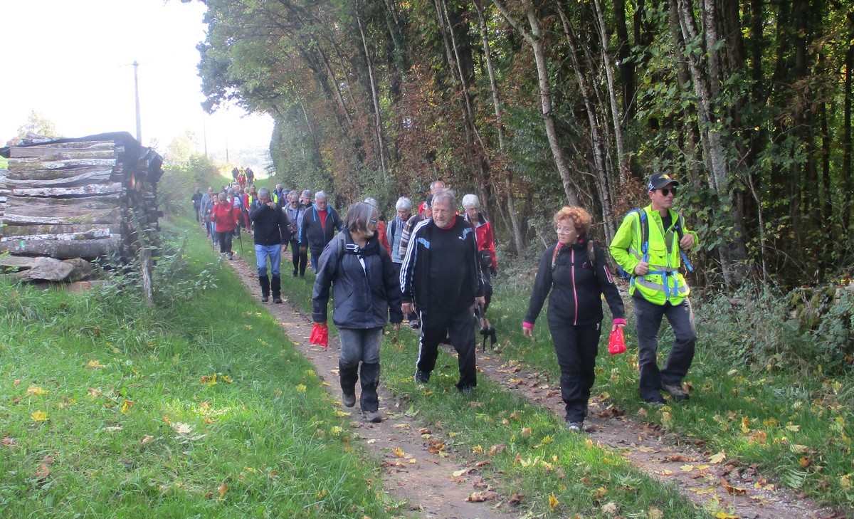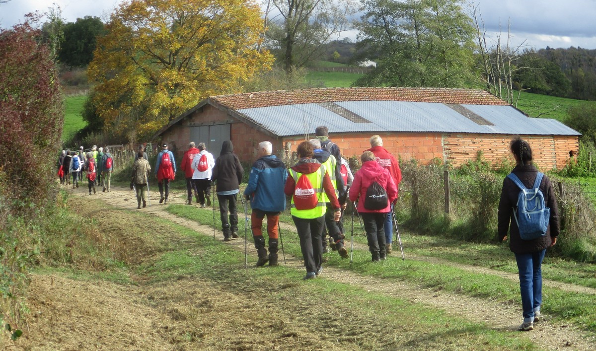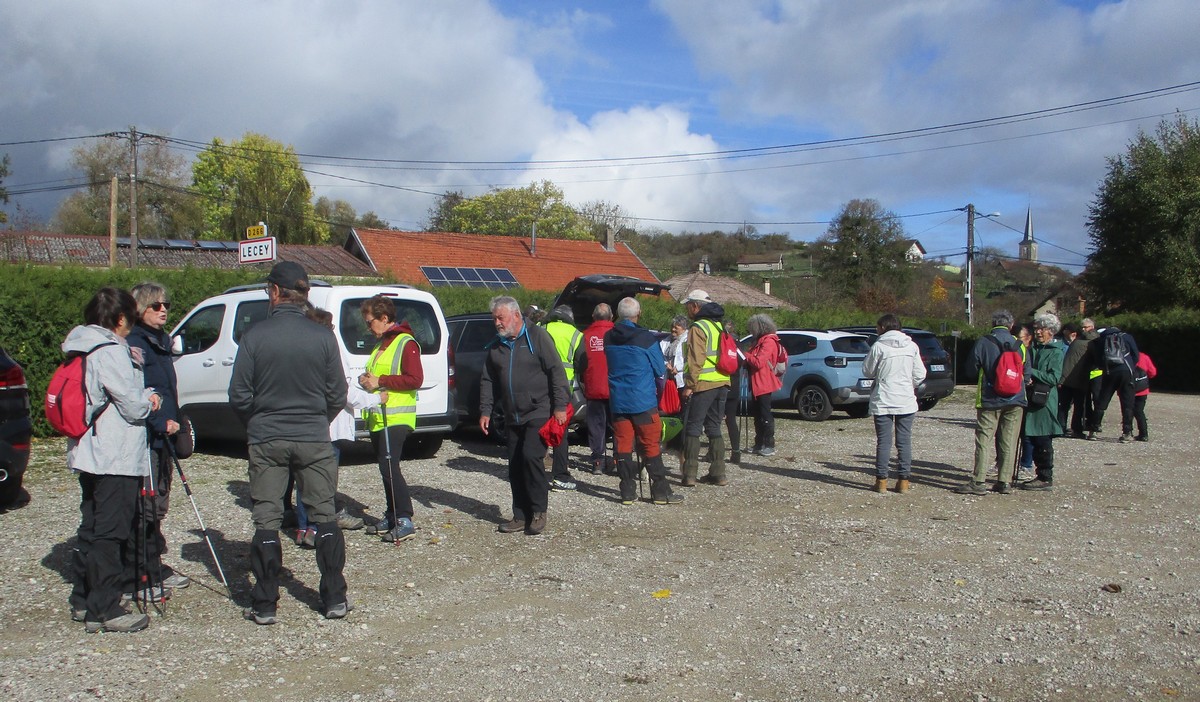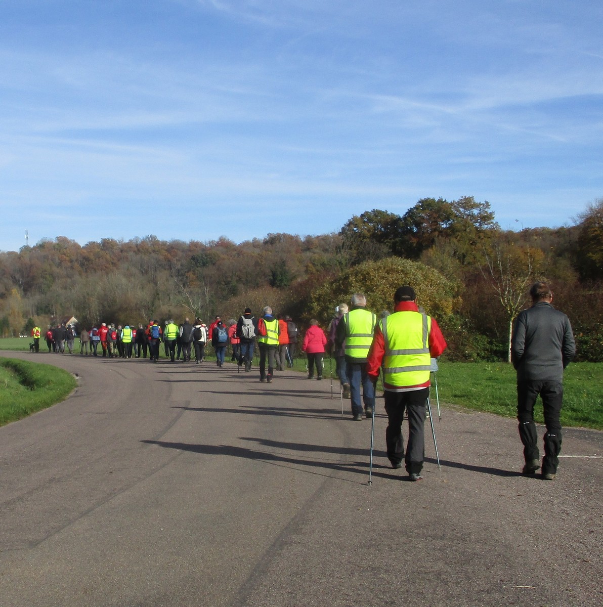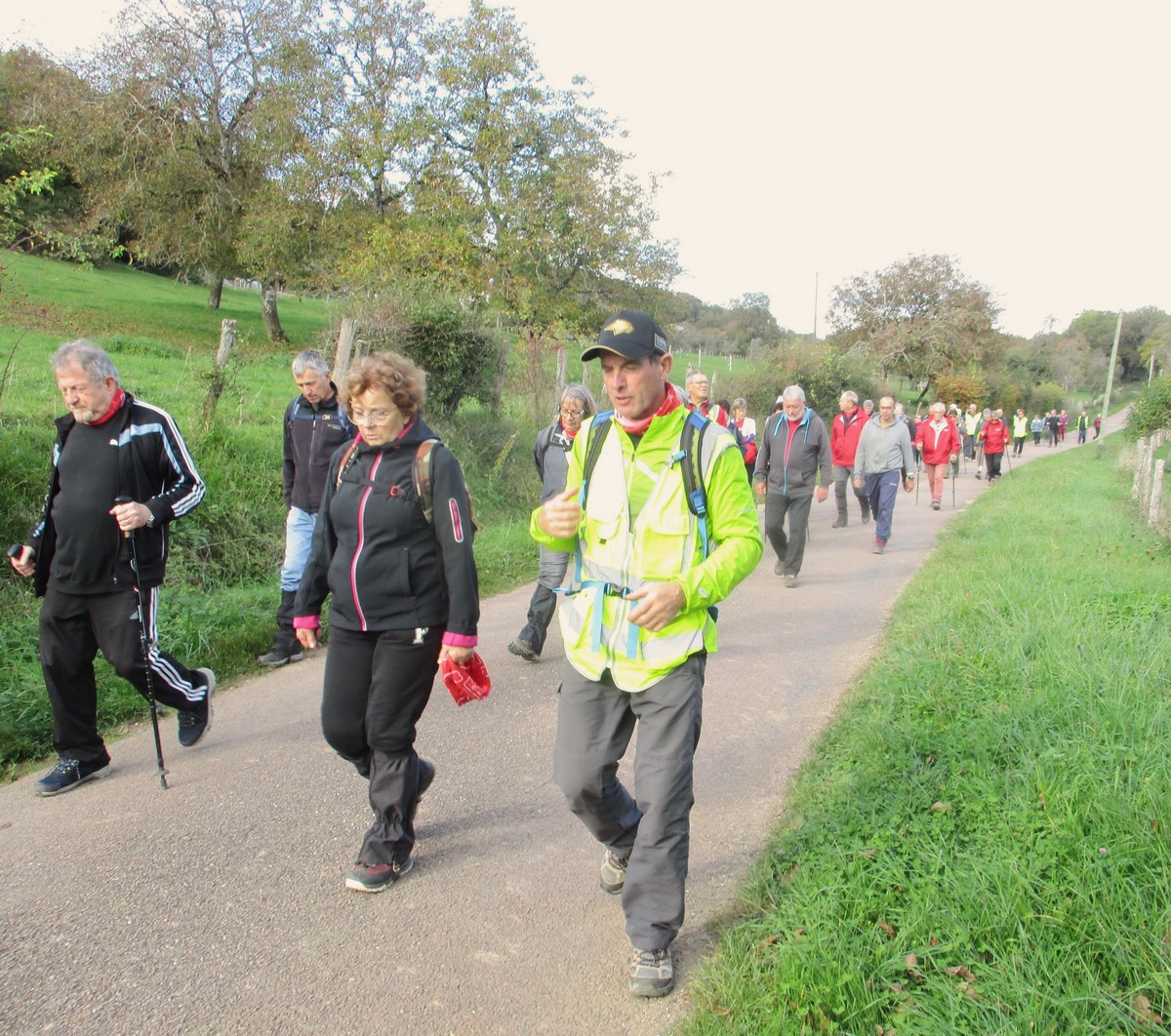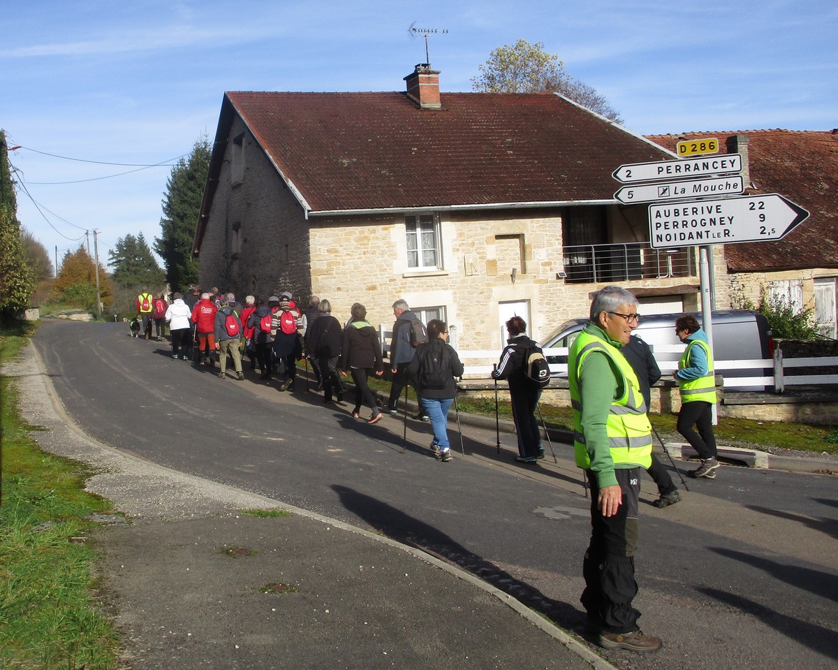 Après dissipation du brouillard matinal, nous voici au départ du château d’eau de PERRANCEY pour un circuit de 10kms. Nous sommes une bonne vingtaine de marcheurs bien motivés, pour débuter sur un chemin blanc bien large, afin d’attaquer une bonne descente menant à VIEUX-MOULINS ; devinez-quoi : il a bien fallu la remonter. Ça va, tout le monde est en forme pour ensuite redescendre puis remonter de nouveau à PERRANCEY, le tout accompagné de jolies couleurs d’automne.