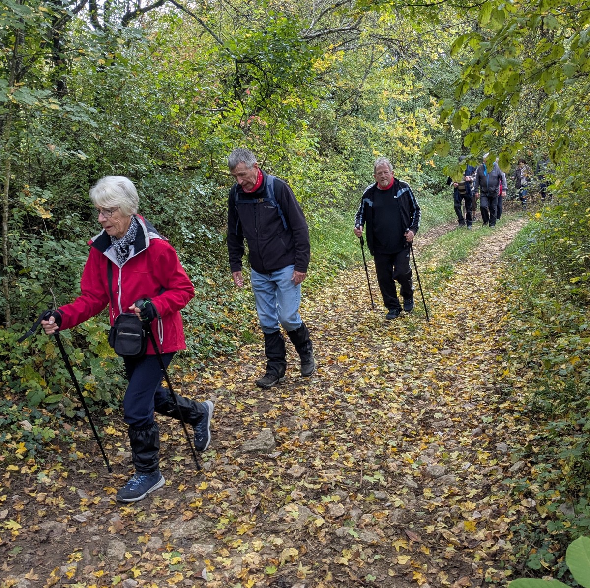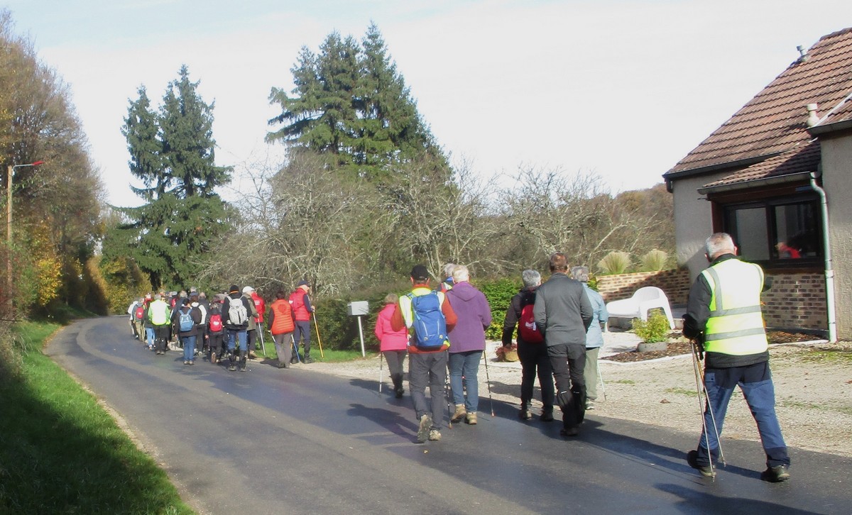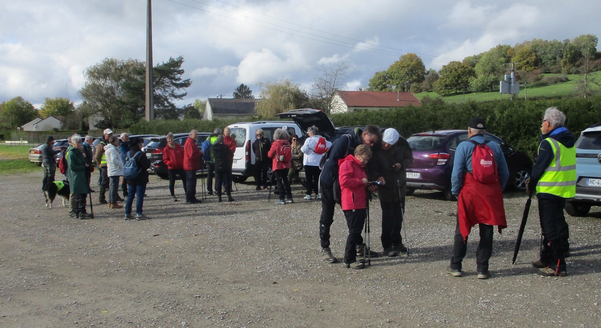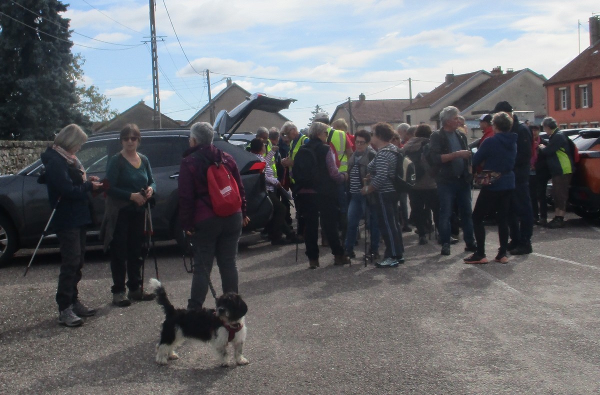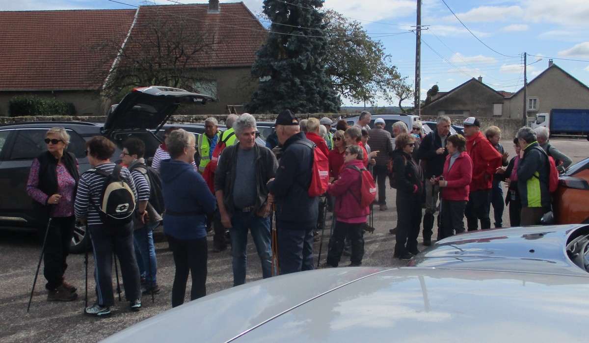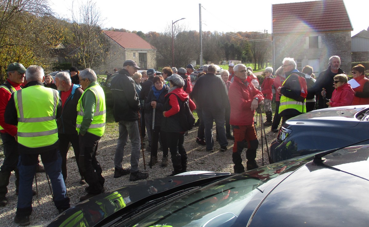Après dissipation du brouillard matinal, nous voici au départ du château d’eau de PERRANCEY pour un circuit de 10kms. Nous sommes une bonne vingtaine de marcheurs bien motivés, pour débuter sur un chemin blanc bien large, afin d’attaquer une bonne descente menant à VIEUX-MOULINS ; devinez-quoi : il a bien fallu la remonter. Ça va, tout le monde est en forme pour ensuite redescendre puis remonter de nouveau à PERRANCEY, le tout accompagné de jolies couleurs d’automne.