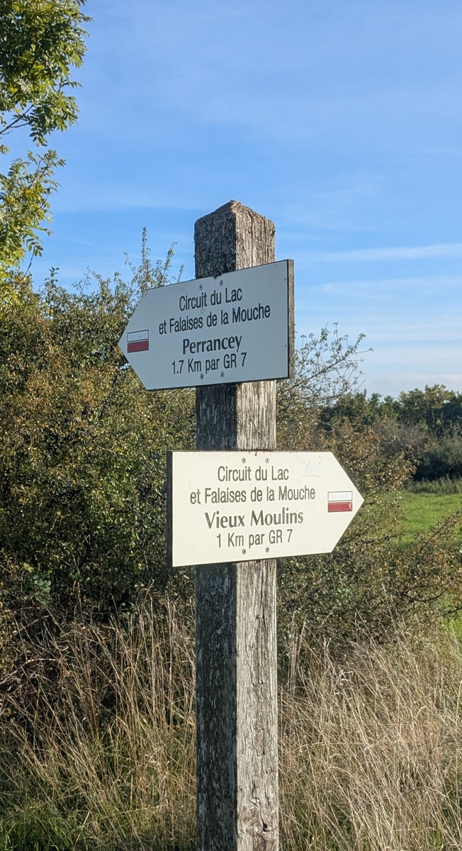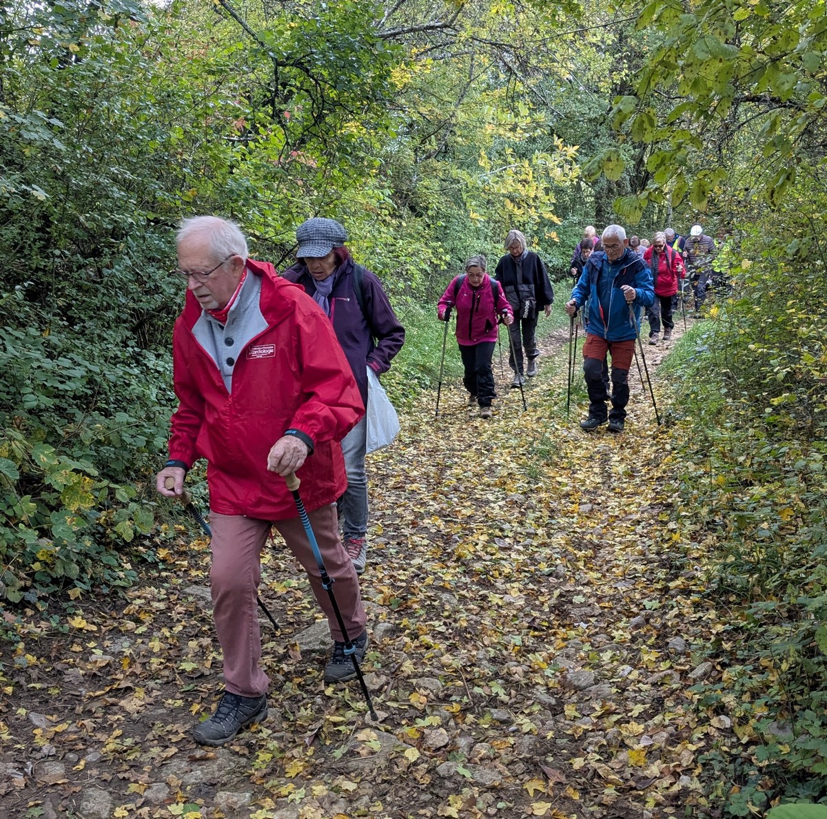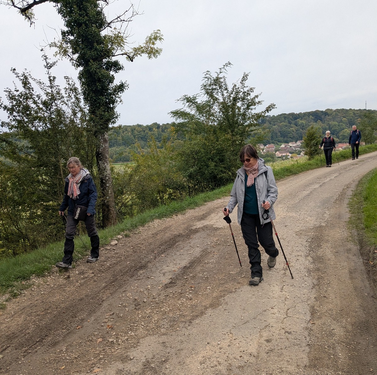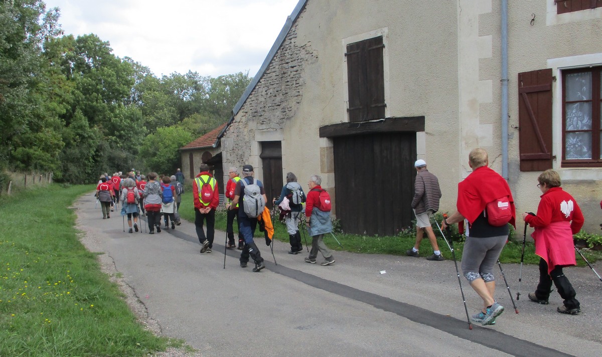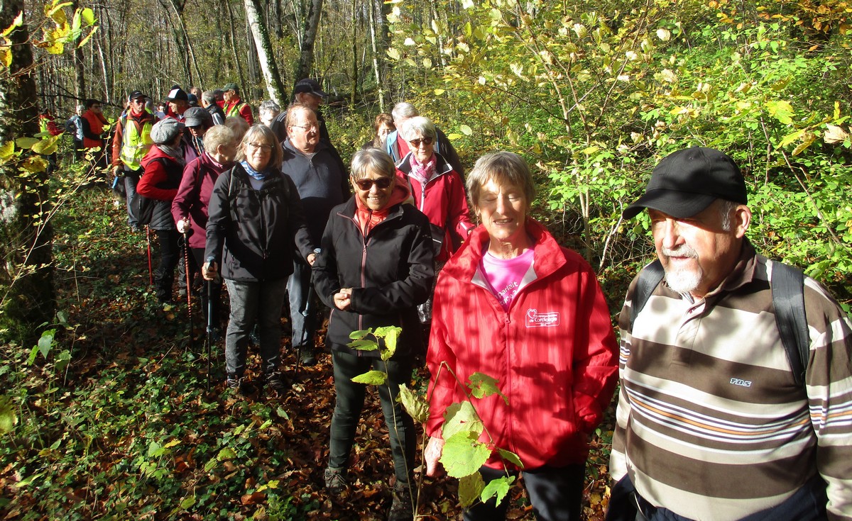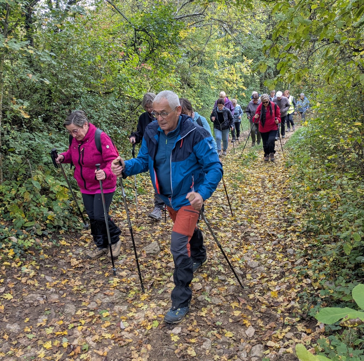 Après dissipation du brouillard matinal, nous voici au départ du château d’eau de PERRANCEY pour un circuit de 10kms. Nous sommes une bonne vingtaine de marcheurs bien motivés, pour débuter sur un chemin blanc bien large, afin d’attaquer une bonne descente menant à VIEUX-MOULINS ; devinez-quoi : il a bien fallu la remonter. Ça va, tout le monde est en forme pour ensuite redescendre puis remonter de nouveau à PERRANCEY, le tout accompagné de jolies couleurs d’automne.