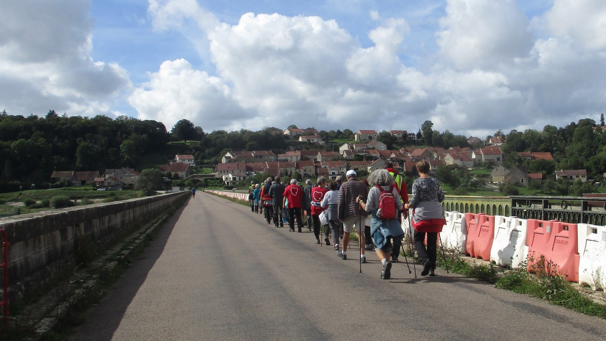 Nous étions un peu moins d’une vingtaine de marcheurs à l’assaut de 3 villages : Heuilley-Cotton, Noidant-Chatenoy et Cohons avec des dénivelés assez importants. Nous sommes partis du port d’Heuilley-Cotton, avons longé le canal, sommes passés au dessus des falaises avec un joli panorama, ainsi qu’au pied du Château de Cohons. Le temps était couvert mais sans pluie (et sans soleil !).