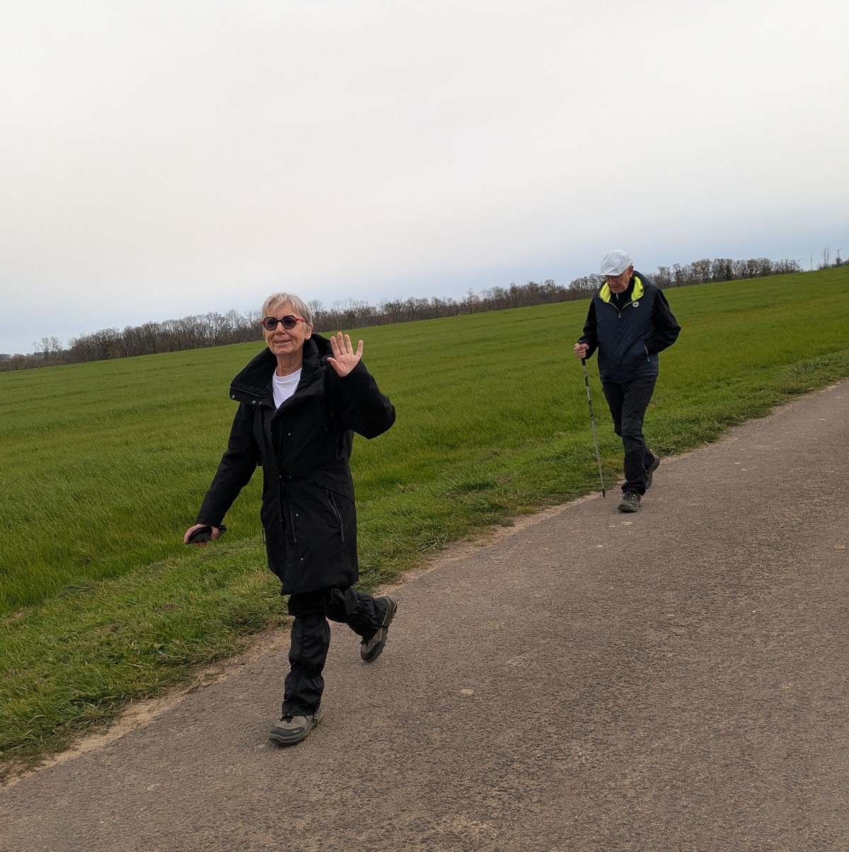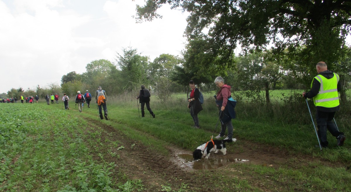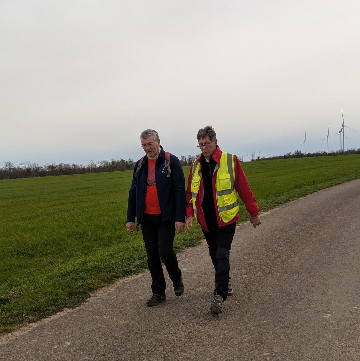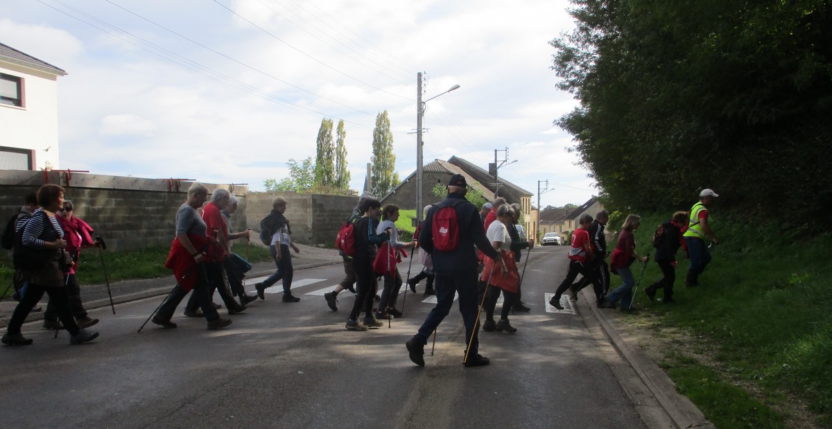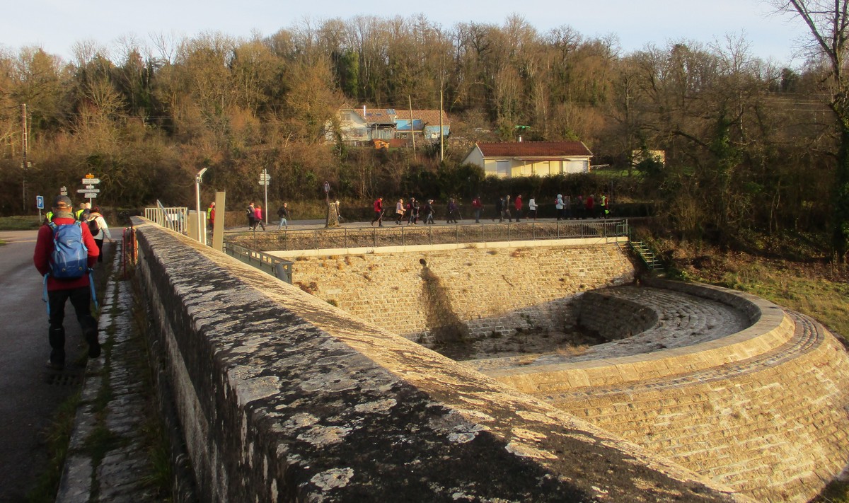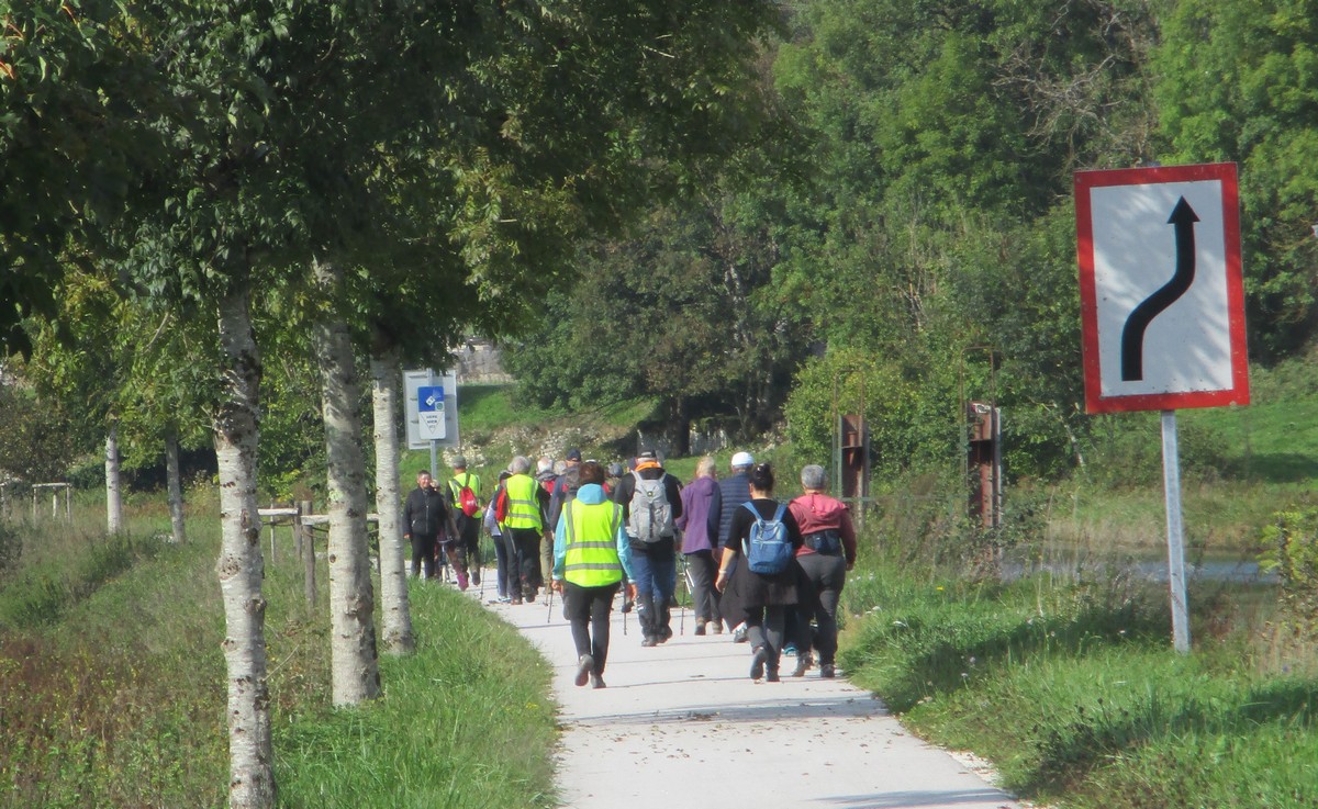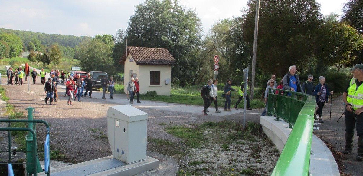 Il y a des semaines qui se suivent, mais qui ne se ressemblent pas ! En effet, ce mardi : beau temps contrastant avec celui de la semaine dernière à Choilley. Beaucoup ont fait le déplacement jusqu’au village de Vesaignes qui se trouve situé en périphérie de notre rayon d’action ; nous sommes une petite quarantaine. Tout d’abord une bonne côte (pas de bœuf) pour faire marcher le cardio. Nous voilà sur le plateau et on commence à enlever les vestes et polaires qui tiennent chaud. Quelques flaques d’eau subsistent encore des dernières pluies tombées, mais pas assez pour gouillasser nos chaussures. Nous descendons alors le coteau pour traverser Thivet où on a même vu des ours en bois, un chien sur un toit et une fresque dans un abri-bus. Ensuite, nous sortons du village pour rejoindre le canal où nous posons pour la photo traditionnelle. La partie restante du parcours est des plus reposantes puisque l’on suit le canal jusqu’à retrouver Vesaignes et rejoindre nos voitures devant la Mairie et L’Eglise.