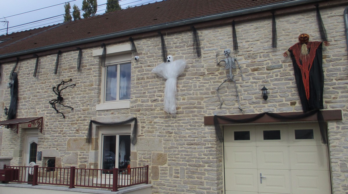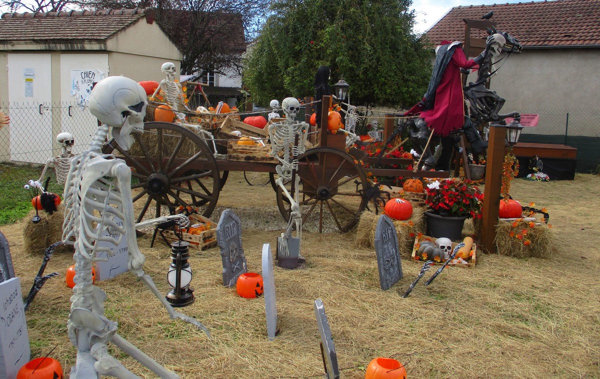 Pour un début octobre, il fait beau et même très beau (surtout par rapport à samedi). Nous sommes une bonne quarantaine à s’être déplacés au pays des sorciers pour notre marche ou plutôt marché aux fruits d’automne. Tout d’abord, nous sommes passés à côté d’une maison et d’une cour machiavéliquement décorées aux couleurs d’Halloween. Puis il nous a fallu monter la rue des Adieux (qui mène évidemment au cimetière), mais aussi au gymnase et le collège Vincenot. De là, nous empruntons un chemin situé en périphérie du village qui nous ramène sur la route de Langres. Mais avant de la traverser, nous en profitons pour faire la photo de groupe sous le soleil. De l’autre côté, nous coupons au court pour rejoindre le chemin du Cognelot qui nous amène au pied du Fort du même nom. Là, on fait la pause, puis nous poursuivons notre périple tout en essayant de ne pas tomber, sauf pour M que nous avons relevé et soigné avant de continuer. Quelques arbres tombés entravent notre parcours. Nous redescendons enfin pour arriver au niveau des vignes et vergers où la maraude s’organise. Des pommes, des poires et des scoubidoubidou ouah ! Et quelques grappes de raisin rouge et blanc très fruitées. Plus loin quelques noix provenant de noyers dits américains jonchant le sol. On pouvait également admirer quelques belles citrouilles dans un jardin. Et nous voici enfin arrivés à l’entrée de la cité cheminote où nous apercevons un houx magnifique planté chez un particulier. Un passage au pied de l’Eglise St Gengoulf et nous voici revenus au pied de nos voitures.