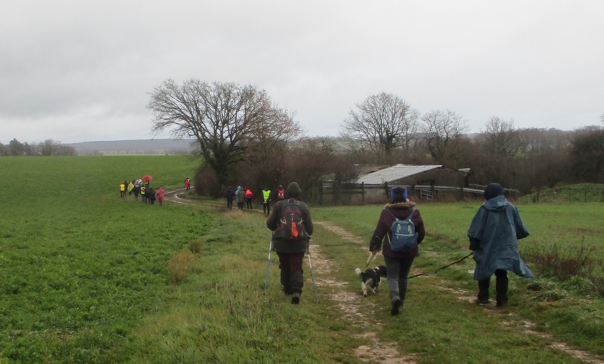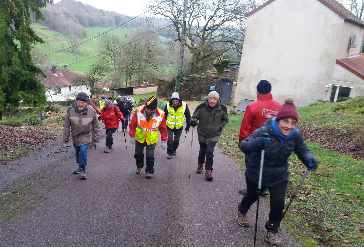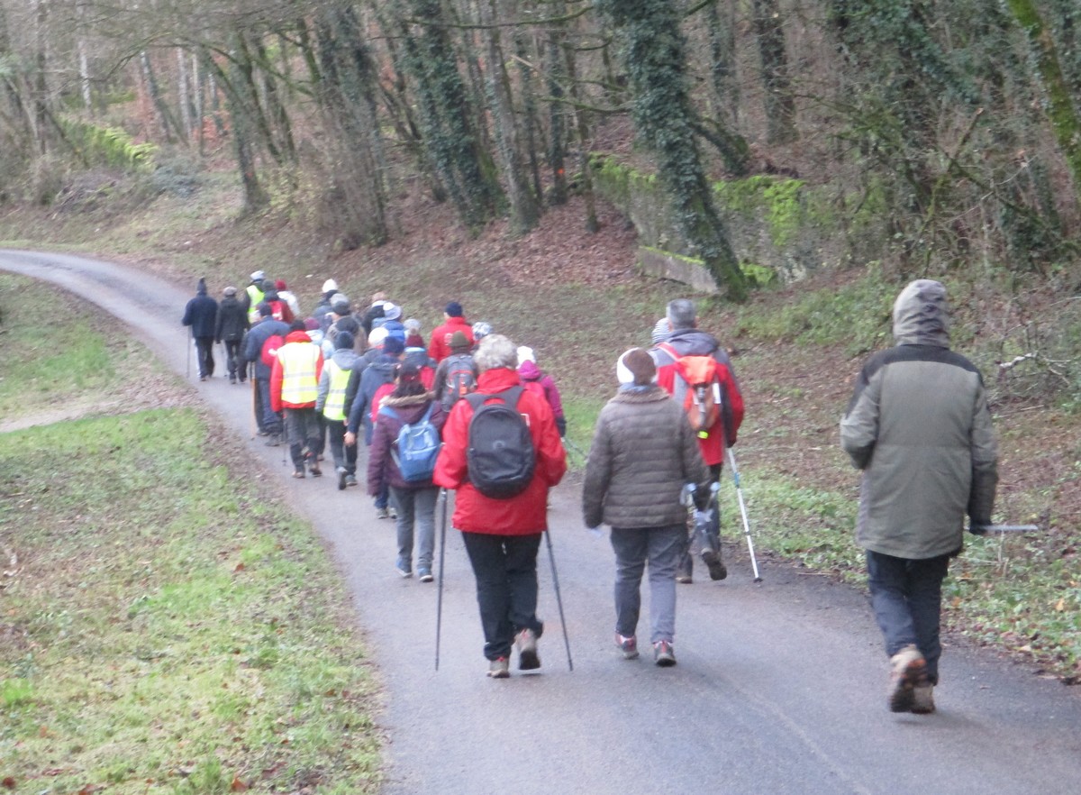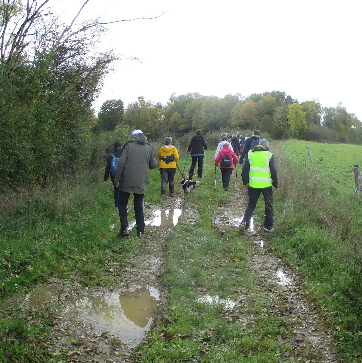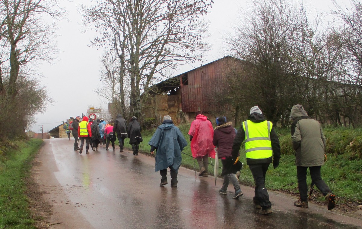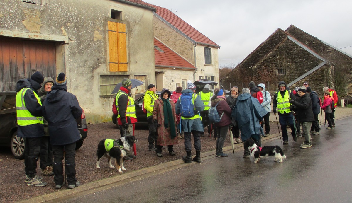 Au regard de la météo, nous sommes tout de même une bonne vingtaine de marcheurs motivés pour un parcours de 9,3kms sur la commune de Beauchemin. Départ depuis la salle des fêtes sur route goudronnée, puis nous empruntons des pas si beaux chemins que ça (bien gras) ! Ensuite nous entamons la traversée du bois de Valbonne pour rejoindre le centre équestre de Melville. On y a même vu la « Cabane à Marcel » qui était initialement à Sts-Geosmes à côté de Peugeot ! Nous repartons sur la route afin de rejoindre le petit village de St Martin-les-Langres, altitude de 397m (le cardio fonctionne bien). Puis retour au village. Merci à Eliane pour ses photos.