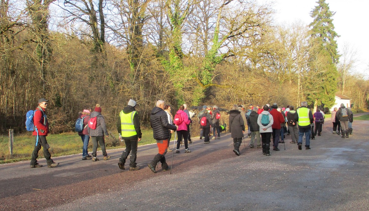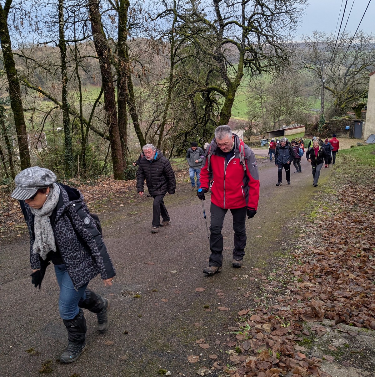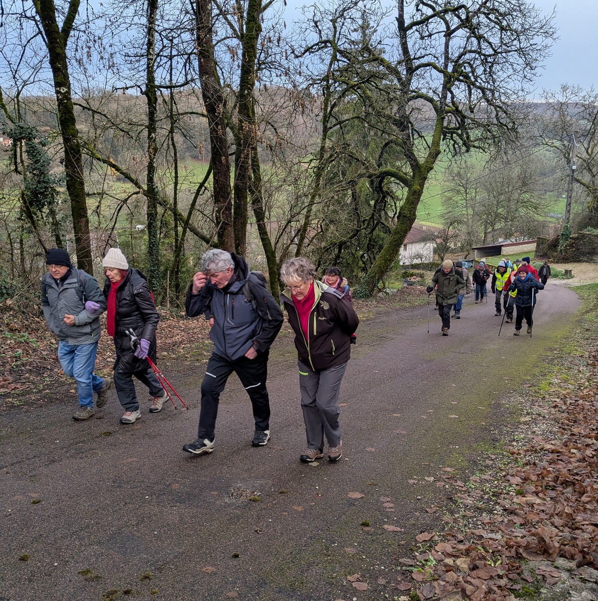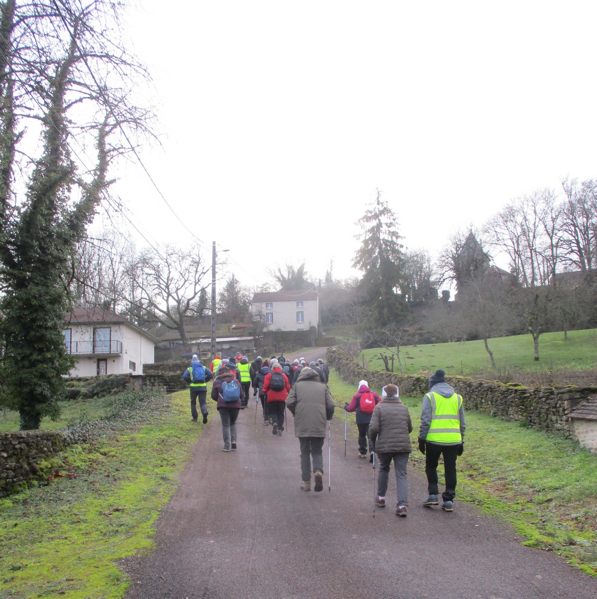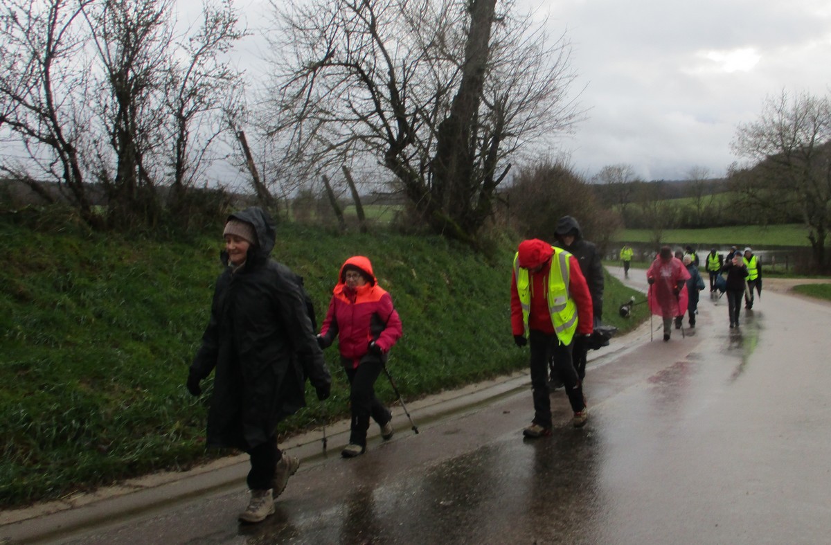 Au regard de la météo, nous sommes tout de même une bonne vingtaine de marcheurs motivés pour un parcours de 9,3kms sur la commune de Beauchemin. Départ depuis la salle des fêtes sur route goudronnée, puis nous empruntons des pas si beaux chemins que ça (bien gras) ! Ensuite nous entamons la traversée du bois de Valbonne pour rejoindre le centre équestre de Melville. On y a même vu la « Cabane à Marcel » qui était initialement à Sts-Geosmes à côté de Peugeot ! Nous repartons sur la route afin de rejoindre le petit village de St Martin-les-Langres, altitude de 397m (le cardio fonctionne bien). Puis retour au village. Merci à Eliane pour ses photos.