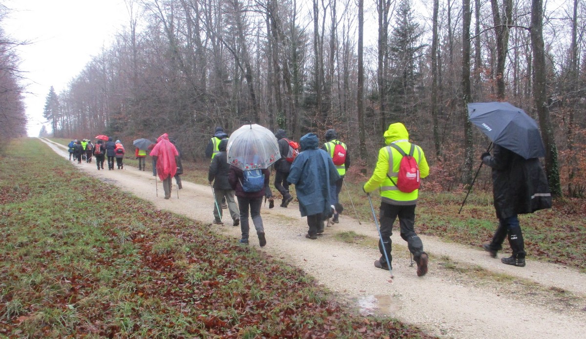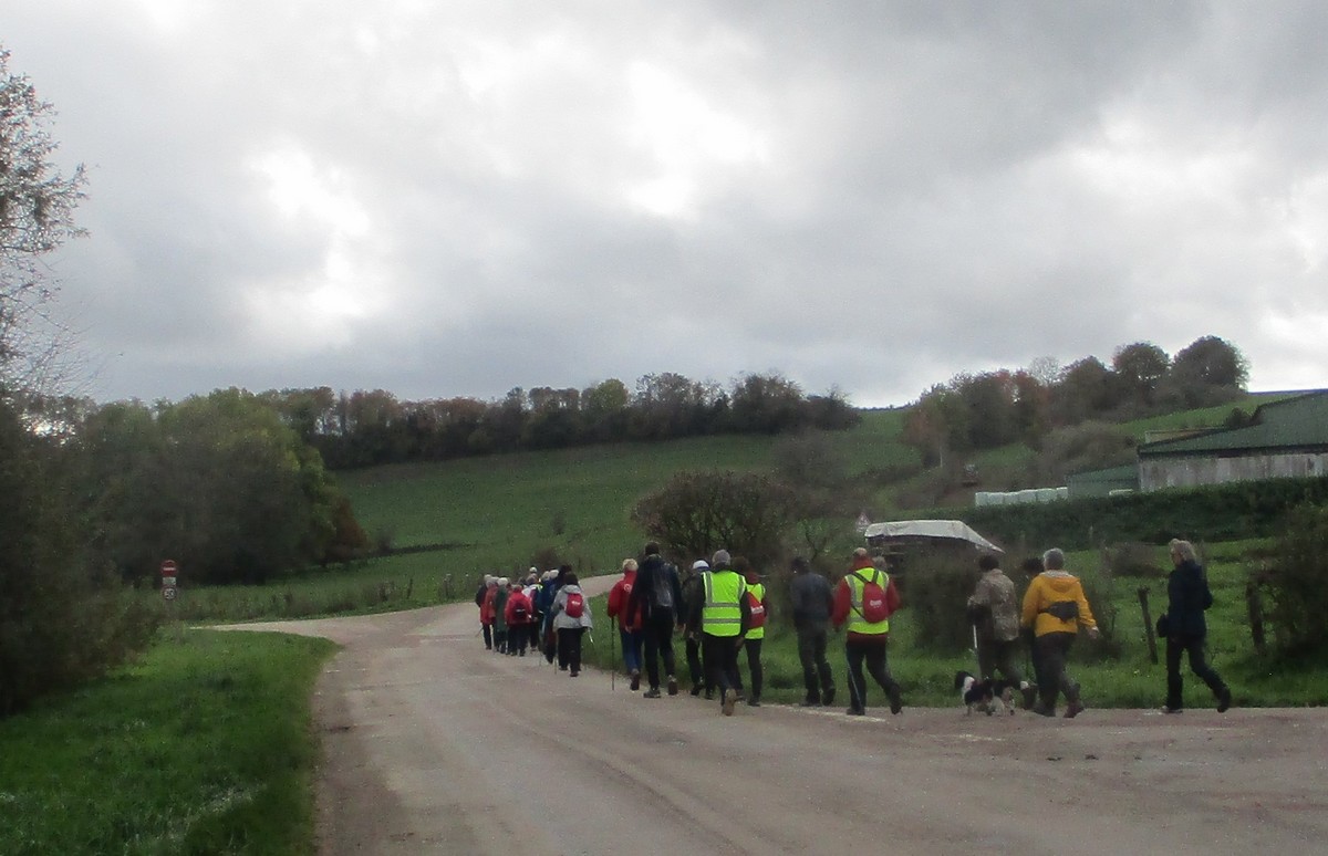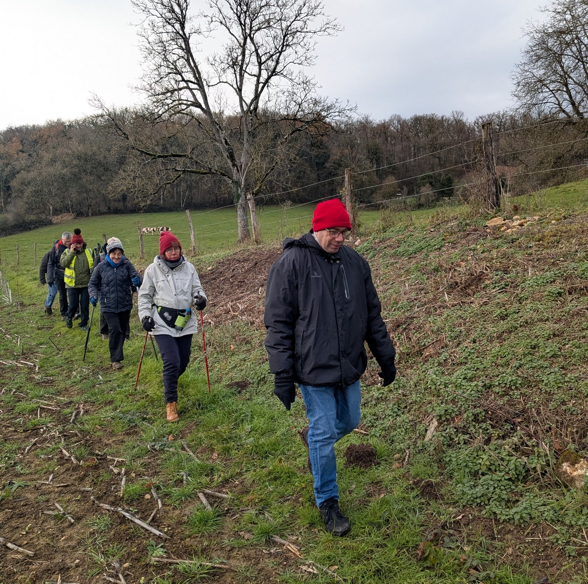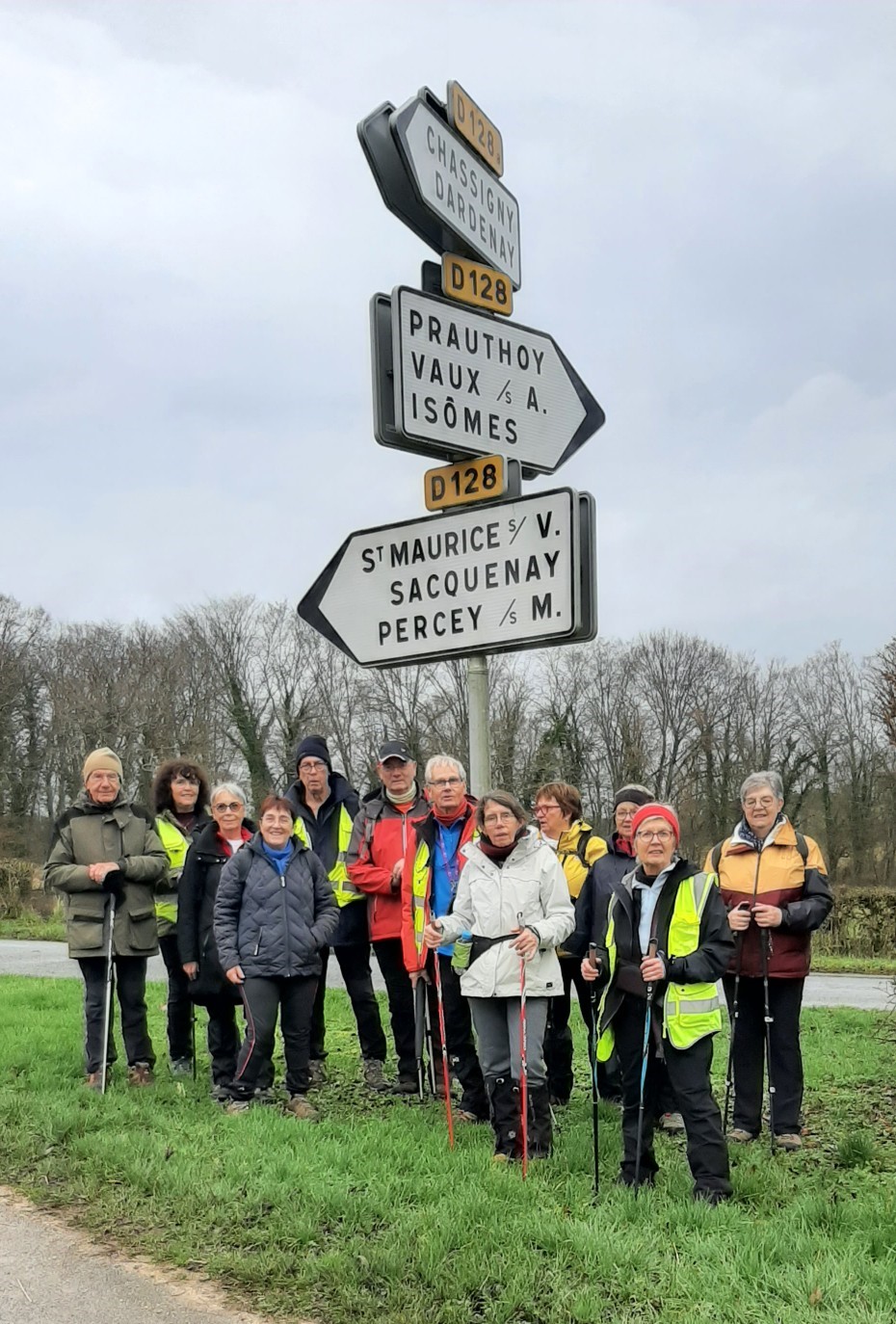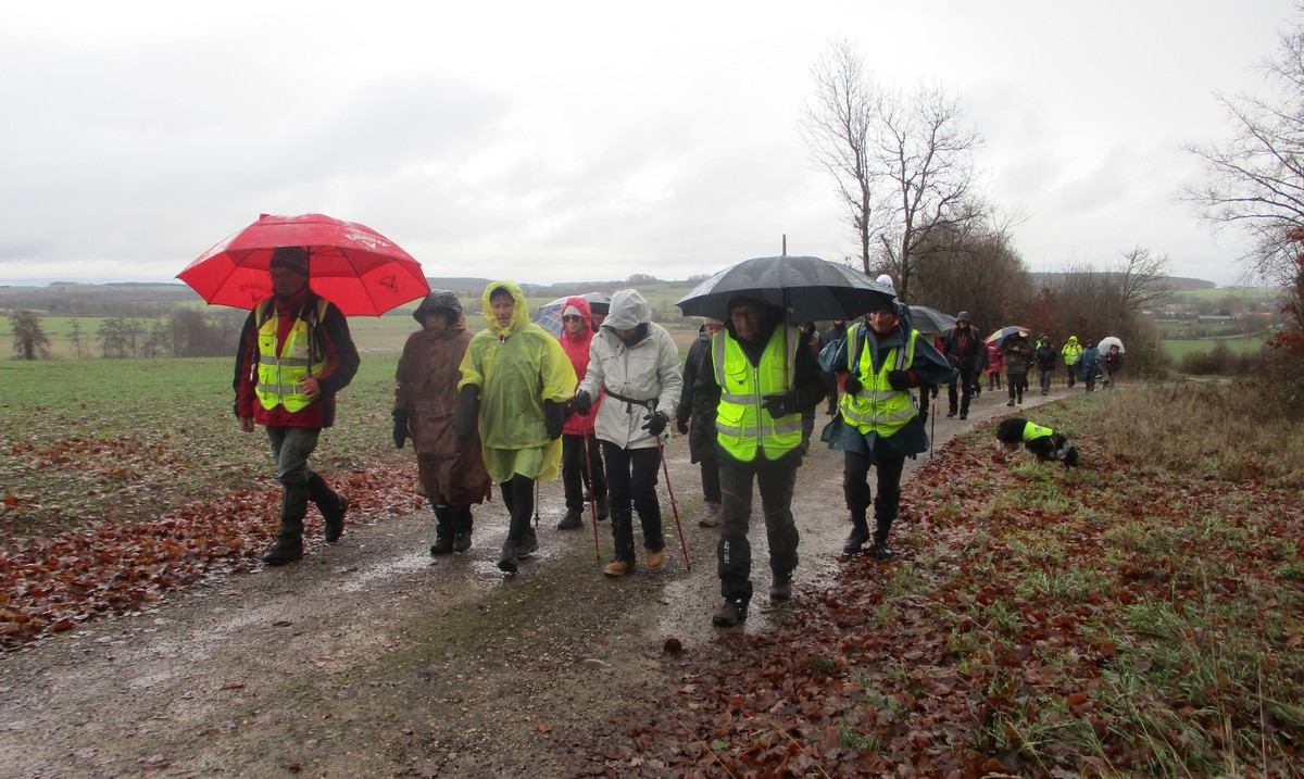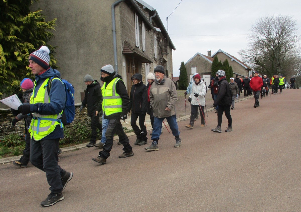 Au regard de la météo, nous sommes tout de même une bonne vingtaine de marcheurs motivés pour un parcours de 9,3kms sur la commune de Beauchemin. Départ depuis la salle des fêtes sur route goudronnée, puis nous empruntons des pas si beaux chemins que ça (bien gras) ! Ensuite nous entamons la traversée du bois de Valbonne pour rejoindre le centre équestre de Melville. On y a même vu la « Cabane à Marcel » qui était initialement à Sts-Geosmes à côté de Peugeot ! Nous repartons sur la route afin de rejoindre le petit village de St Martin-les-Langres, altitude de 397m (le cardio fonctionne bien). Puis retour au village. Merci à Eliane pour ses photos.
