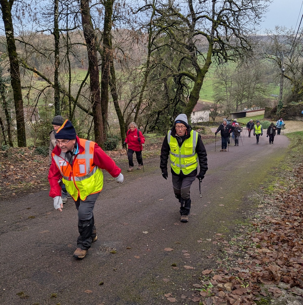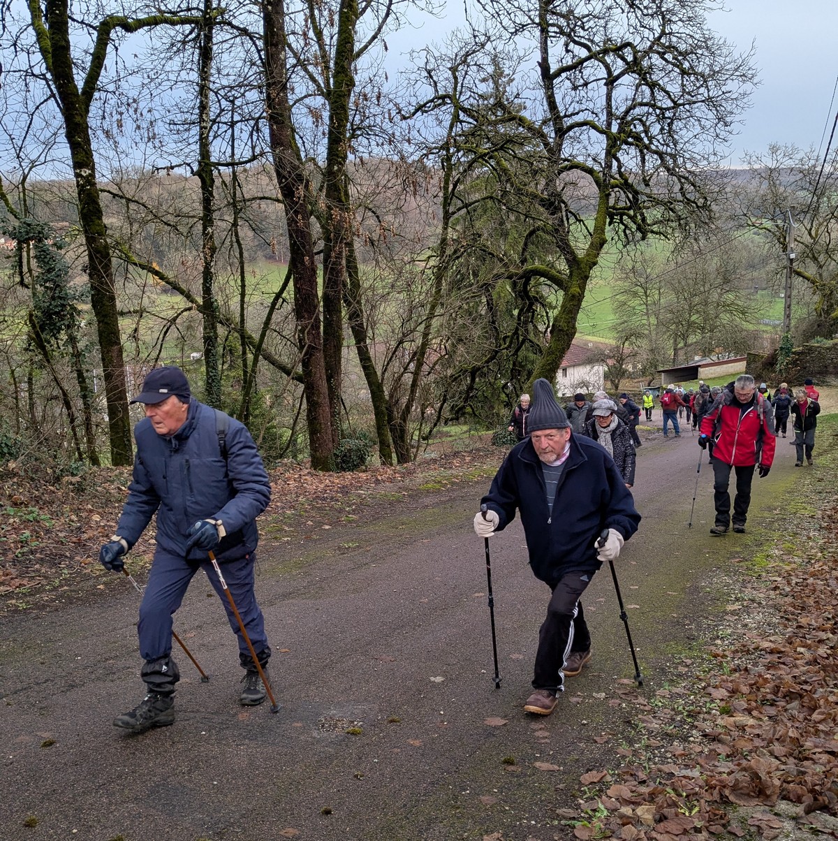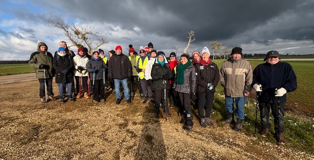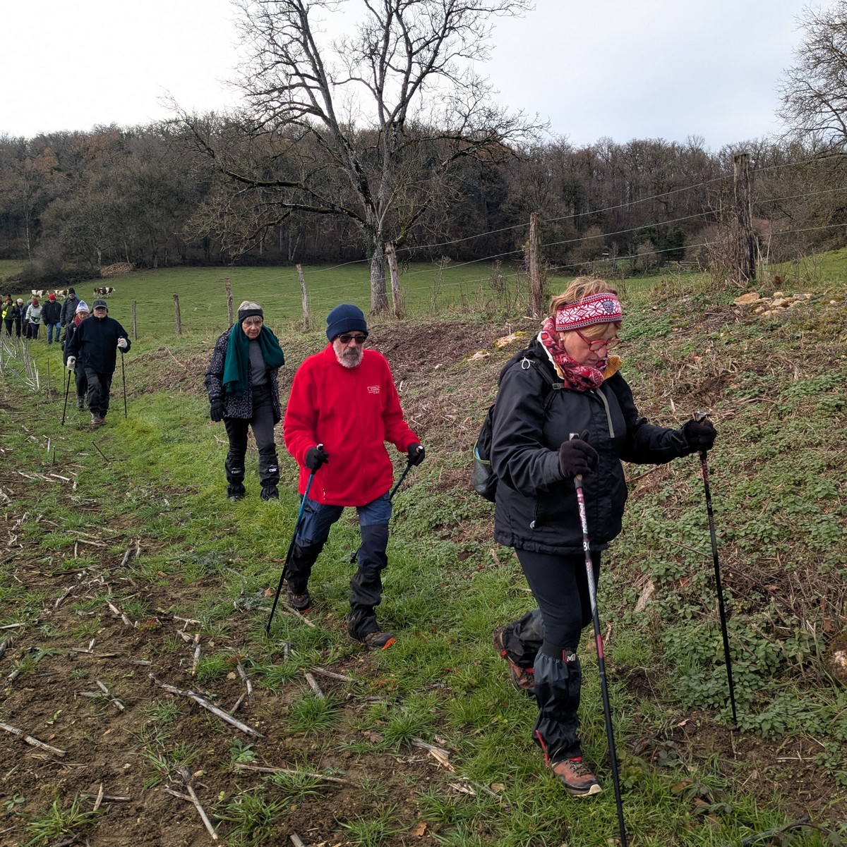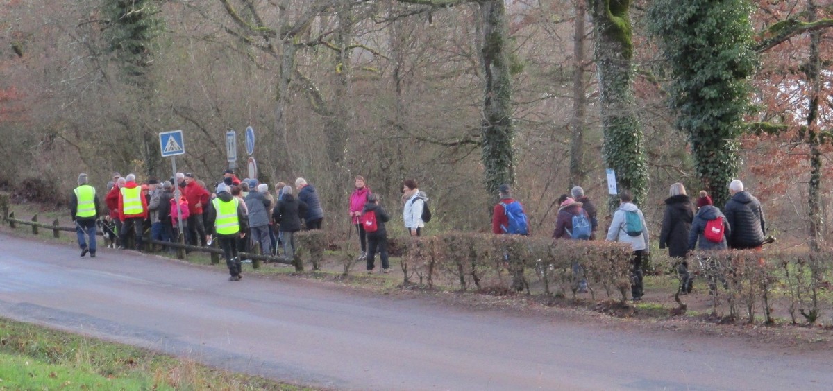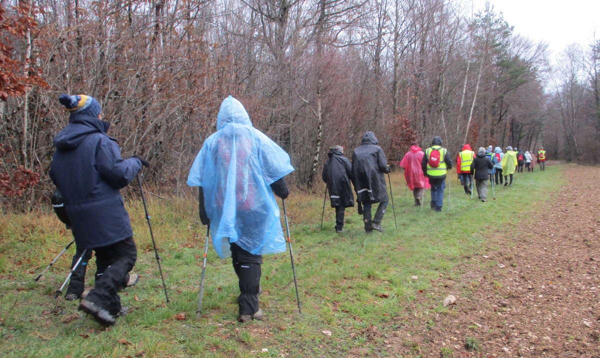 Au regard de la météo, nous sommes tout de même une bonne vingtaine de marcheurs motivés pour un parcours de 9,3kms sur la commune de Beauchemin. Départ depuis la salle des fêtes sur route goudronnée, puis nous empruntons des pas si beaux chemins que ça (bien gras) ! Ensuite nous entamons la traversée du bois de Valbonne pour rejoindre le centre équestre de Melville. On y a même vu la « Cabane à Marcel » qui était initialement à Sts-Geosmes à côté de Peugeot ! Nous repartons sur la route afin de rejoindre le petit village de St Martin-les-Langres, altitude de 397m (le cardio fonctionne bien). Puis retour au village. Merci à Eliane pour ses photos.