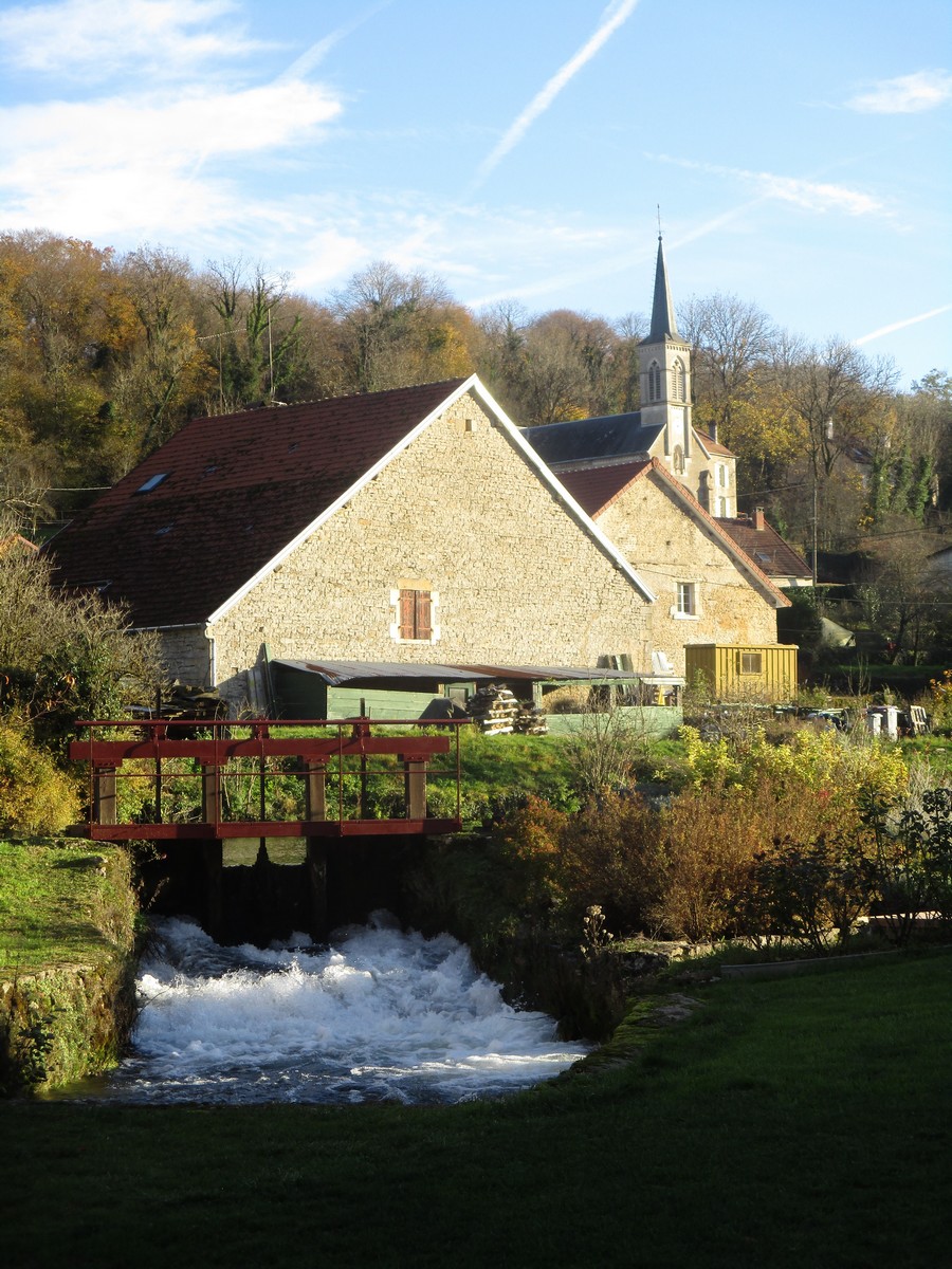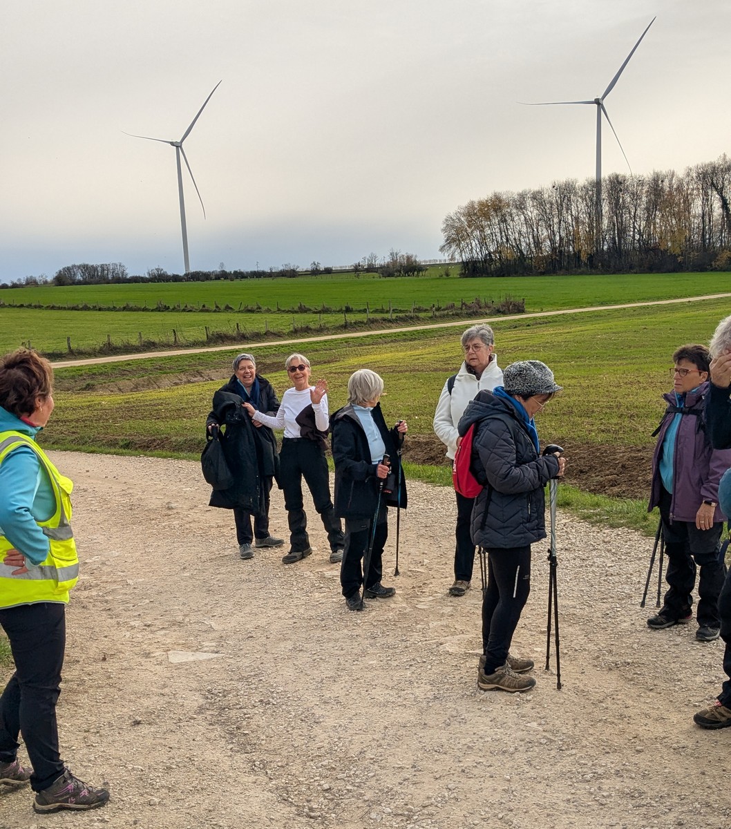 Nous sommes une petite trentaine au départ de Fayl-Billot, capitale de la vannerie, pour une marche de 11 kms. Nous empruntons des chemins blancs en passant à proximité de gros ventilateurs, à l’arrêt malgré le vent fort (toujours en attente d’une véritable autorisation…ou non !). En fait, nous pouvons appeler cette marche le zoo de Charmoy (vu le nombre d’animaux rencontrés tout au long de notre parcours). Ensuite nous prenons la direction de la cascade de la chèvre issue du ruisseau du Crêt ; ses eaux via la Mance ou l’Amance, la Saône puis le Rhône se jettent dans la Méditerranée. Une petite pause s’impose, une photo de groupe et retour à nos voitures.