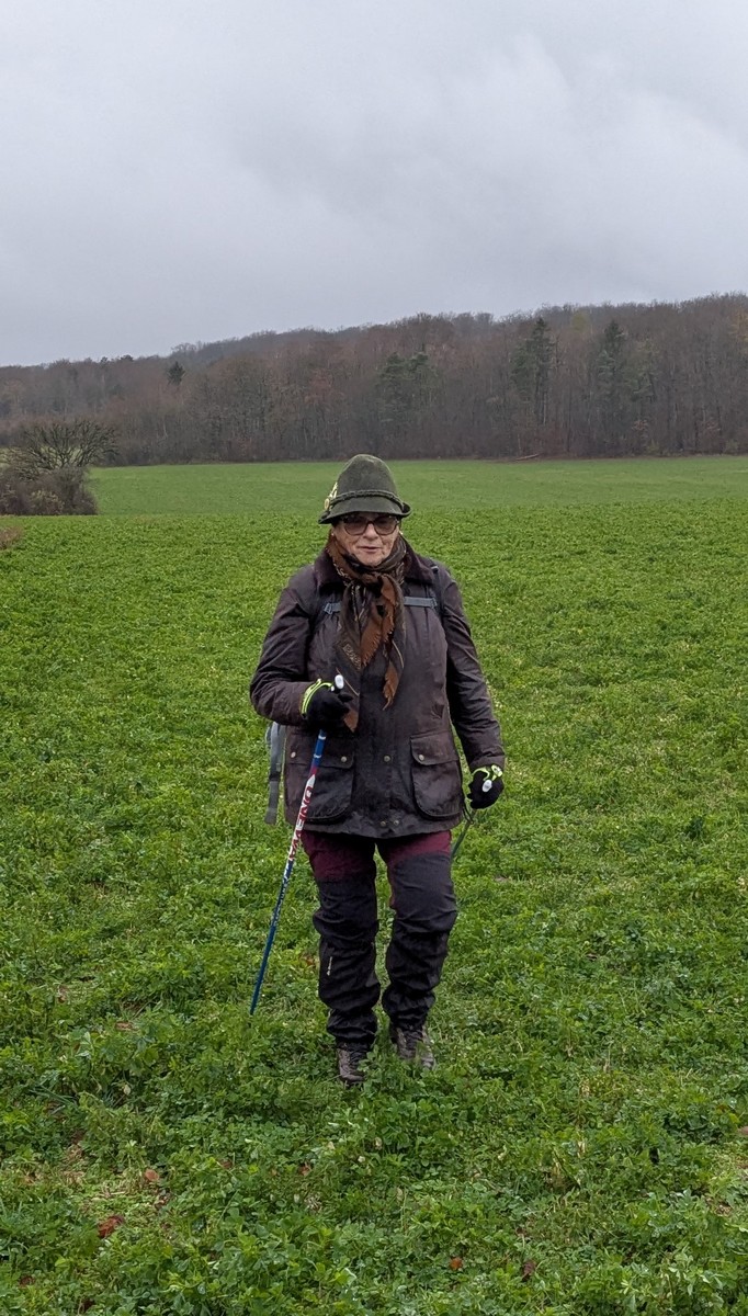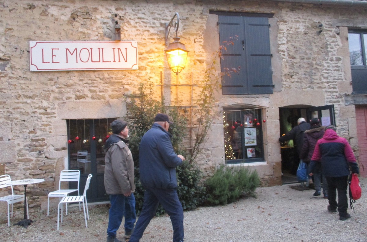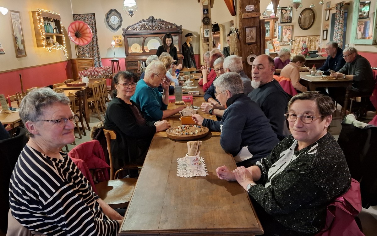 Nous voici déjà en décembre, temps couvert mais sans pluie à l’horizon et venteux en plaine. Nous sommes une bonne quarantaine à se retrouver au pied du château d’eau de Brennes pour une marche convoitée par les gourmands que nous sommes ! Tout d’abord, petite promenade dans la plaine brennoise au pied des ventilateurs. Nous nous détournons du tracé initial au niveau du « Bois de la corne d’Aix », pourtant un nouveau chemin a été recrée pour retrouver l’emprise de l’ancienne ligne de chemin de fer menant de Langres à Poinson-Beneuvre. A mi-parcours, nous empruntons un chemin légèrement gouillasseux, ce sera le seul ! Arrêt obligatoire pour la pause grignotage suivie de la pose photo. Nous rejoignons tranquillement le village où nous apercevons au passage la forêt de bambous géants. Mais il nous a fallu effectuer une dernière grimpette des plus coriaces pour mériter la récompense que la majorité d’entre nous attendait : le goûter chez Karen ! Laquelle nous recevait en compagnie d’une aide, toujours avec le sourire, afin de nous servir gaufres, vin chaud, chocolat chaud, thé, etc… Tout le monde a bien apprécié toutes ces bonnes choses.