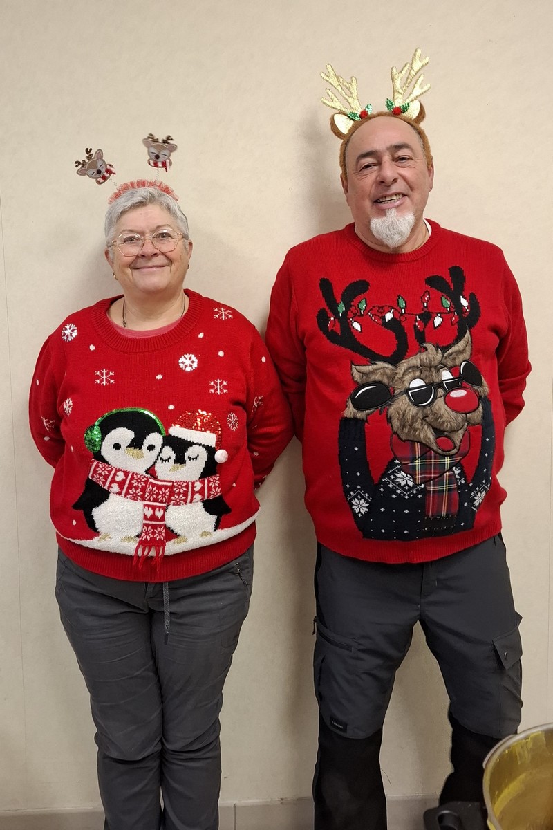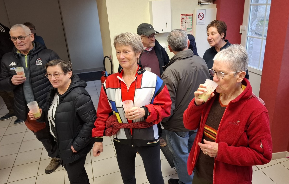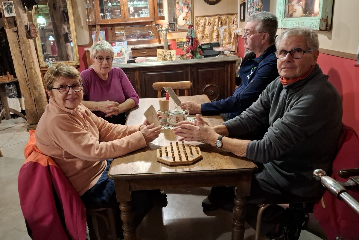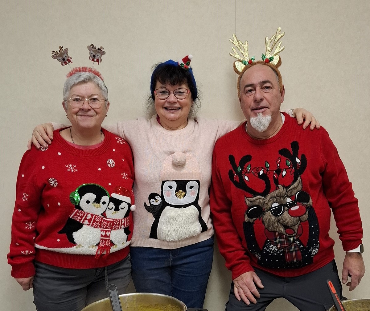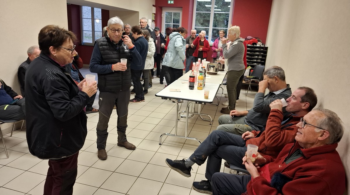 Nous retrouvons Corinne et Rémi superbement habillés devant leurs marmites de potage qu’ils nous ont concoctées avec amour. Asperges des bois, potiron et légumes variés sont au menu des saveurs que chacun a pu goûter sans modération, accompagnées de quelques douceurs et de gaufres sèches apportées par Nelly pour l’occasion. Dédé en profite pour nous conter quelques histoires… Il ne nous reste plus alors qu’à se souhaiter de bonnes fêtes de fin d’année, avant de regagner nos pénates pour des vacances bien méritées, sans oublier de remercier nos hôtes et leur aide Catherine pour cette « soup’ party » ainsi que Nelly pour l’accompagnement. On se retrouvera donc début janvier 2026 pour de nouvelles aventures.