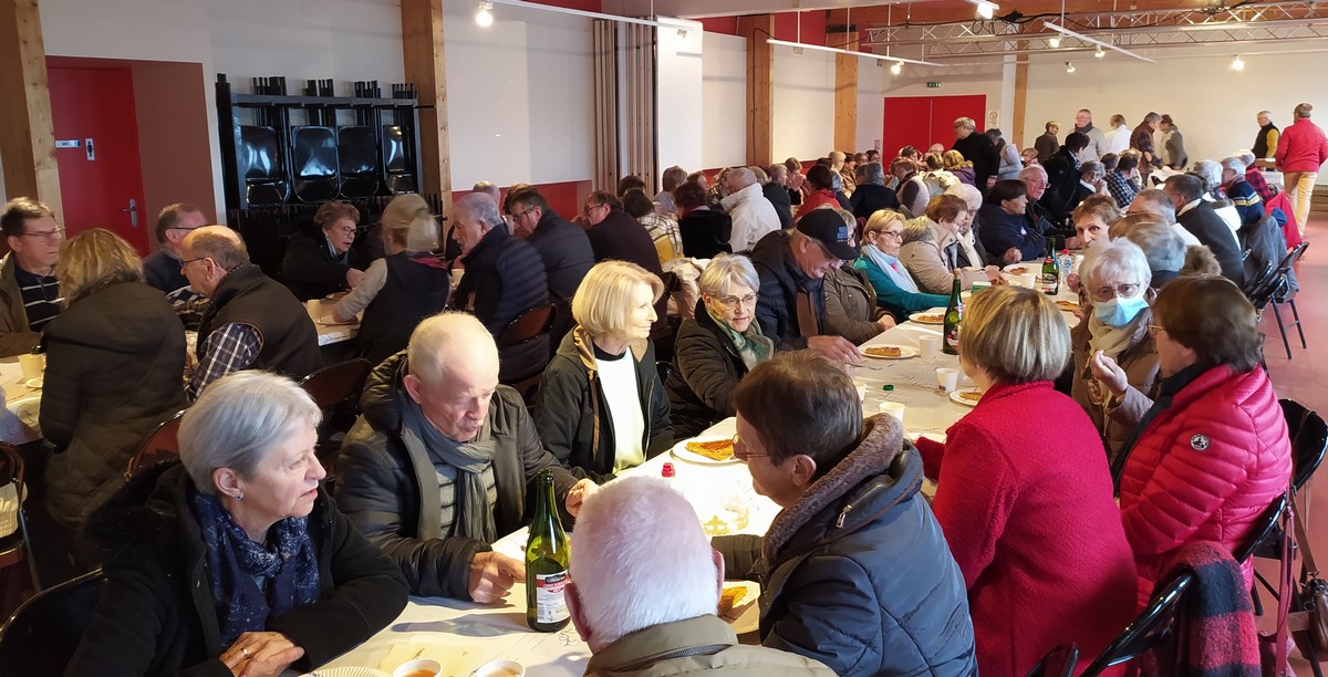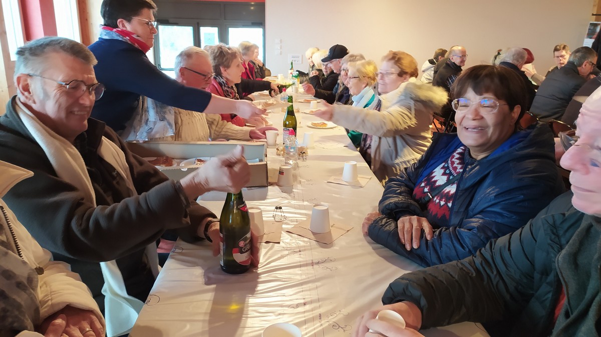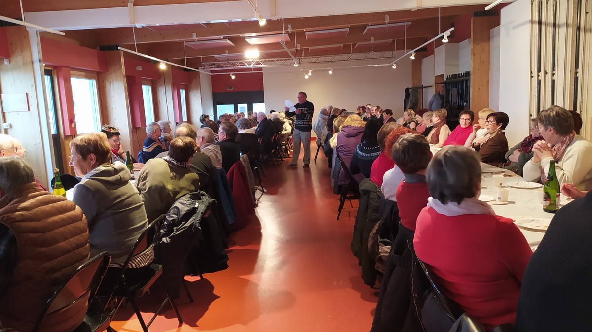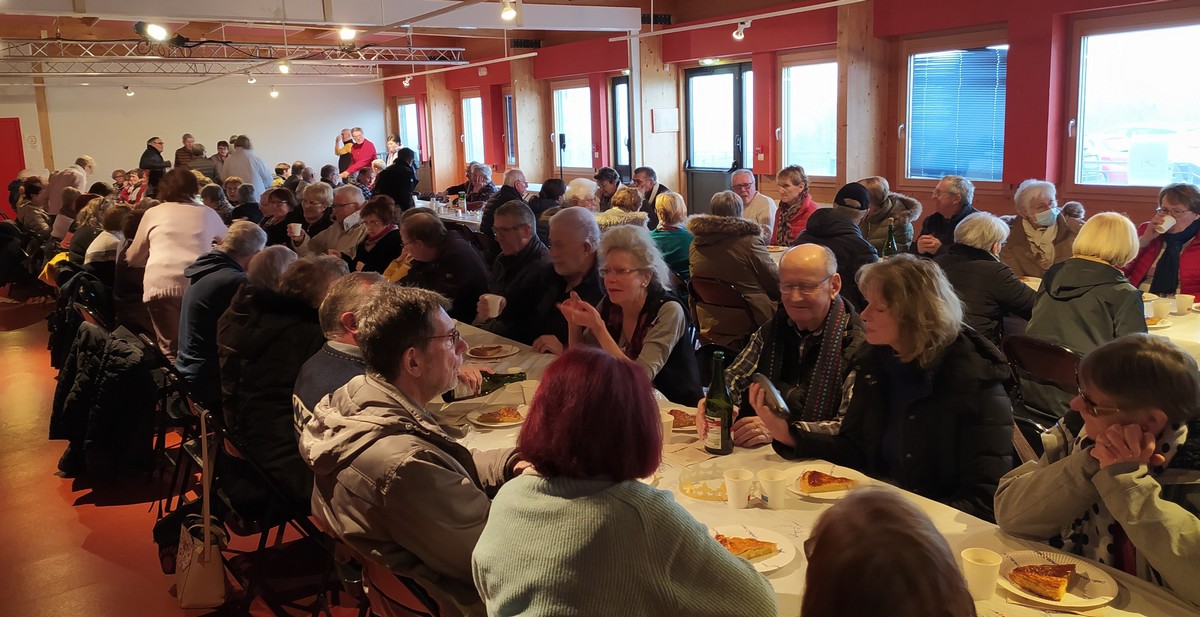 Journée repos pour tous les adhérents à notre club. Nous étions une centaine réunis à la salle Jean Favre au 1er étage, seuls manquaient quelques degrés en plus au thermomètre ! Mais une part de galette d’un artisan boulanger local et un verre de cidre nous attendaient. Et les fèves sortirent et les couronnes ornèrent quelques têtes. Mais seules les dames étaient à l’honneur ; donc on peut dire que nous avons dégusté la Galette des Reines ! Un petit mot du responsable du Parcours du Cœur qui nous a rappelé l’importance de cette manifestation, puis deux ou trois petites histoires de notre conteur local Dédé clôturèrent cet après-midi convivial que nous n’avions pas organisé depuis le début de ce covid.