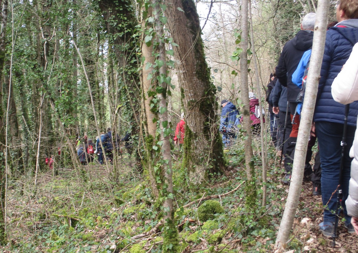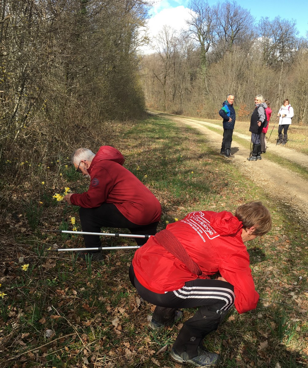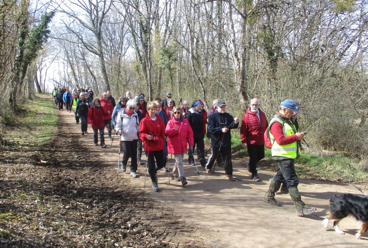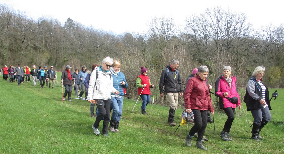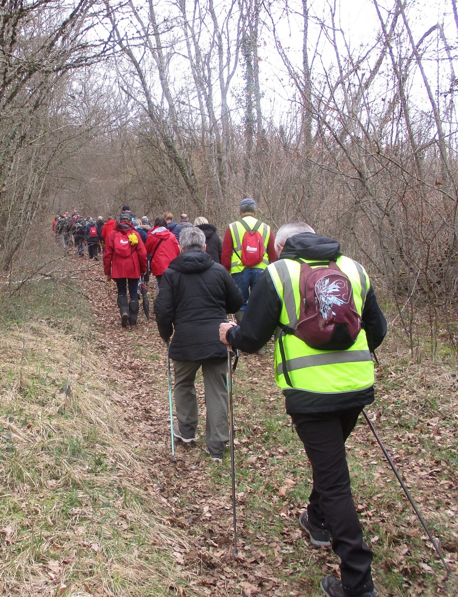 Le printemps est arrivé, sors de ta maison comme le chantait Michel Fugain. Et bien, nous étions quand même une cinquantaine de valeureux marcheuses et marcheurs prêts à arpenter les alentours du village. Comme on dit : « si tu ne veux pas faire une marche en plaine, alors cours celle en montagne » ; et il y en avait des montées à gravir, mais… sans courir ! Deux galants hommes nous ont même tenu le tronc d’un arbre qui barrait le chemin pour ne pas qu’il tombe en passant dessous ! Nous sommes restés longtemps à marcher dans les bois, avec par endroits des étendues de jonquilles que nos cueilleu(rs)ses ont prises d’assaut pour un bouquet. Un temps de printemps qui a ravi tout le monde.