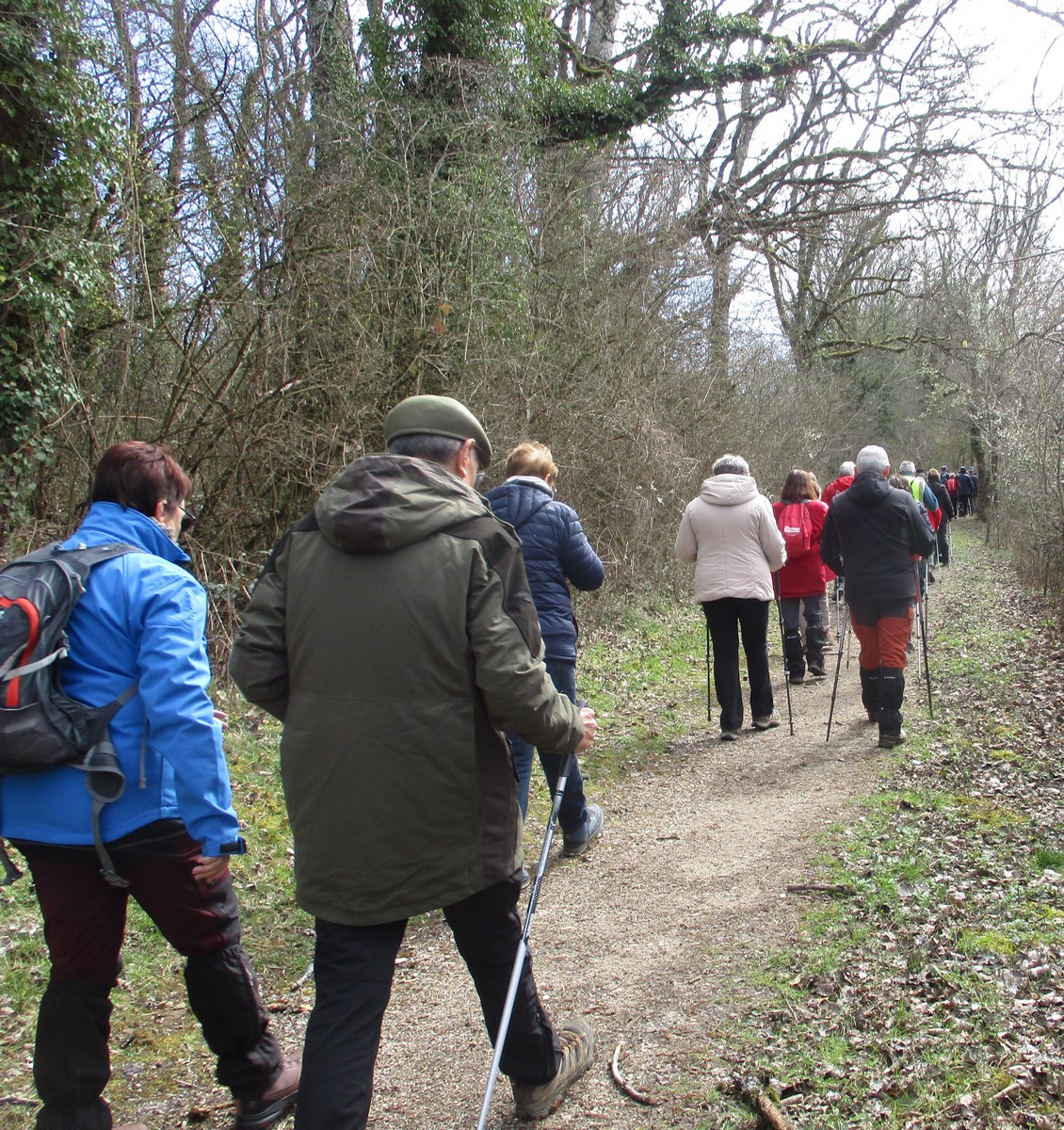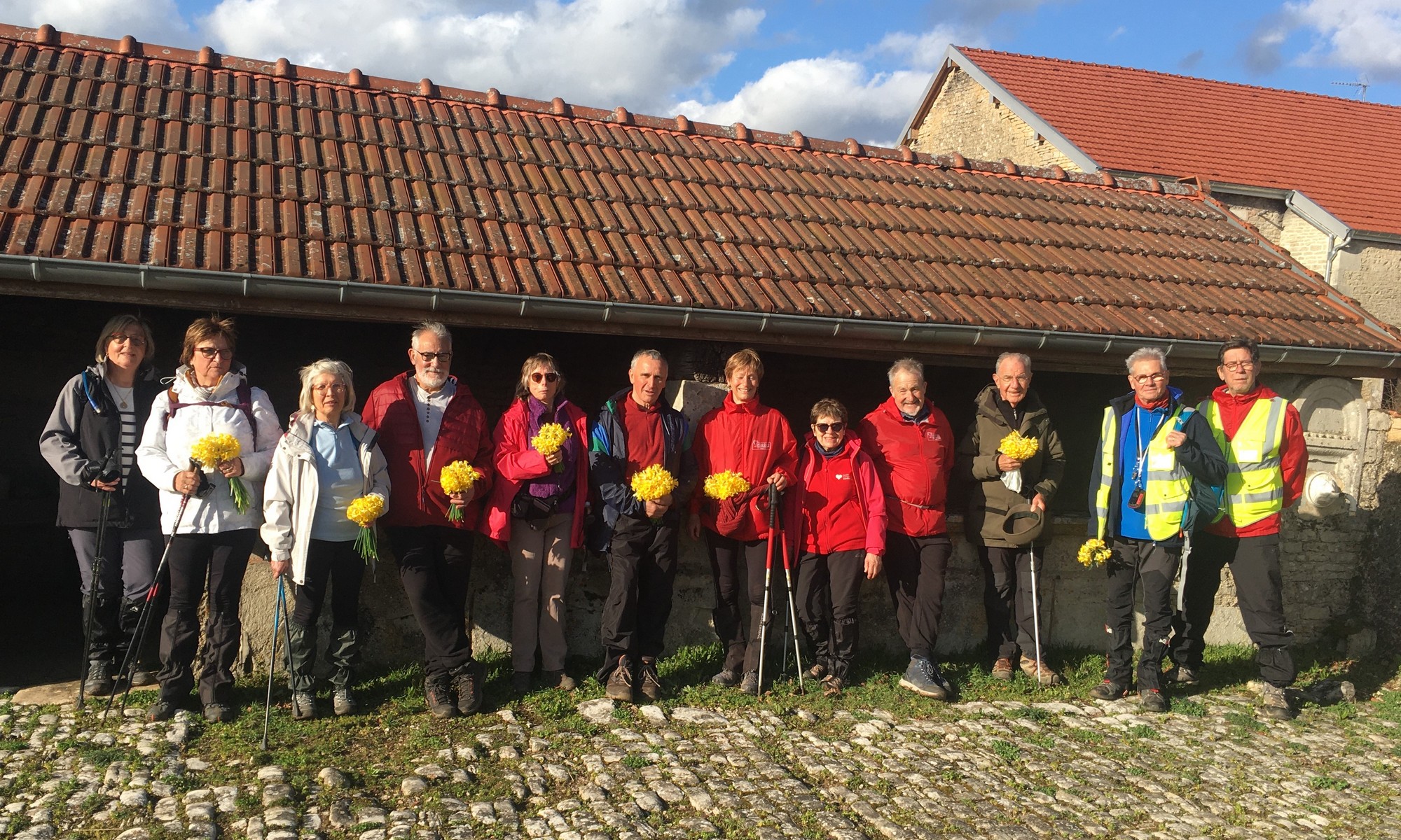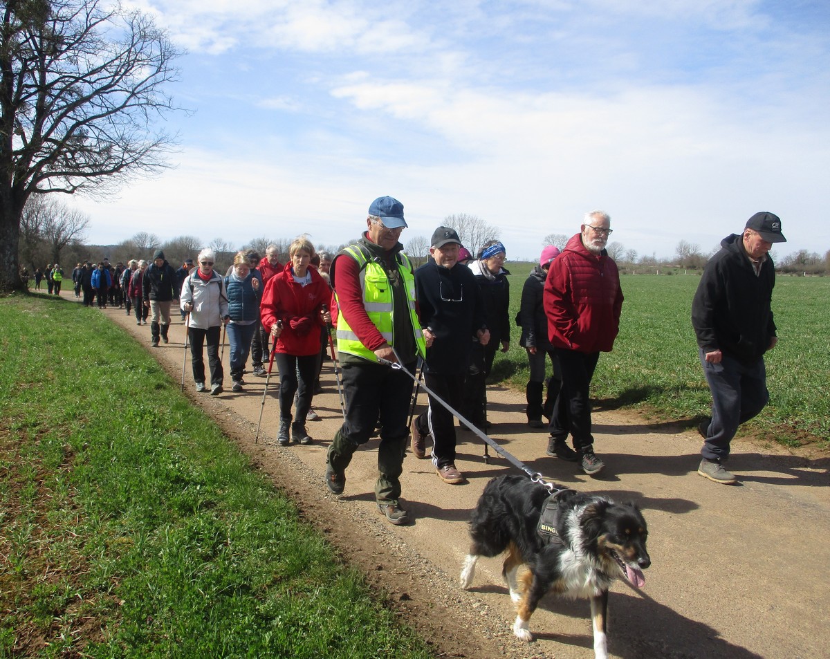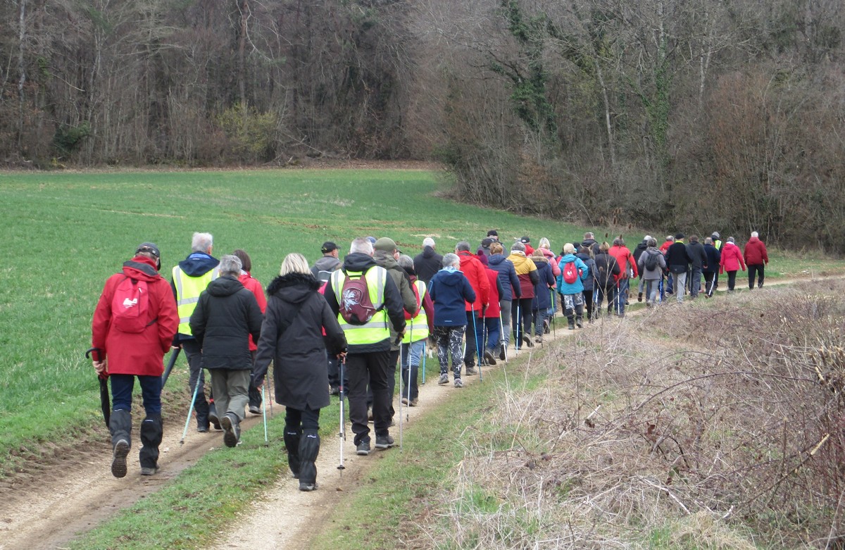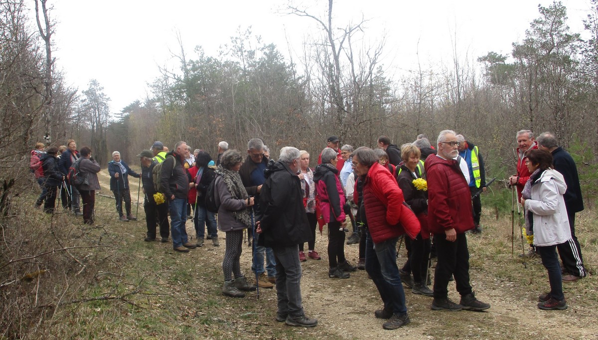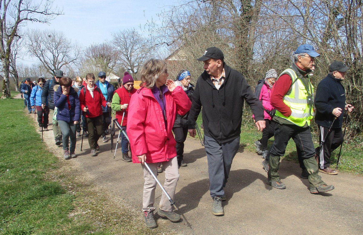Le printemps est arrivé, sors de ta maison comme le chantait Michel Fugain. Et bien, nous étions quand même une cinquantaine de valeureux marcheuses et marcheurs prêts à arpenter les alentours du village. Comme on dit : « si tu ne veux pas faire une marche en plaine, alors cours celle en montagne » ; et il y en avait des montées à gravir, mais… sans courir ! Deux galants hommes nous ont même tenu le tronc d’un arbre qui barrait le chemin pour ne pas qu’il tombe en passant dessous ! Nous sommes restés longtemps à marcher dans les bois, avec par endroits des étendues de jonquilles que nos cueilleu(rs)ses ont prises d’assaut pour un bouquet. Un temps de printemps qui a ravi tout le monde.