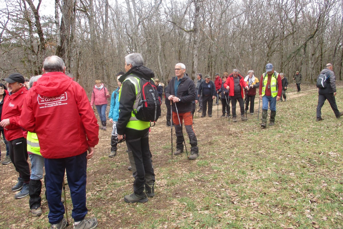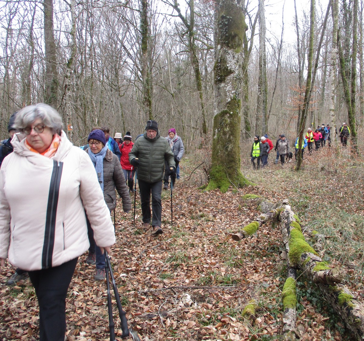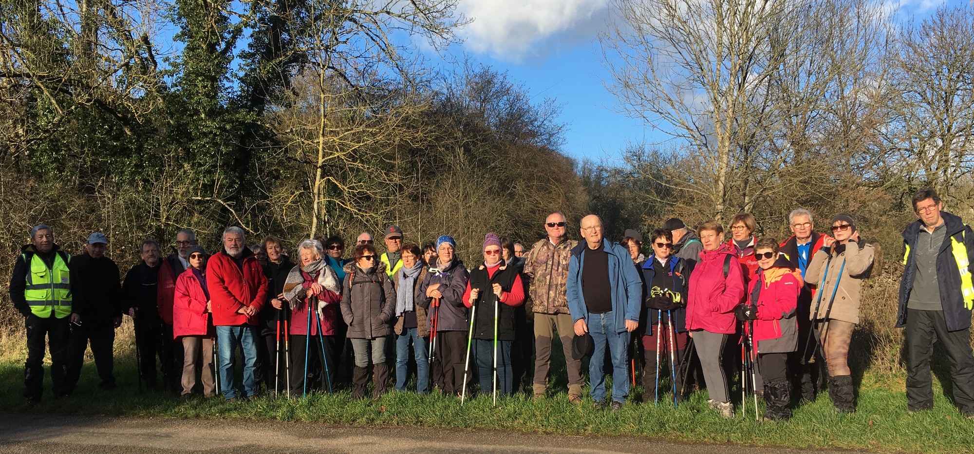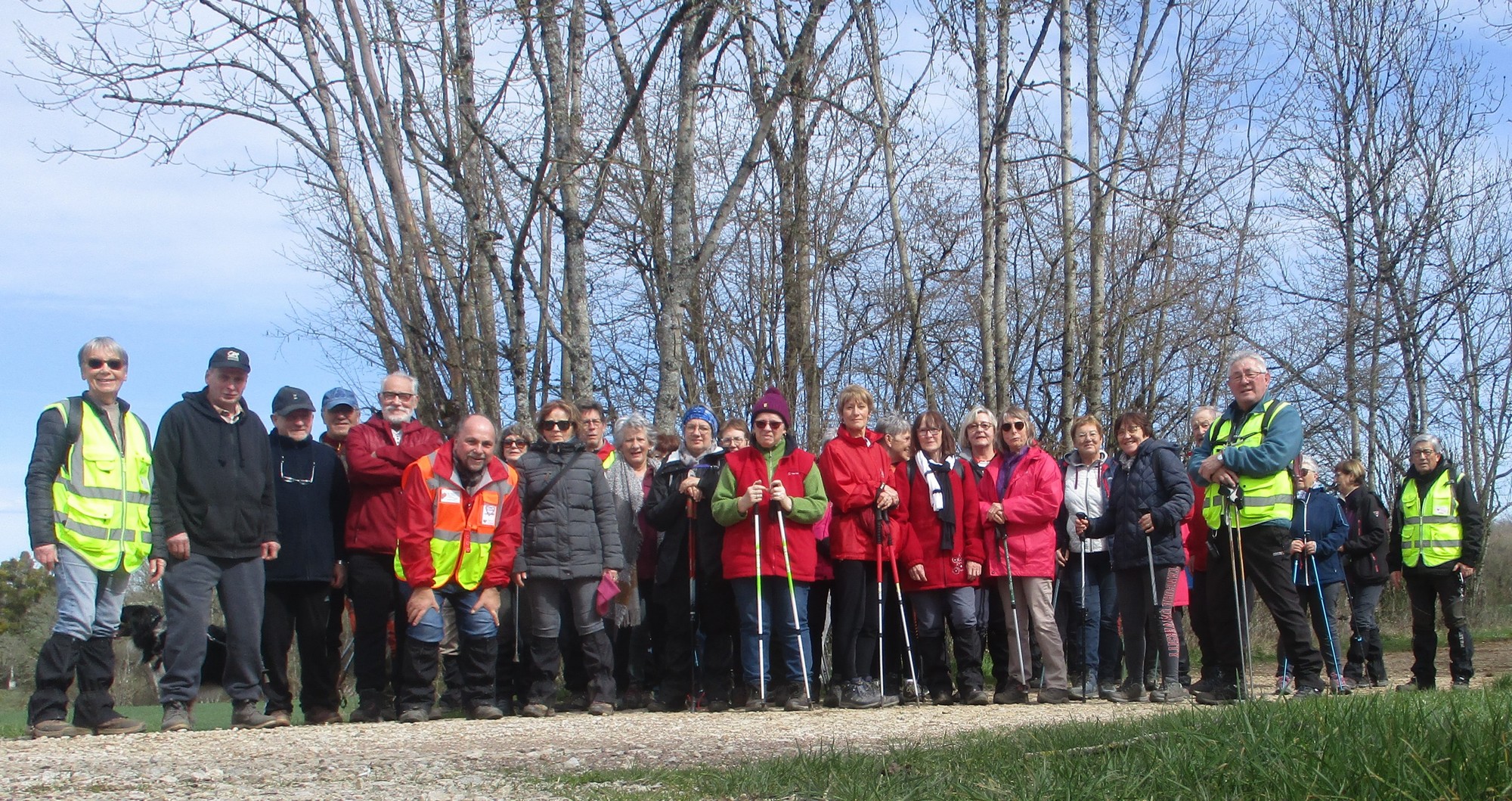 Le printemps est arrivé, sors de ta maison comme le chantait Michel Fugain. Et bien, nous étions quand même une cinquantaine de valeureux marcheuses et marcheurs prêts à arpenter les alentours du village. Comme on dit : « si tu ne veux pas faire une marche en plaine, alors cours celle en montagne » ; et il y en avait des montées à gravir, mais… sans courir ! Deux galants hommes nous ont même tenu le tronc d’un arbre qui barrait le chemin pour ne pas qu’il tombe en passant dessous ! Nous sommes restés longtemps à marcher dans les bois, avec par endroits des étendues de jonquilles que nos cueilleu(rs)ses ont prises d’assaut pour un bouquet. Un temps de printemps qui a ravi tout le monde.
