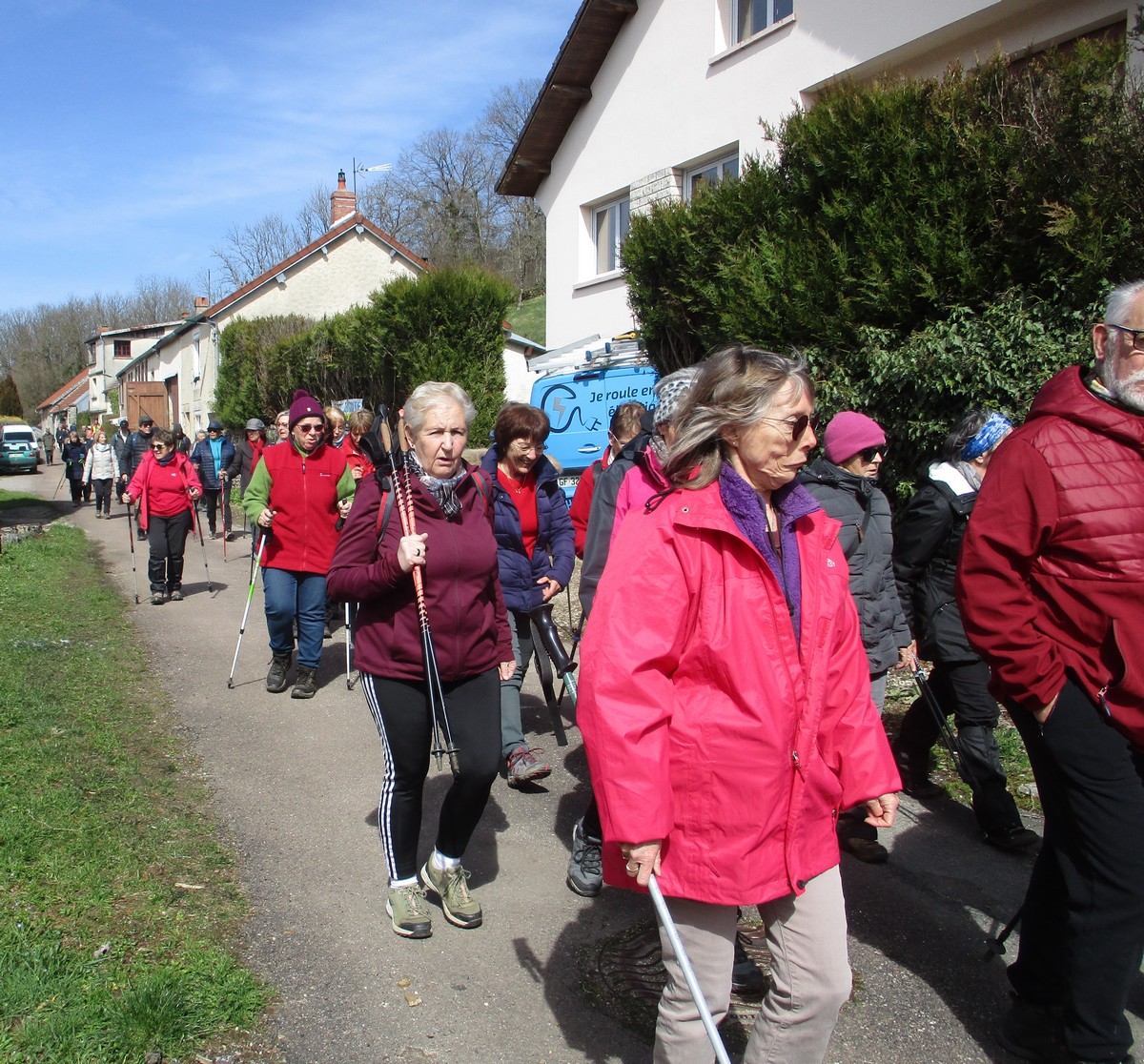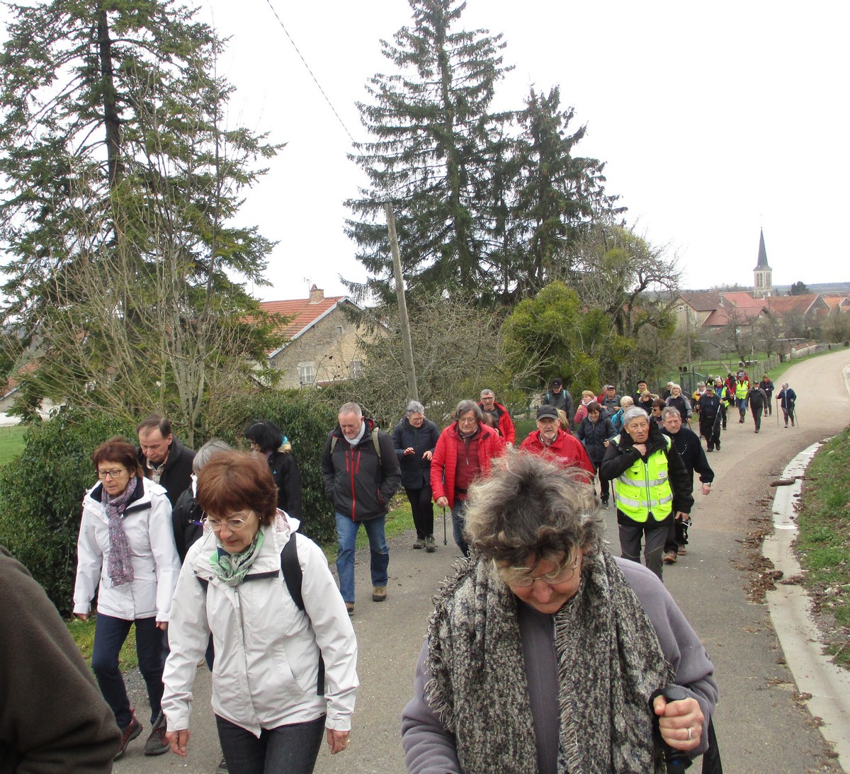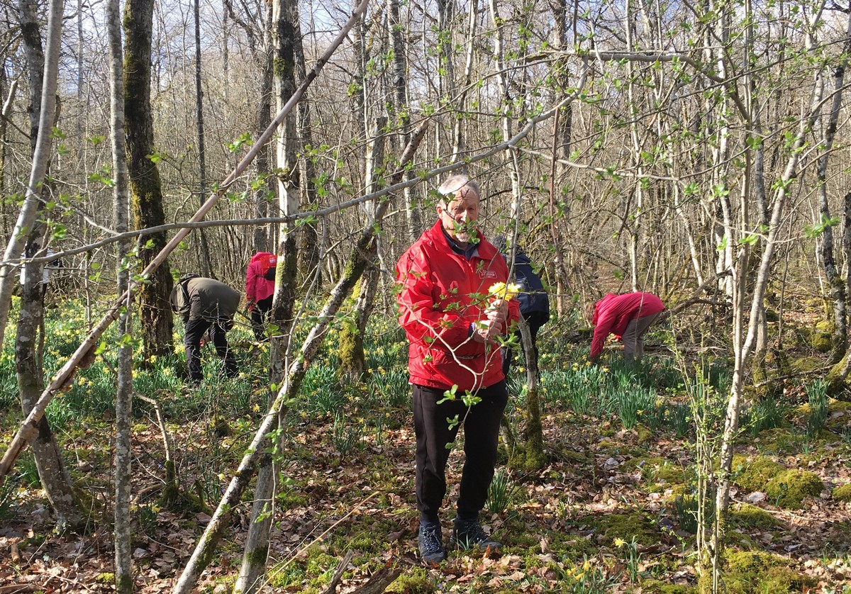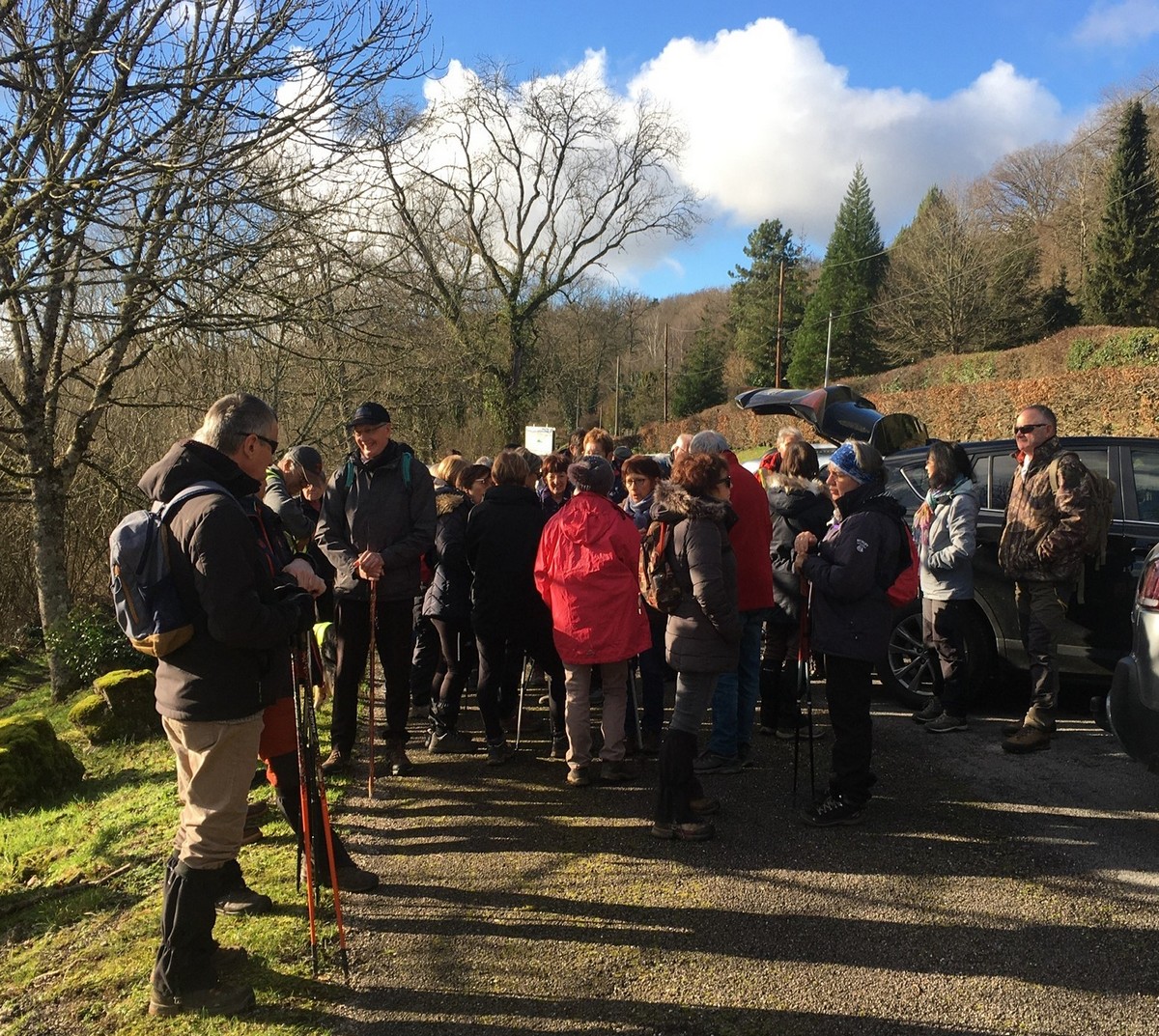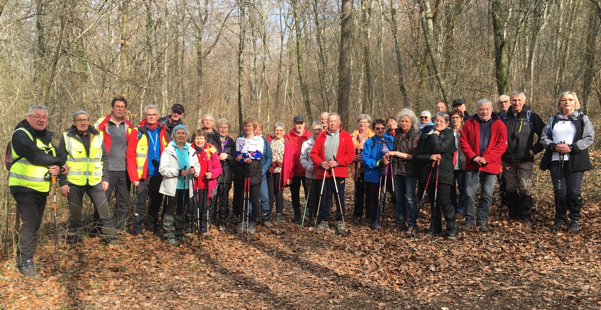 Le printemps est arrivé, sors de ta maison comme le chantait Michel Fugain. Et bien, nous étions quand même une cinquantaine de valeureux marcheuses et marcheurs prêts à arpenter les alentours du village. Comme on dit : « si tu ne veux pas faire une marche en plaine, alors cours celle en montagne » ; et il y en avait des montées à gravir, mais… sans courir ! Deux galants hommes nous ont même tenu le tronc d’un arbre qui barrait le chemin pour ne pas qu’il tombe en passant dessous ! Nous sommes restés longtemps à marcher dans les bois, avec par endroits des étendues de jonquilles que nos cueilleu(rs)ses ont prises d’assaut pour un bouquet. Un temps de printemps qui a ravi tout le monde.