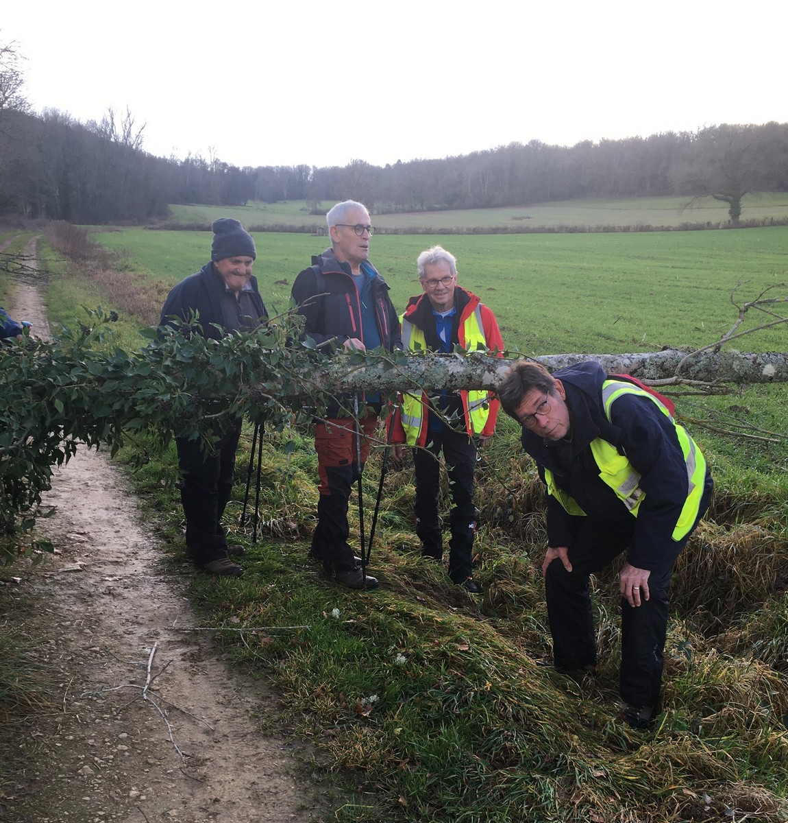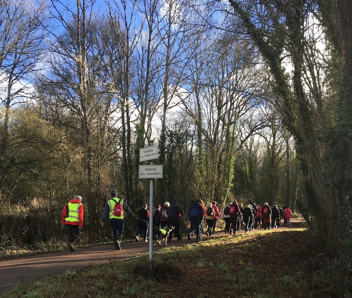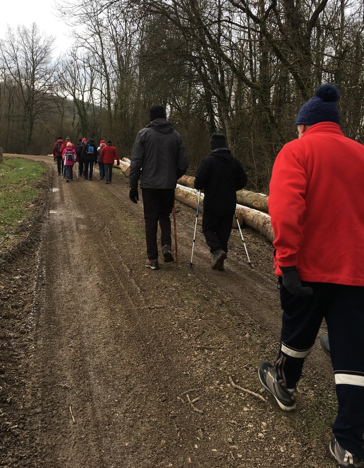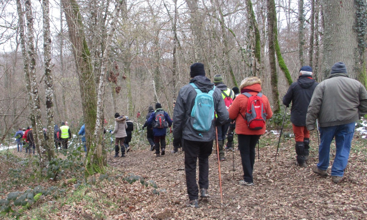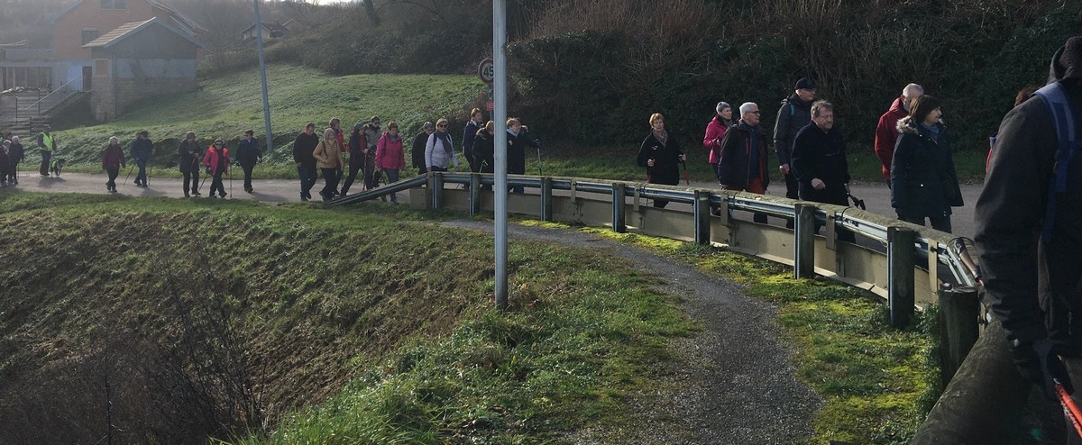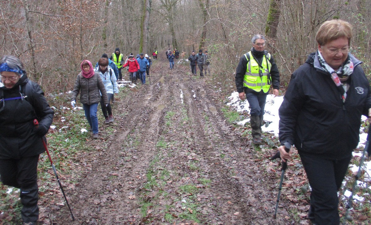 Aujourd’hui, pour la dernière marche du mois de janvier au départ à 13h30, nous étions une petite quarantaine à avoir chausser nos brodequins pour venir affronter la montée de Tronchoy depuis Lannes. Un passage sur le pont de l’autoroute où la circulation semblait minime. Après avoir traversé le village, nous entrons dans le bois où nos chères chaussures ont encore bien pataugé. Une photo de groupe habituelle et nous continuons notre marche sur des chemins moins hostiles. A l’orée du bois, nous entreprenons alors une descente, non pas aux enfers, mais qui martèle notre dos à chaque pas. Nous apercevons enfin un autre pont d’autoroute que nous traversons avant d’arriver tranquillement à nos voitures.