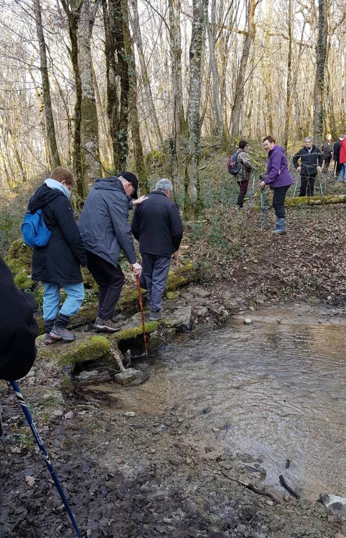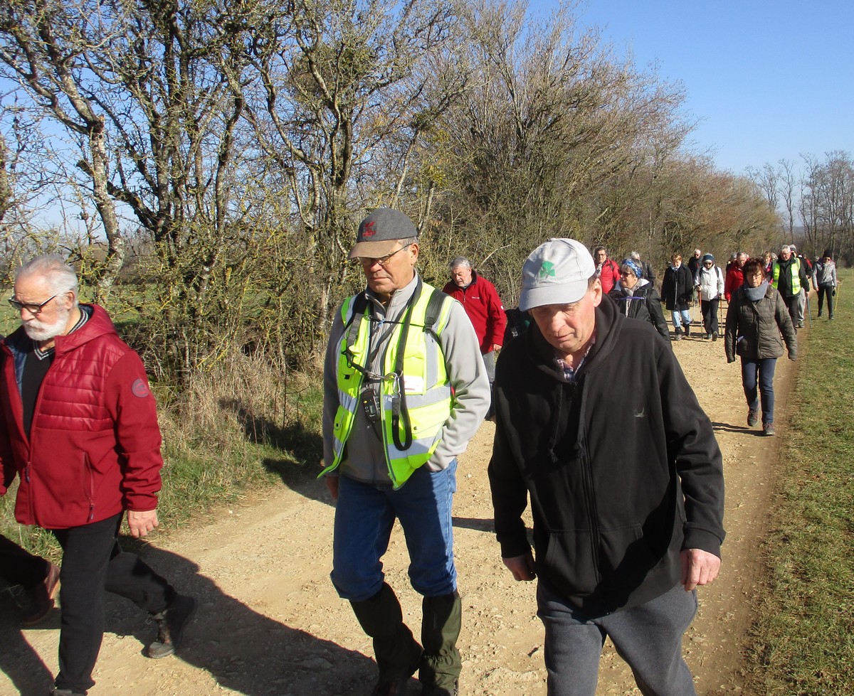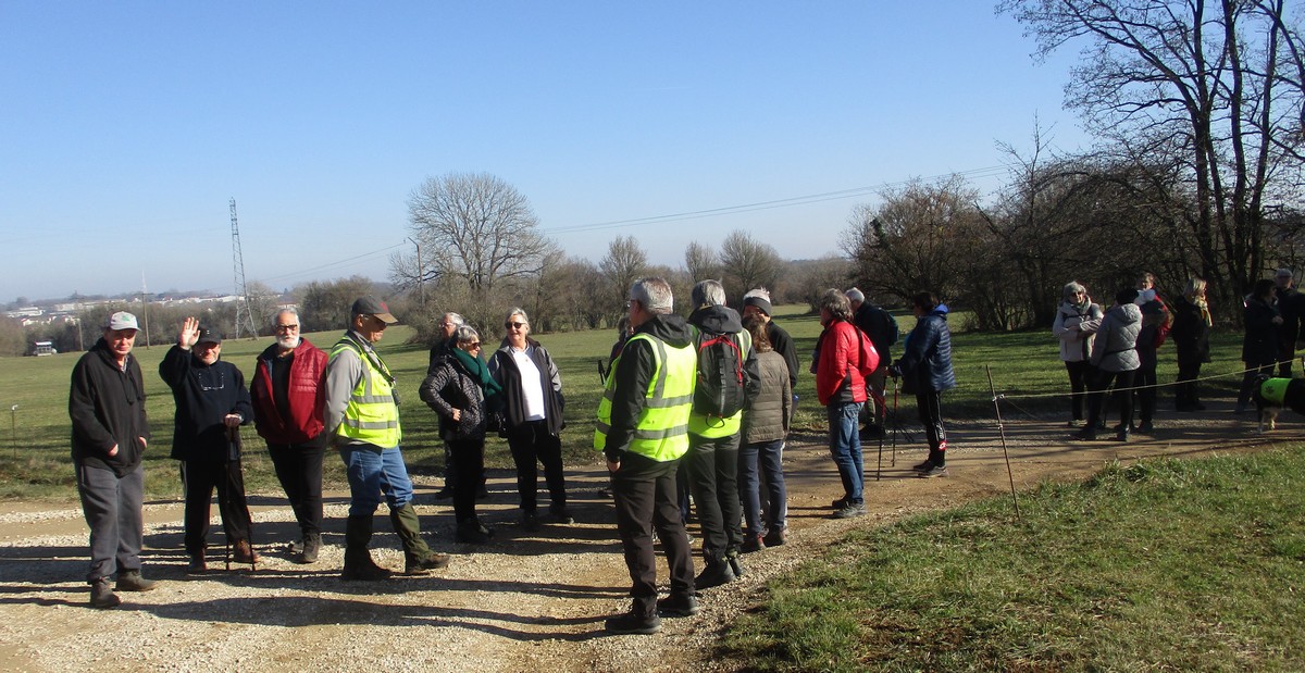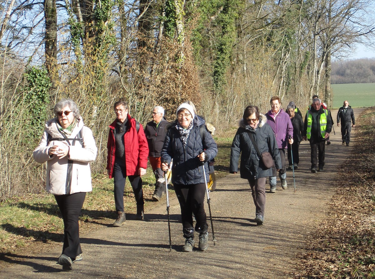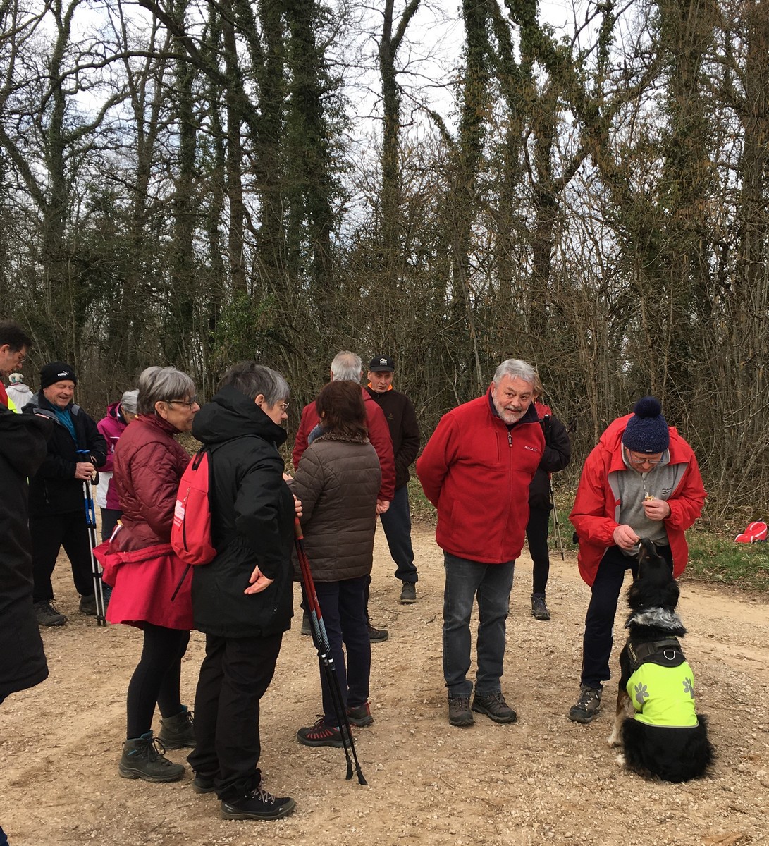 L’anticyclone d’hiver bien installé sur notre région nous a permis de profiter d’une belle balade ensoleillée. Le groupe bien étoffé aujourd’hui longe le canal puis se dirige vers Marnay. Quelle montée ! On récupère un peu sur le plateau. Retour descendant sur Vesaignes avec en prime un exercice d’équilibre lors de la traversée du ruisseau de Trimeule. Belle sortie fort sympathique.