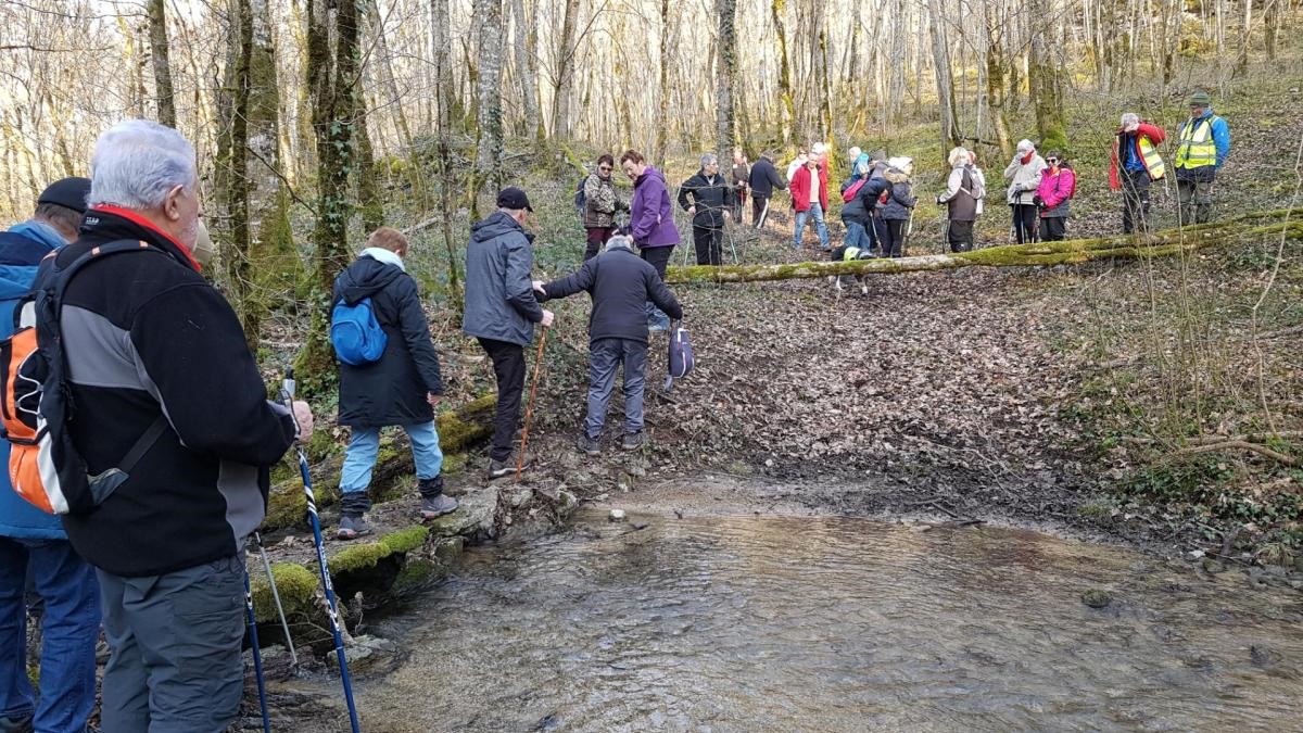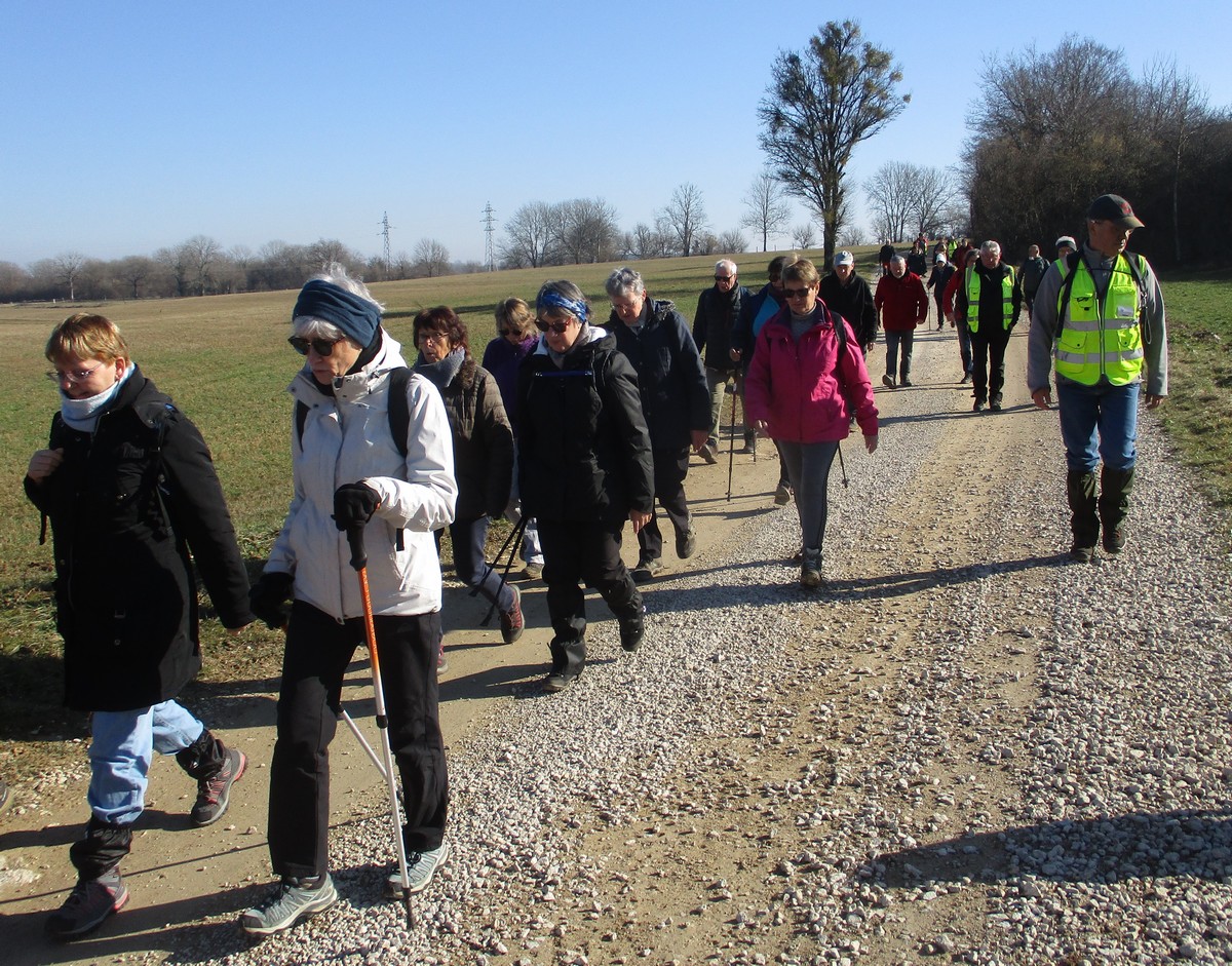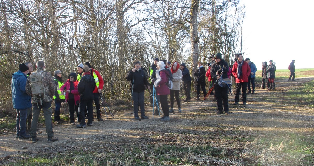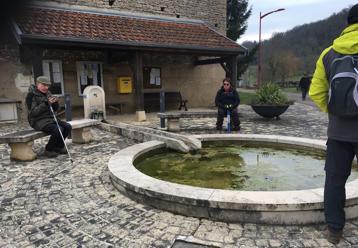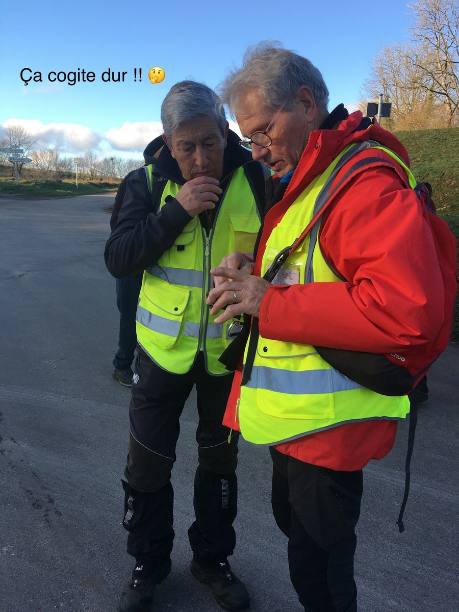L’anticyclone d’hiver bien installé sur notre région nous a permis de profiter d’une belle balade ensoleillée. Le groupe bien étoffé aujourd’hui longe le canal puis se dirige vers Marnay. Quelle montée ! On récupère un peu sur le plateau. Retour descendant sur Vesaignes avec en prime un exercice d’équilibre lors de la traversée du ruisseau de Trimeule. Belle sortie fort sympathique.