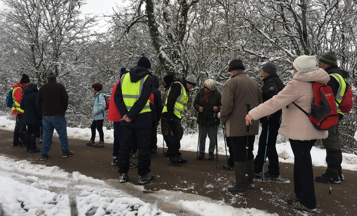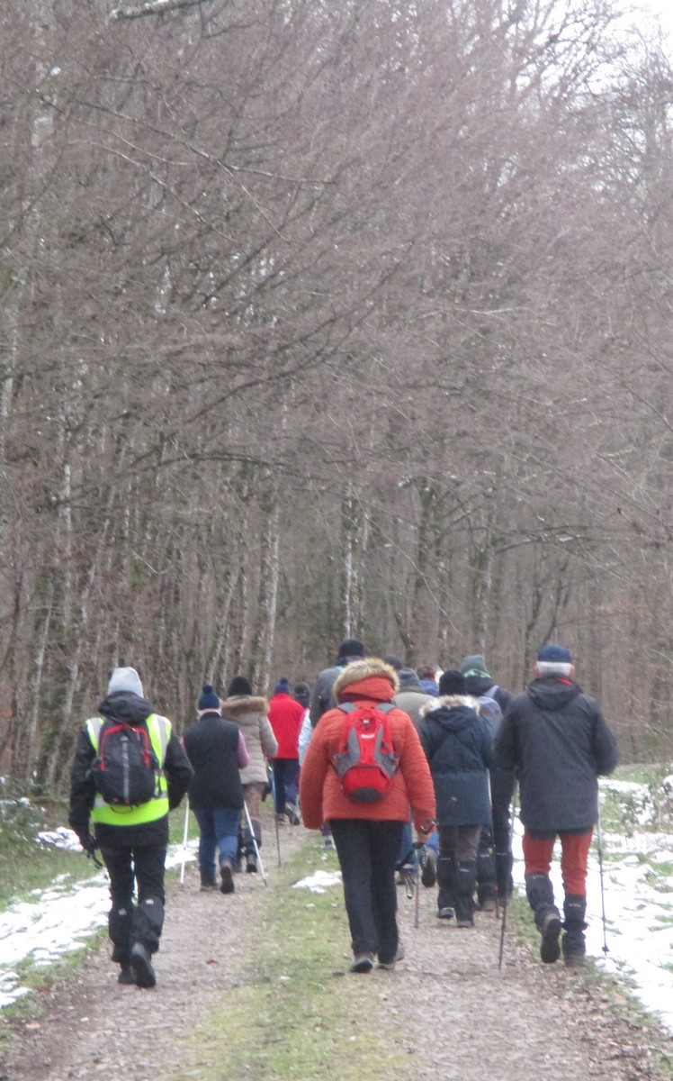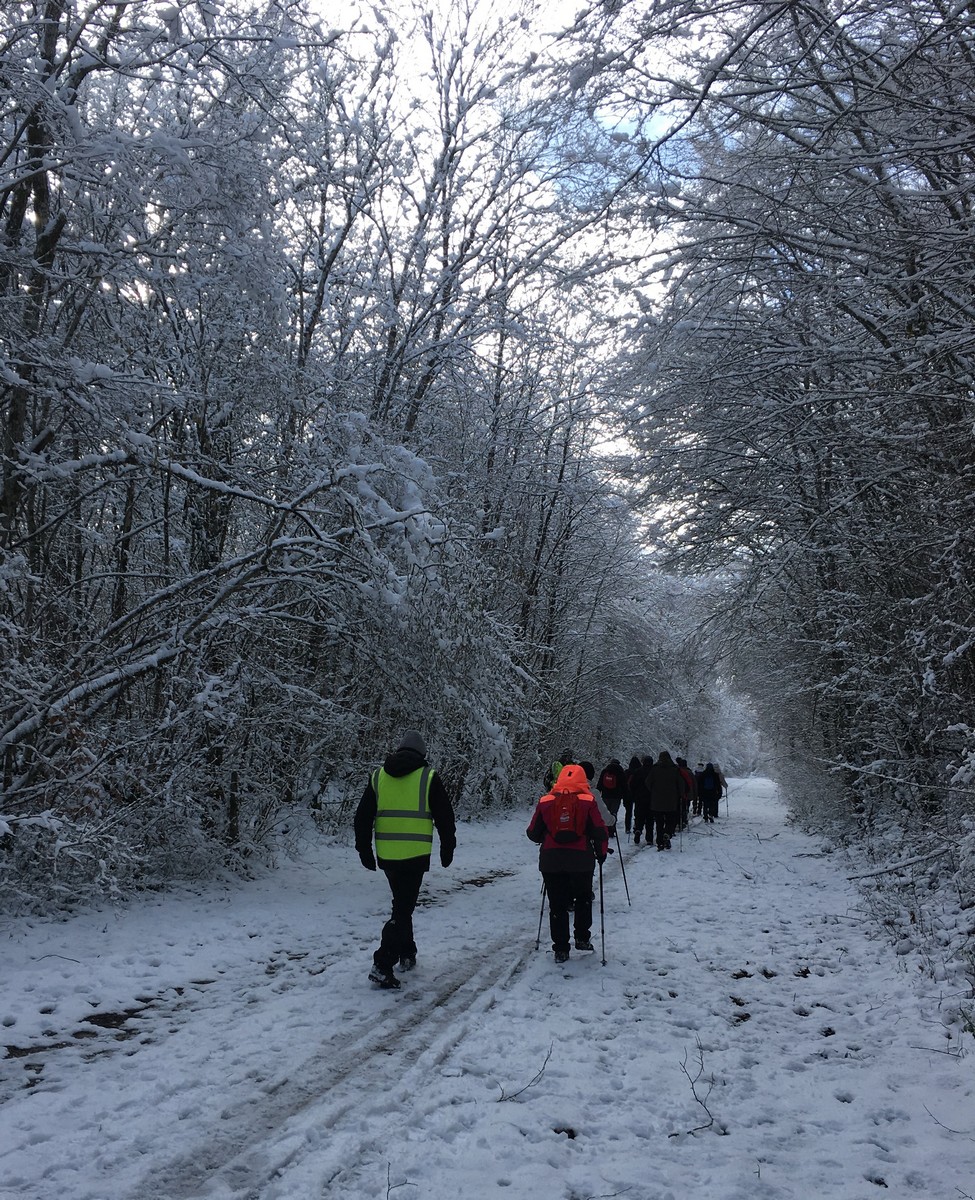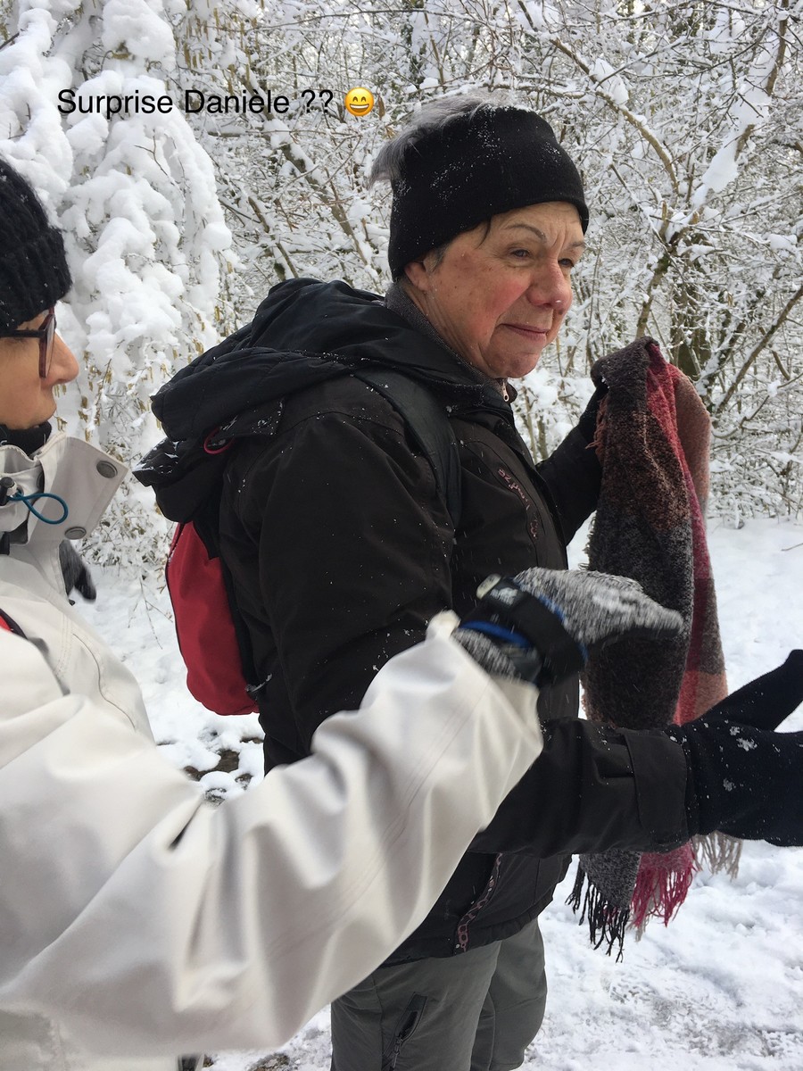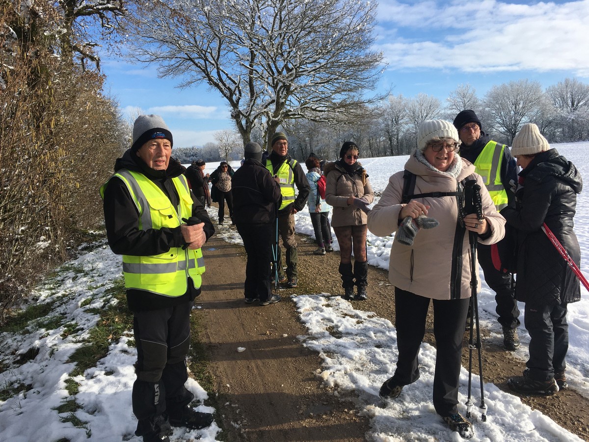 Aujourd’hui nous étions 23 marcheurs au départ de Sts-Geosmes pour cette randonnée de 10kms. Circuit facile (même pas une petite côte) dans un paysage féerique… nous avions oublié le bonheur de marcher dans la neige. A noter 2 petites anecdotes… Sylvie en chutant nous a fait une démonstration de prière à genoux dans la neige et un petit plaisantin s’est amusé à tirer sur les branches chargées de neige en les relâchant juste avant le passage de la personne suivante… n’est-ce pas Danièle ?? Après-midi agréable dans une ambiance bon enfant.