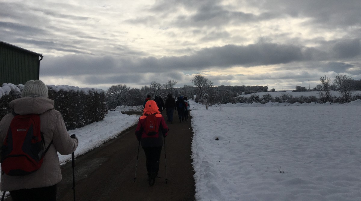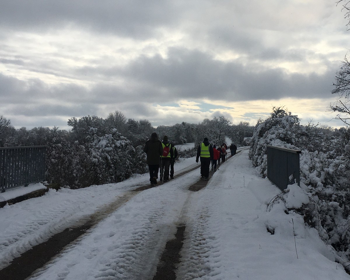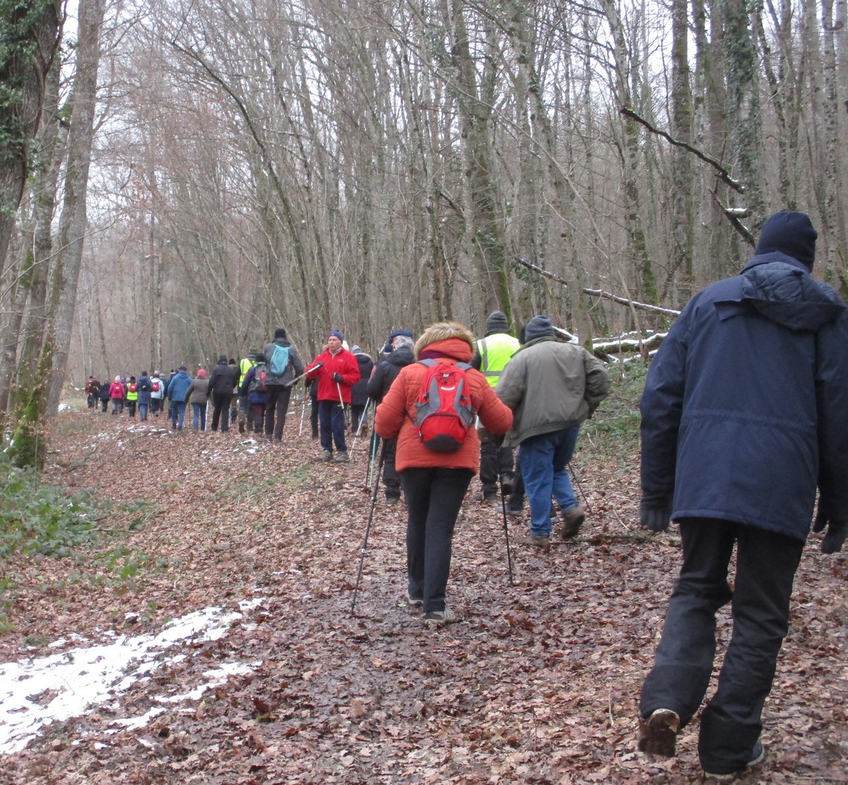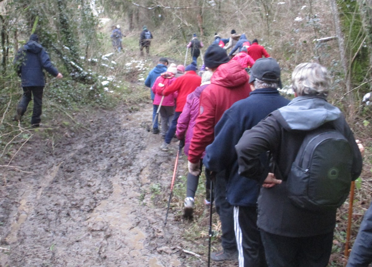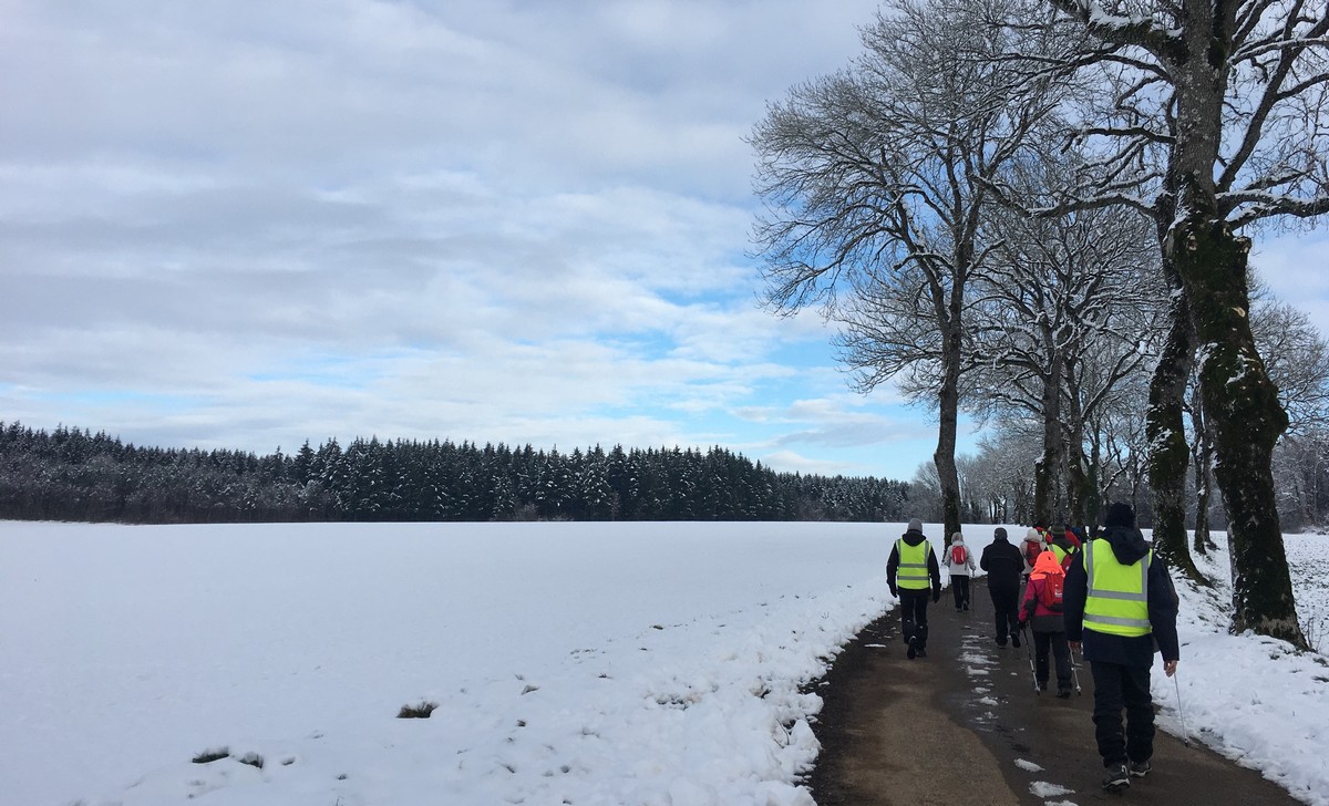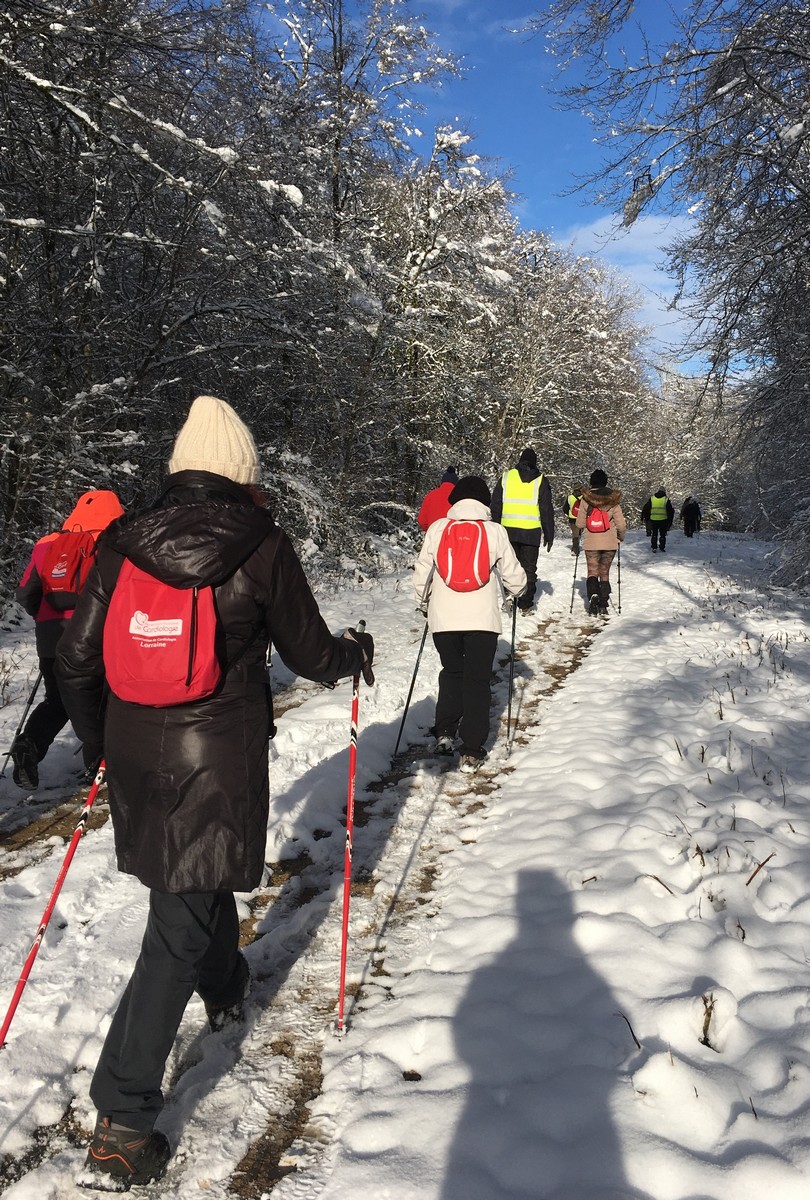 Aujourd’hui nous étions 23 marcheurs au départ de Sts-Geosmes pour cette randonnée de 10kms. Circuit facile (même pas une petite côte) dans un paysage féerique… nous avions oublié le bonheur de marcher dans la neige. A noter 2 petites anecdotes… Sylvie en chutant nous a fait une démonstration de prière à genoux dans la neige et un petit plaisantin s’est amusé à tirer sur les branches chargées de neige en les relâchant juste avant le passage de la personne suivante… n’est-ce pas Danièle ?? Après-midi agréable dans une ambiance bon enfant.
