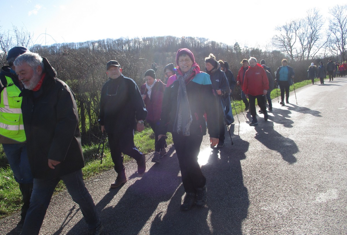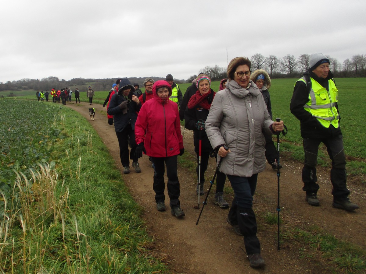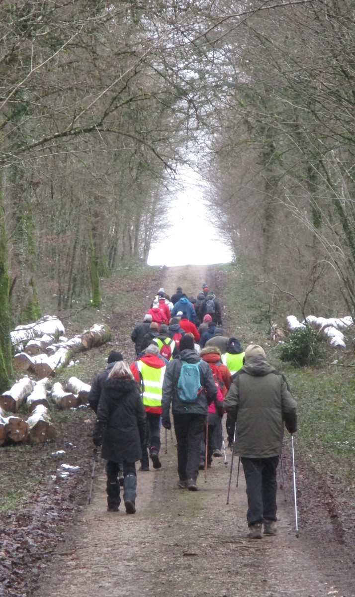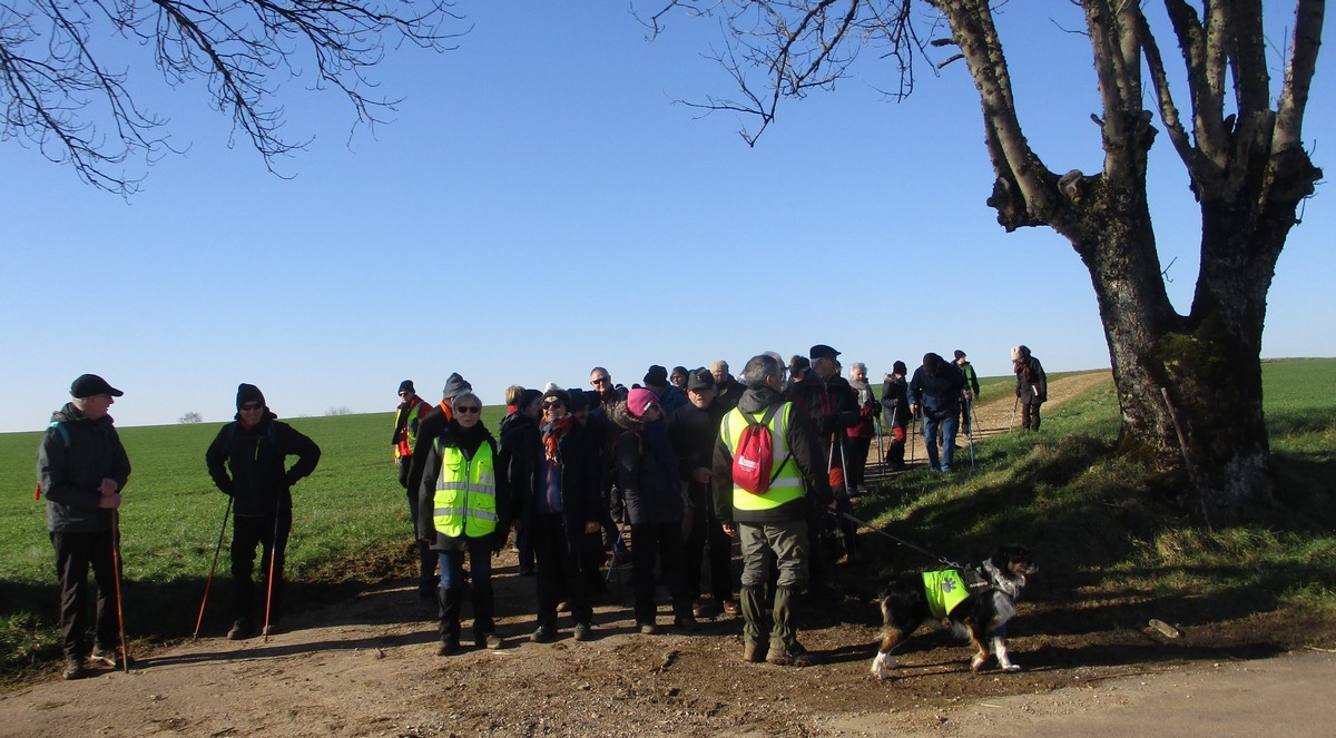 Février est là et le soleil aussi pour cette marche de 6,7 kms qui va nous emmener par monts et par vaux. Or ce « vaux » vaut bien de l’or, car on en a monté, descendu, remonté et redescendu avec pour « cerises » sur le gâteau (pas celles d’Orcevaux) de la gouillasse à gogo sur les chaussures. Mais nous étions quand même une quarantaine de valeureux marcheurs à vouloir arpenter la plaine entre ce village et Verseilles le Ht (et pas Versailles, car certains cherchent encore le château !!). A part un petit coucou à hélices qui voulait taquiner les énormes pales de l’éolienne N°1, le soleil nous a accompagné tout au long de cette ballade tantôt plaine, tantôt bois.