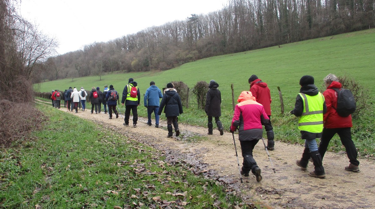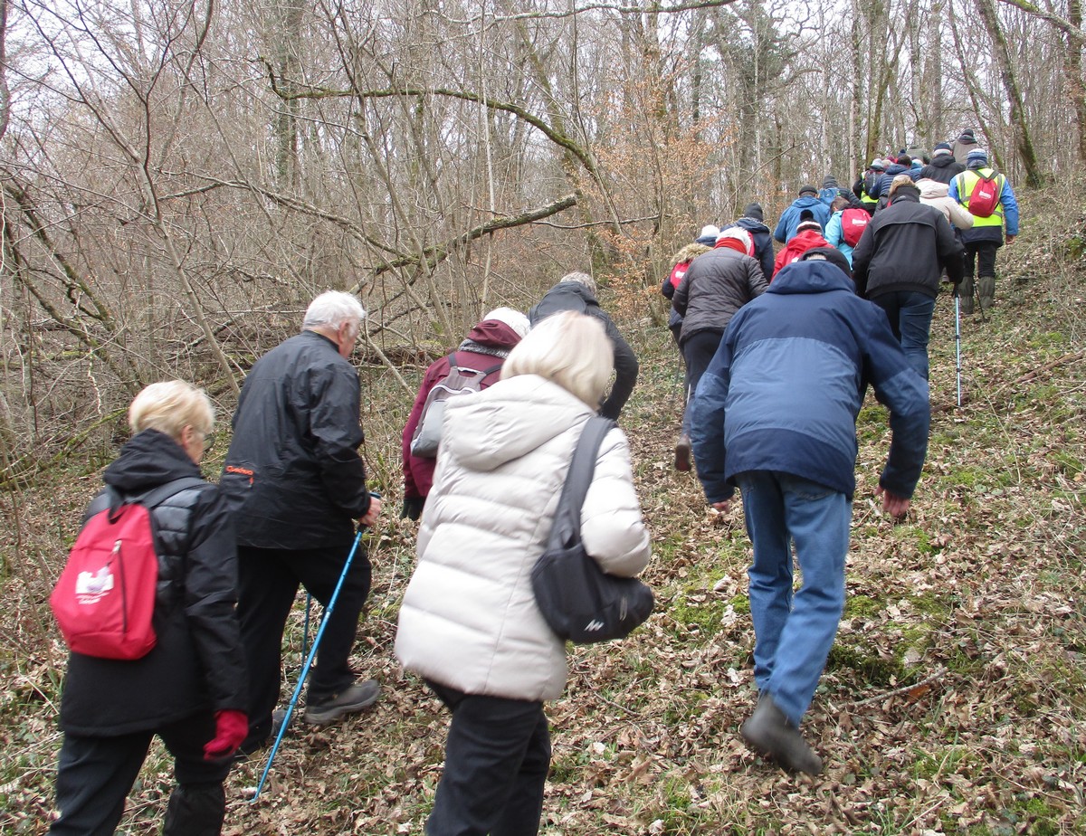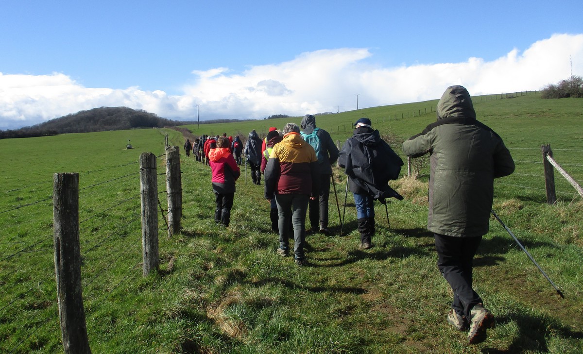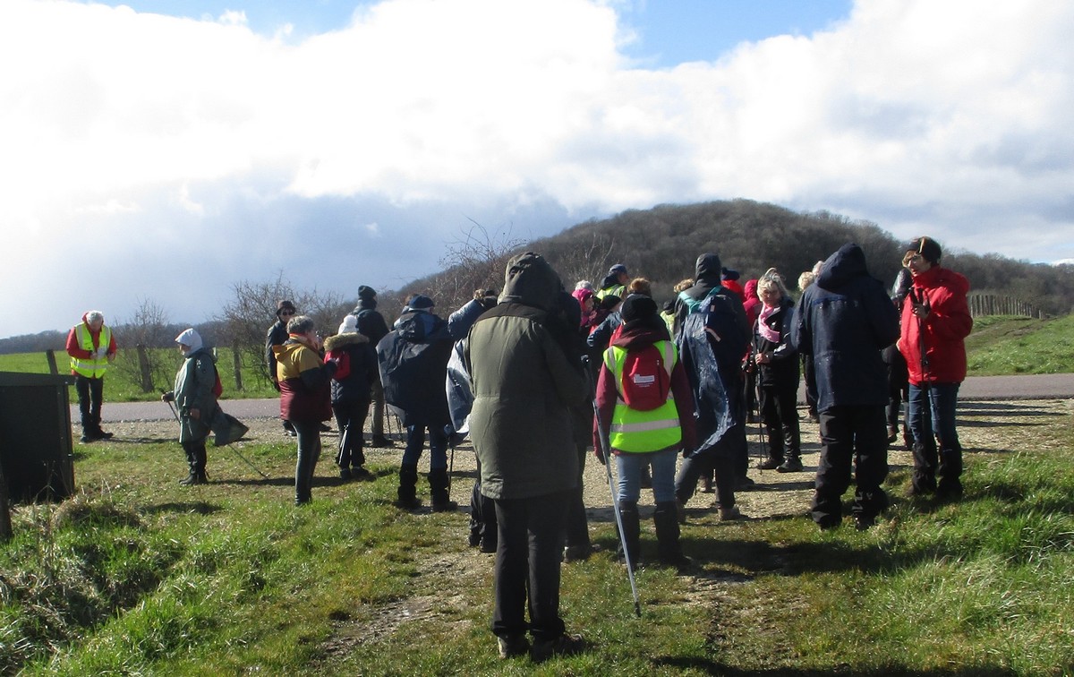 Février est là et le soleil aussi pour cette marche de 6,7 kms qui va nous emmener par monts et par vaux. Or ce « vaux » vaut bien de l’or, car on en a monté, descendu, remonté et redescendu avec pour « cerises » sur le gâteau (pas celles d’Orcevaux) de la gouillasse à gogo sur les chaussures. Mais nous étions quand même une quarantaine de valeureux marcheurs à vouloir arpenter la plaine entre ce village et Verseilles le Ht (et pas Versailles, car certains cherchent encore le château !!). A part un petit coucou à hélices qui voulait taquiner les énormes pales de l’éolienne N°1, le soleil nous a accompagné tout au long de cette ballade tantôt plaine, tantôt bois.