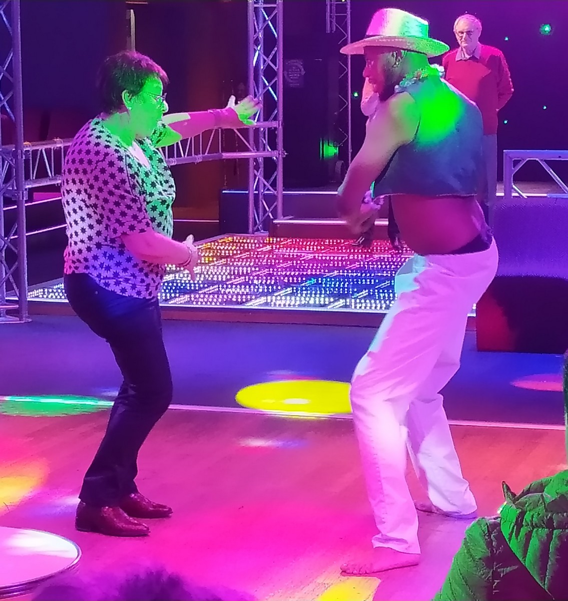 Aujourd’hui, on va faire la nouba … et où ça ? à « La Nouba » à Ste Colombe dans l’Yonne. Nous étions une bonne cinquantaine d’adhérents de Festi-Cœur au pied de l’abri bus Place Bel-Air à attendre « Marcot ». Mais que ne fût pas notre surprise d’avoir une petite « Marcotte » au volant pour nous conduire là-bas. Après avoir avaler jusqu’à côté d’Avallon les kilomètres par les routes départementales, nous arrivons vers midi pour … manger. Petit menu sympathique et fort bon qui nous a rempli le ventre, entrecoupé par quelques petites histoires narrées par notre Dédé, ceci avant de s’installer dans la pièce d’à côté pour … assister au spectacle « Croisière sous les tropiques ». Quatre danseuses et deux danseurs nous ont proposé de voyager pendant 90 minutes sous des airs rythmés des pays chauds. Certains ont même été priés de participer à certaines danses endiablées à leur grand bonheur, n’est-ce pas Nelly ! La « Chenille », le « Tunnel » et un « Madisson » ont permis de dérouiller les jambes qui en avaient bien besoin depuis le matin, n’est-ce pas Dédé ! Mais tout cela a une fin et dès 17h30, il nous fallait déjà repartir et remonter dans notre bus, lequel nous ramena à destination vers les 20h.
