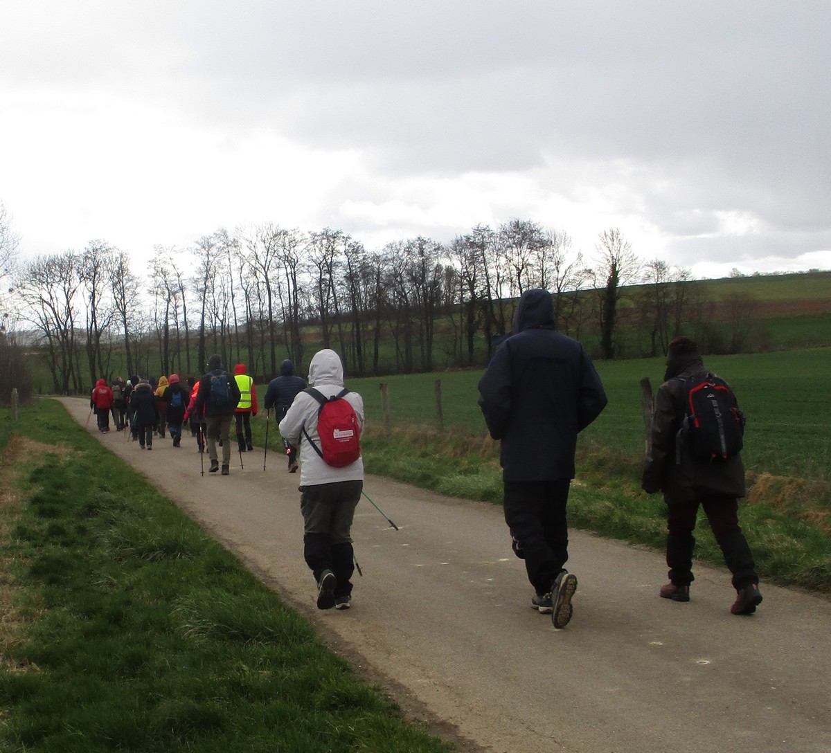 C’est à La Liez qu’un petit groupe de marcheurs s’est retrouvé pour une randonnée de 10,4 kms. Comme en témoignent les photos, tous avaient anticipé la petite bise du nord-est avec…. les bonnets…. les capuches et les écharpes !!! Merci aux courageux qui ont osé braver le froid 😀.