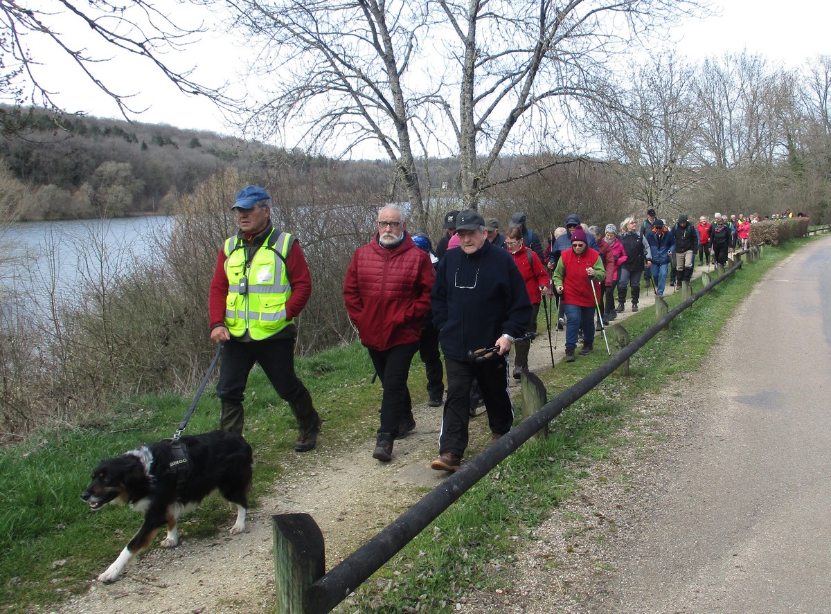 Dernière marche du cœur du 2ème trimestre aujourd’hui et nous sommes encore une cinquantaine de valeureux marcheurs présents au départ. Nous avons d’abord longé le lac jusqu’à Perrancey (Toujours pas vues la Mèrancey ainsi que la Fillancey !!!). Nous traversons tout le village et montons ensuite sur les hauteurs dans la plaine sous un soleil mi-figue mi-raisin. Enfin, nous traversons un bois par un chemin escarpé à donner quelques frayeurs à certain(e)s. Petite marche sympathique de quelques 6 kms, sans rien cueillir au passage !