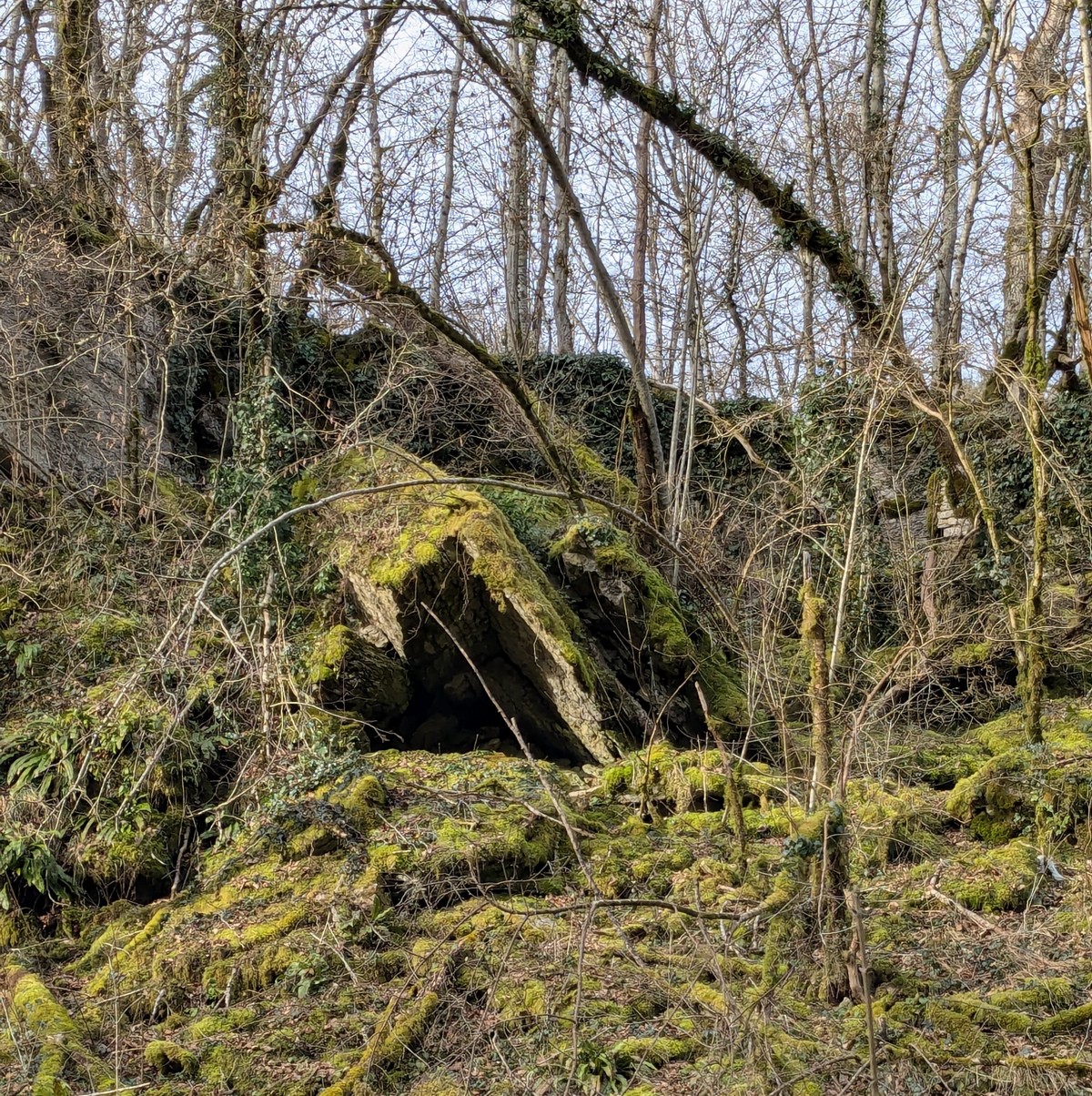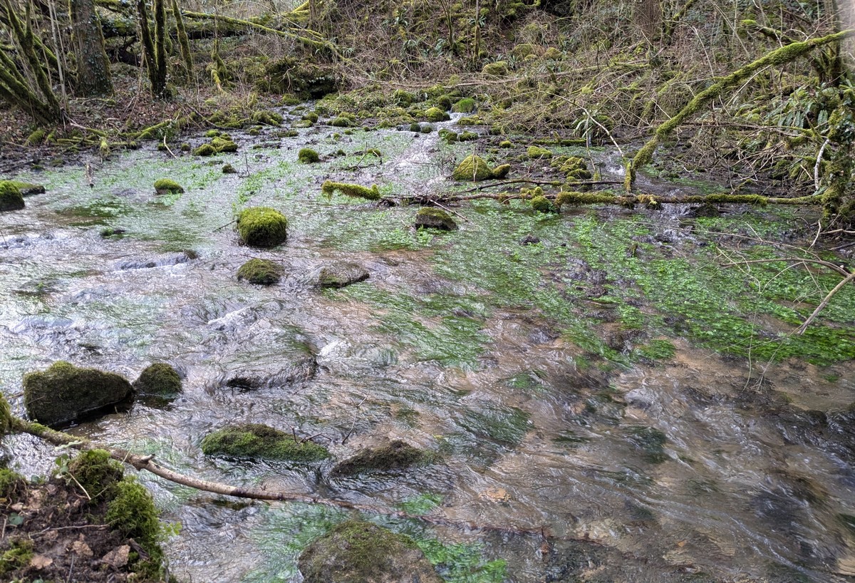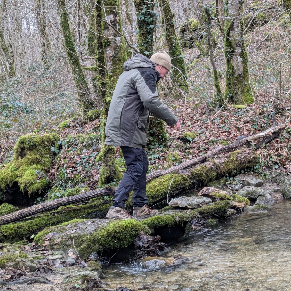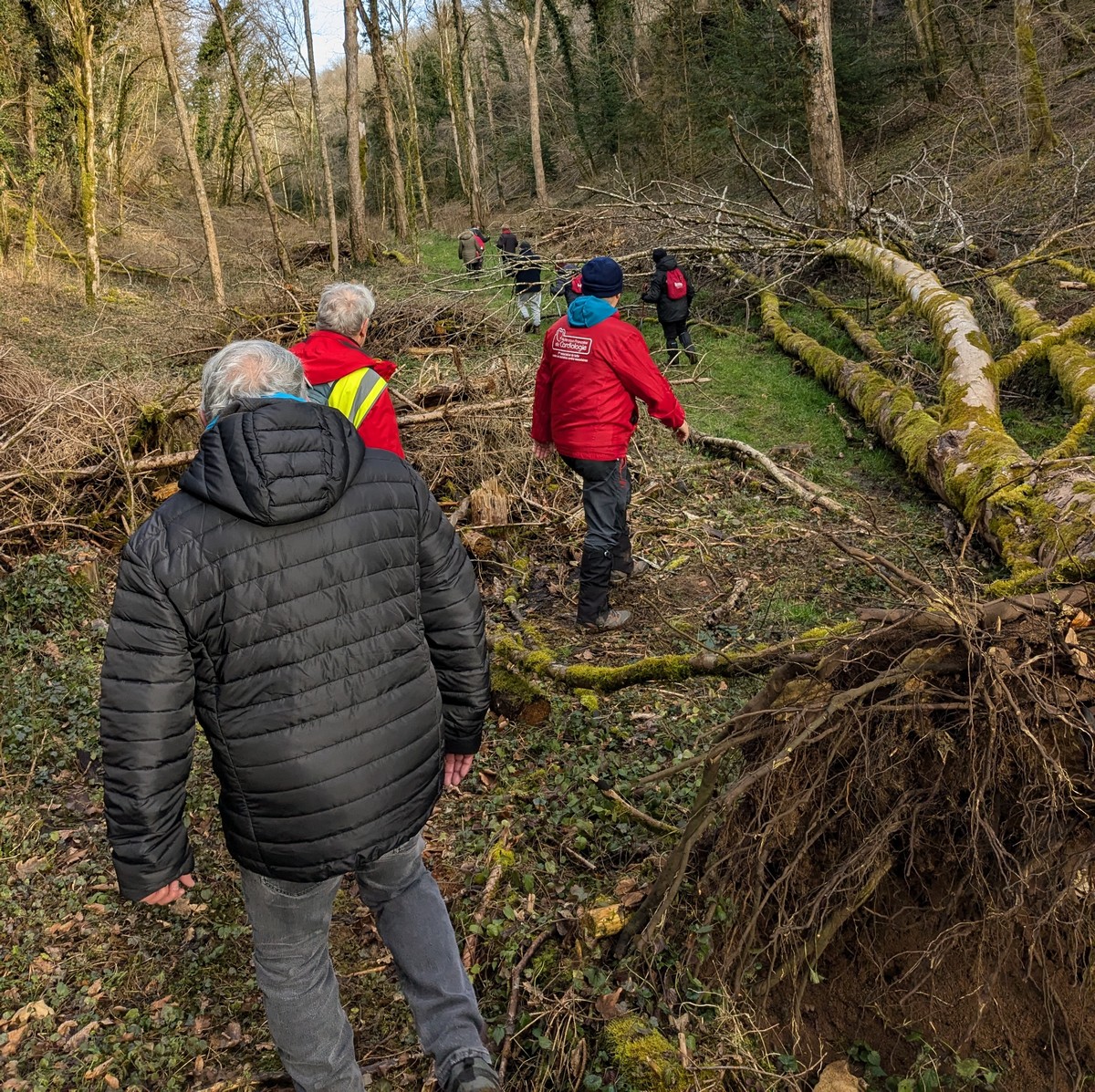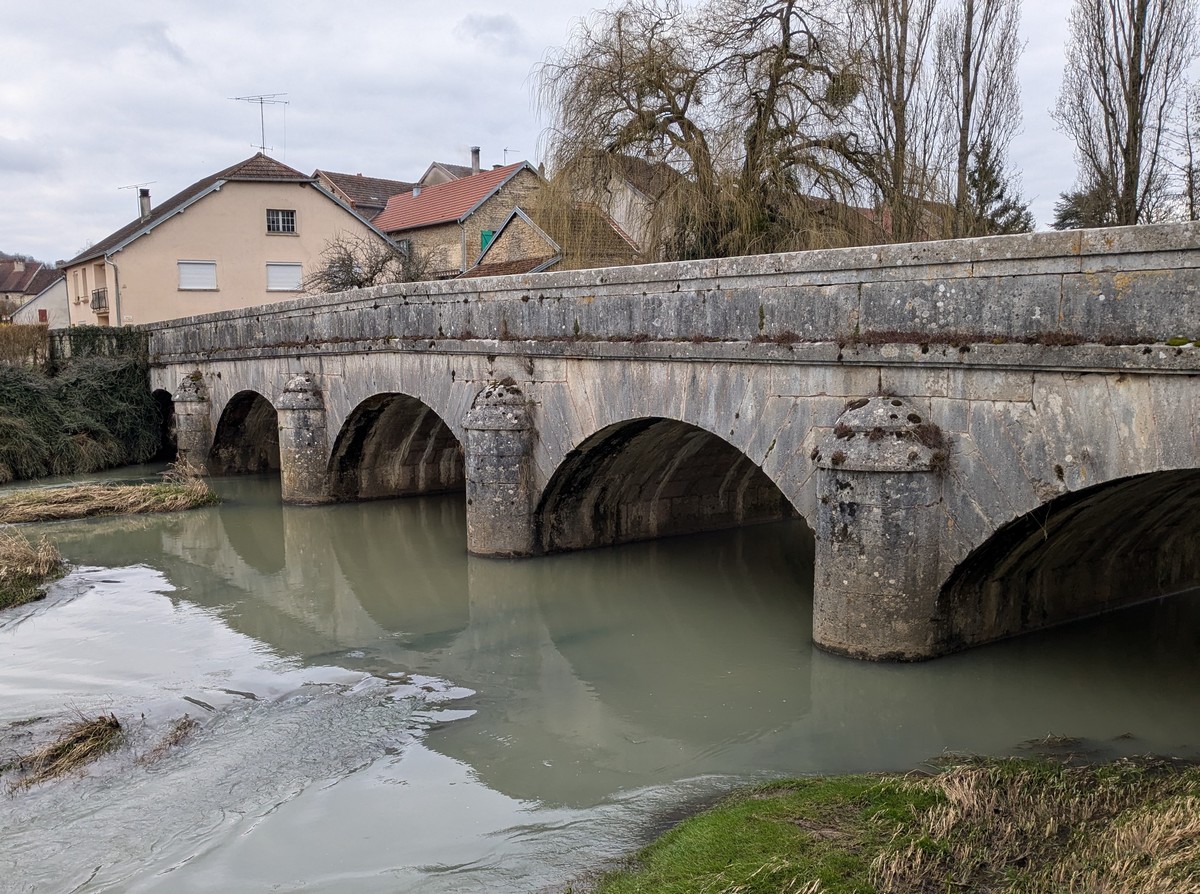 C’est parti pour une marche de 9,8 kms ; nous sommes une bonne vingtaine au départ de Noidant-Le-Rocheux, accompagné d’un ciel bleu. Nous débutons par une montée afin de parcourir notre chemin dans les sous-bois bien gouillasseux, qui nous mènent sur une plaine, de façon à rejoindre le GR 7 traversant la vallée de la Mouche. Celle-ci est bien humide et encombrée d’arbres tombés par les rafales de vent : « Un vrai parcours du combattant ». Mais aucun ne se « noie dans » un verre d’eau en traversant les rus.