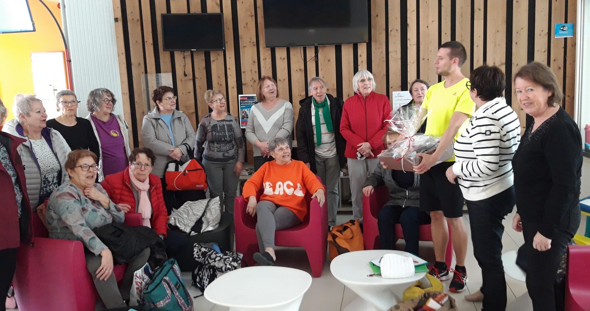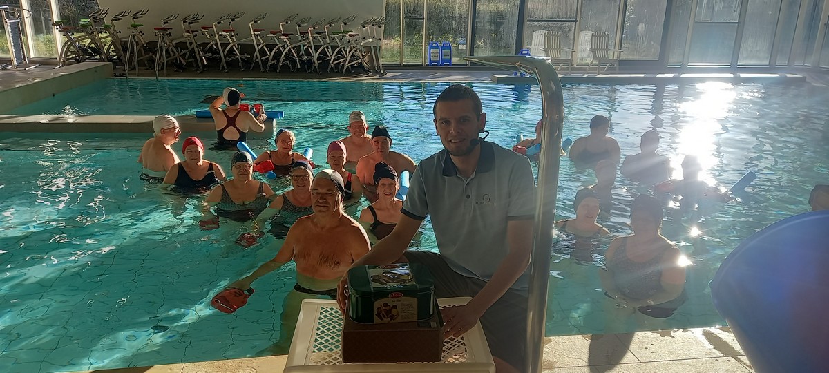 C’est avec un beau soleil et de grands sourires que le groupe d’aquagym du lundi a remis à son dynamique moniteur Géraud des étrennes gourmandes. Nul doute qu’il pourra les apprécier et les partager avec sa famille ou ses amis.