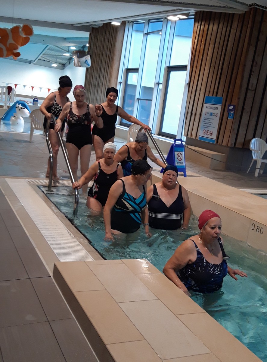 Après les agapes de fin d’année, ce jeudi : reprise de notre cours d’aquagym. Malgré une douzaine de malades, nous sommes tout de même une bonne vingtaine à retrouver notre moniteur, le bassin et l’eau bien chaude. Echange de vœux chaleureux ; en remerciement de nous faire bien travailler dans la bonne humeur, nous avons remis un cadeau à notre coach. Plaisir de se retrouver pour entamer le deuxième trimestre où les nouveaux exercices sont bien appréciés, car on est prévenus : après la bûche, ce sont les galettes, crêpes et beignets qui arrivent … alors, au boulot !