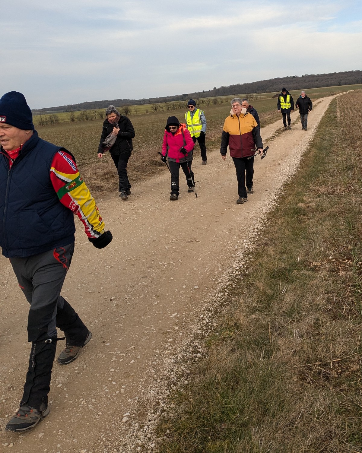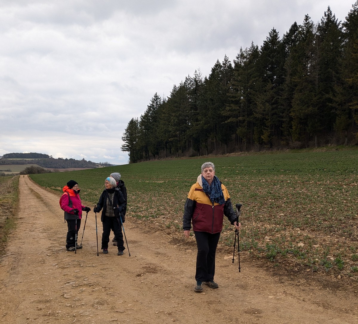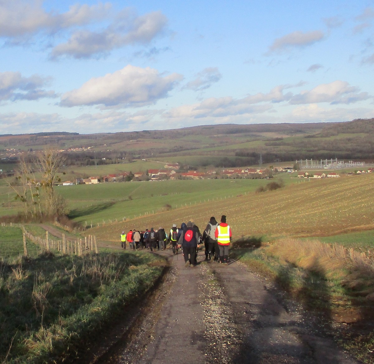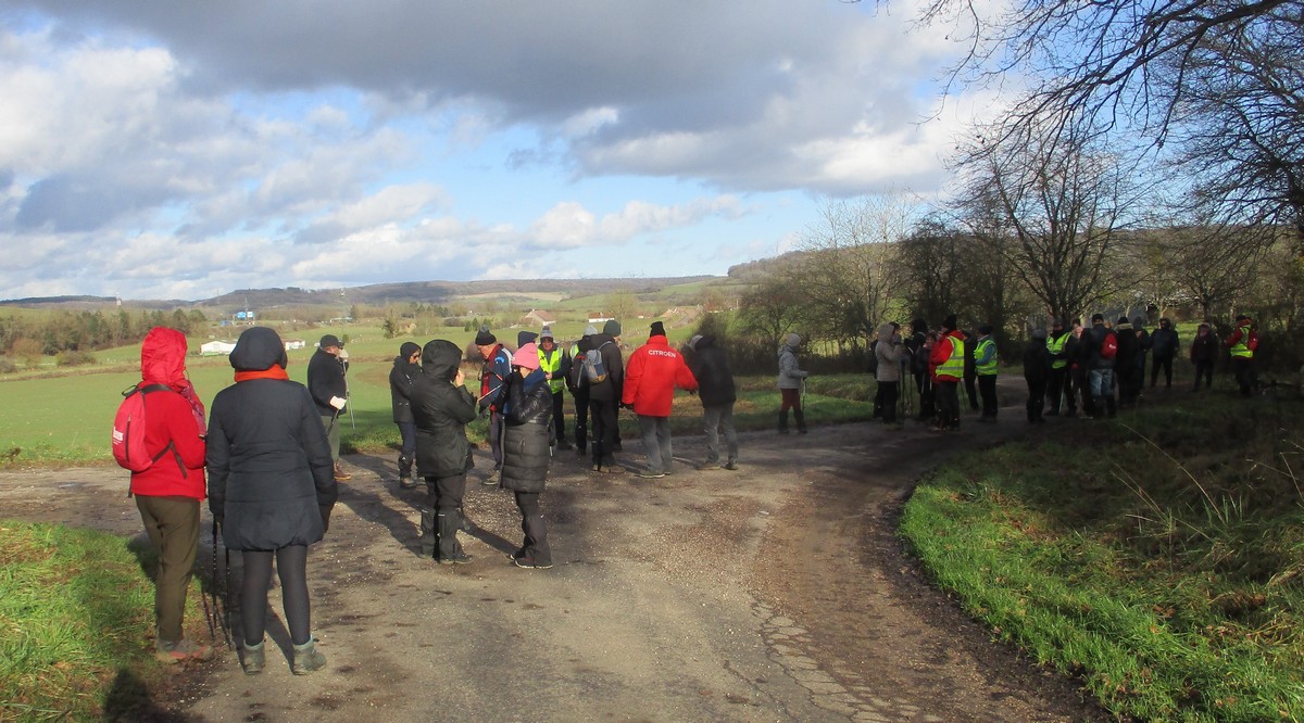 RDV au terrain de foot de Chassigny, non pas pour taper au ballon, mais bien pour une randonnée de 10,5 kms avec notre petite vingtaine de marcheurs et dans la bonne humeur. Le soleil est bien là, et ça fait du bien. Durant cette marche, en partie dans les plaines de Chassigny aux quatre vents, nous supportons nos bonnets ainsi que nos gants. Ensuite un petit passage dans un bois bien « gouillasseux », nous sommes habitués, puis retour à nos limousines. Bonnes vacances à toutes et tous.