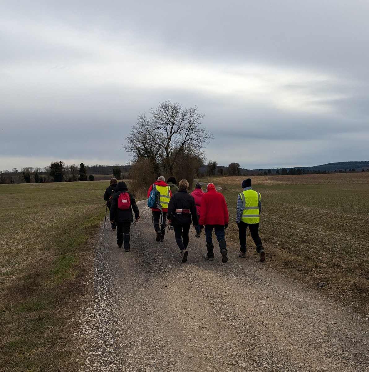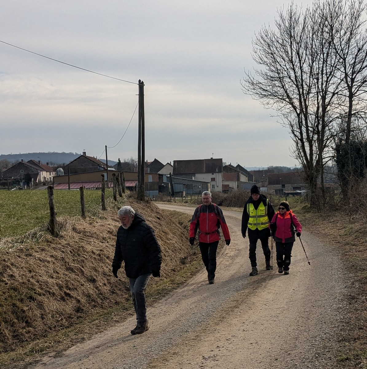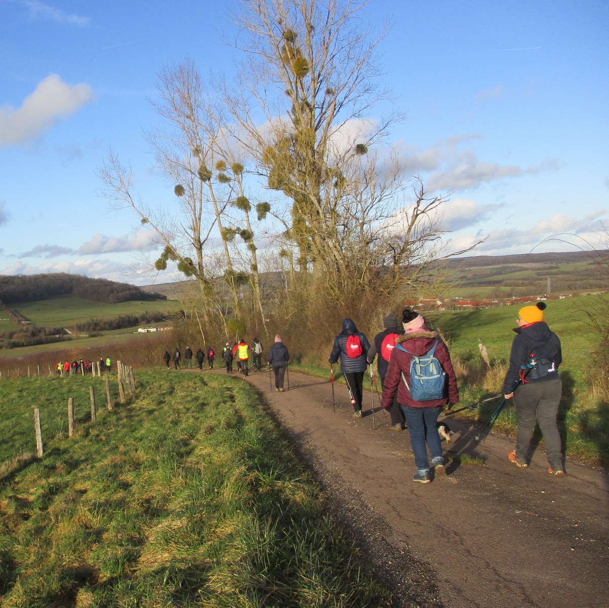 RDV au terrain de foot de Chassigny, non pas pour taper au ballon, mais bien pour une randonnée de 10,5 kms avec notre petite vingtaine de marcheurs et dans la bonne humeur. Le soleil est bien là, et ça fait du bien. Durant cette marche, en partie dans les plaines de Chassigny aux quatre vents, nous supportons nos bonnets ainsi que nos gants. Ensuite un petit passage dans un bois bien « gouillasseux », nous sommes habitués, puis retour à nos limousines. Bonnes vacances à toutes et tous.