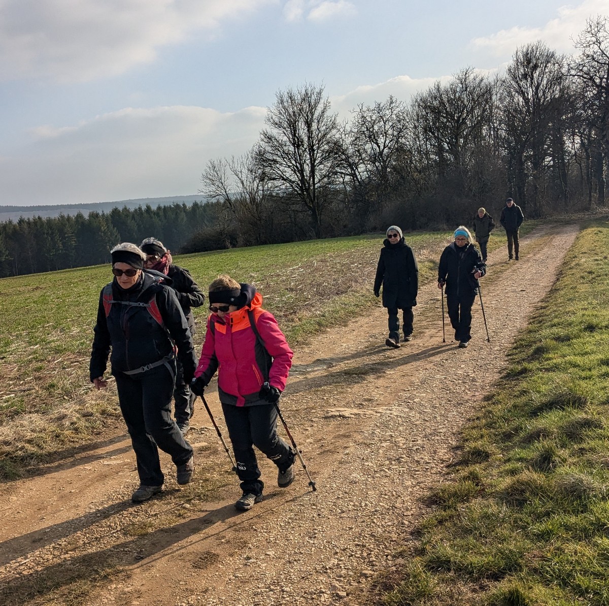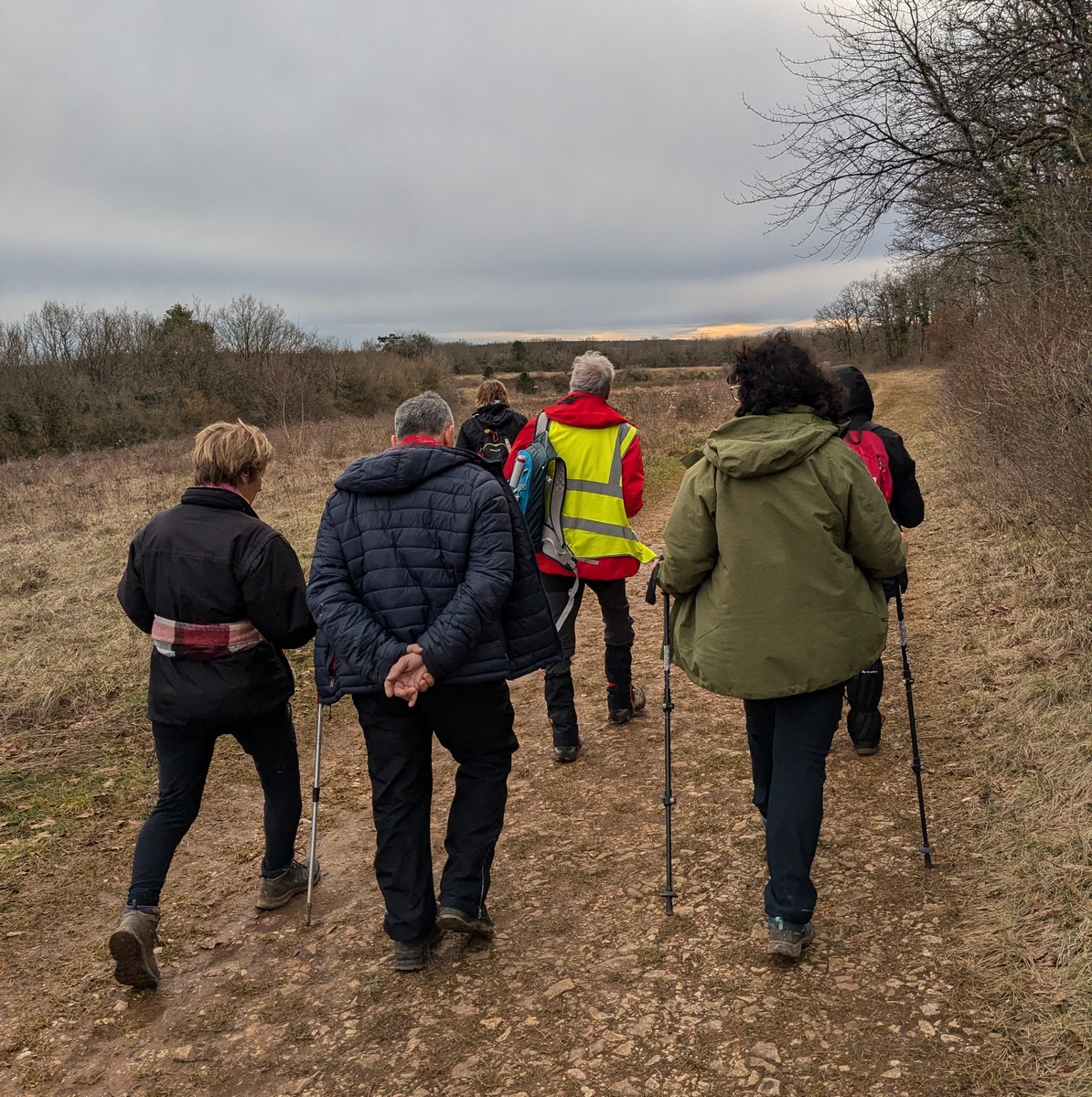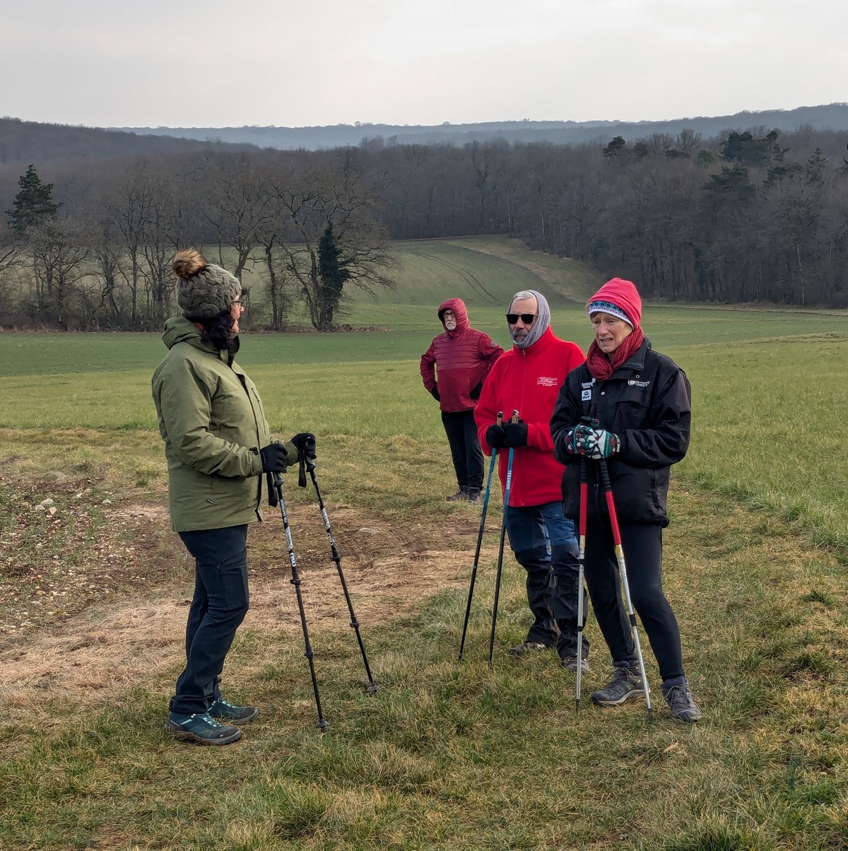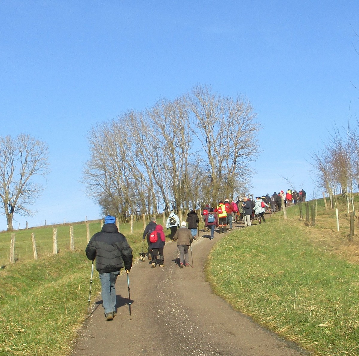RDV au terrain de foot de Chassigny, non pas pour taper au ballon, mais bien pour une randonnée de 10,5 kms avec notre petite vingtaine de marcheurs et dans la bonne humeur. Le soleil est bien là, et ça fait du bien. Durant cette marche, en partie dans les plaines de Chassigny aux quatre vents, nous supportons nos bonnets ainsi que nos gants. Ensuite un petit passage dans un bois bien « gouillasseux », nous sommes habitués, puis retour à nos limousines. Bonnes vacances à toutes et tous.