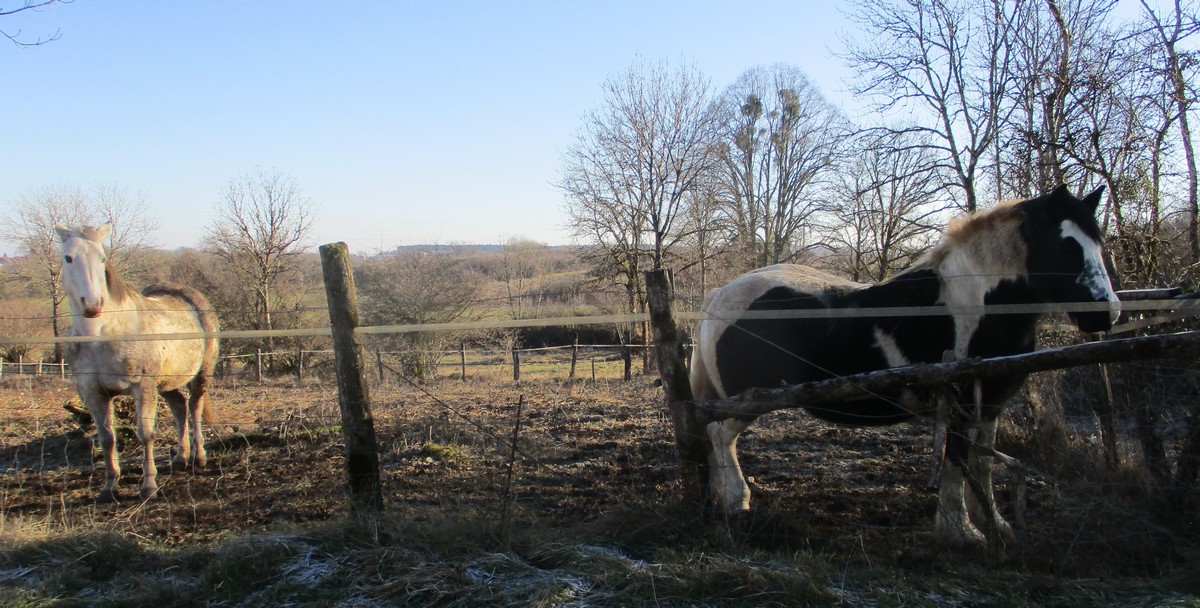 Quel soleil radieux, quel ciel bleu, quel temps magnifique pour sortir et aller marcher. Nous avons rendez-vous à Mardor pour 14h00. Ayant regardé google avant de partir, 2 itinéraires sont affichés pour s’y rendre : le 1er par Beauchemin et le 2ème par Vieux-Moulins. Venant de Sts-Geosmes, il m’était plus facile de passer par le second, sauf que le cheminement à l’écran était différent de la réalité du terrain. C’est ce qui nous a valu d’arriver à destination avec un peu … beaucoup de retard. On aura prétexté toutes les excuses possibles, à savoir : un convoi exceptionnel, une manif des gilets jaunes, une route glissante le jour de mardi gras et j’en passe… Personne ne nous a cru et c’est ce qui nous a valu une huée de la part des autres marcheurs. Nous sommes quand même entre quarante et cinquante à s’élancer pour une petite marche de 6 kms dans la plaine sans grand dénivelé. Seule curiosité : le bassin de rétention de digestat provenant du méthaniseur proche, qui permet aux agriculteurs de prélever et répandre le compost sur leurs exploitations. En arrivant au village, on a cru être arrivés au paradis ! Mais il paraît que l’enfer est dans le pays voisin, alors montons vite dans nos voitures et rentrons chez nous … par la bonne route cette fois-ci !