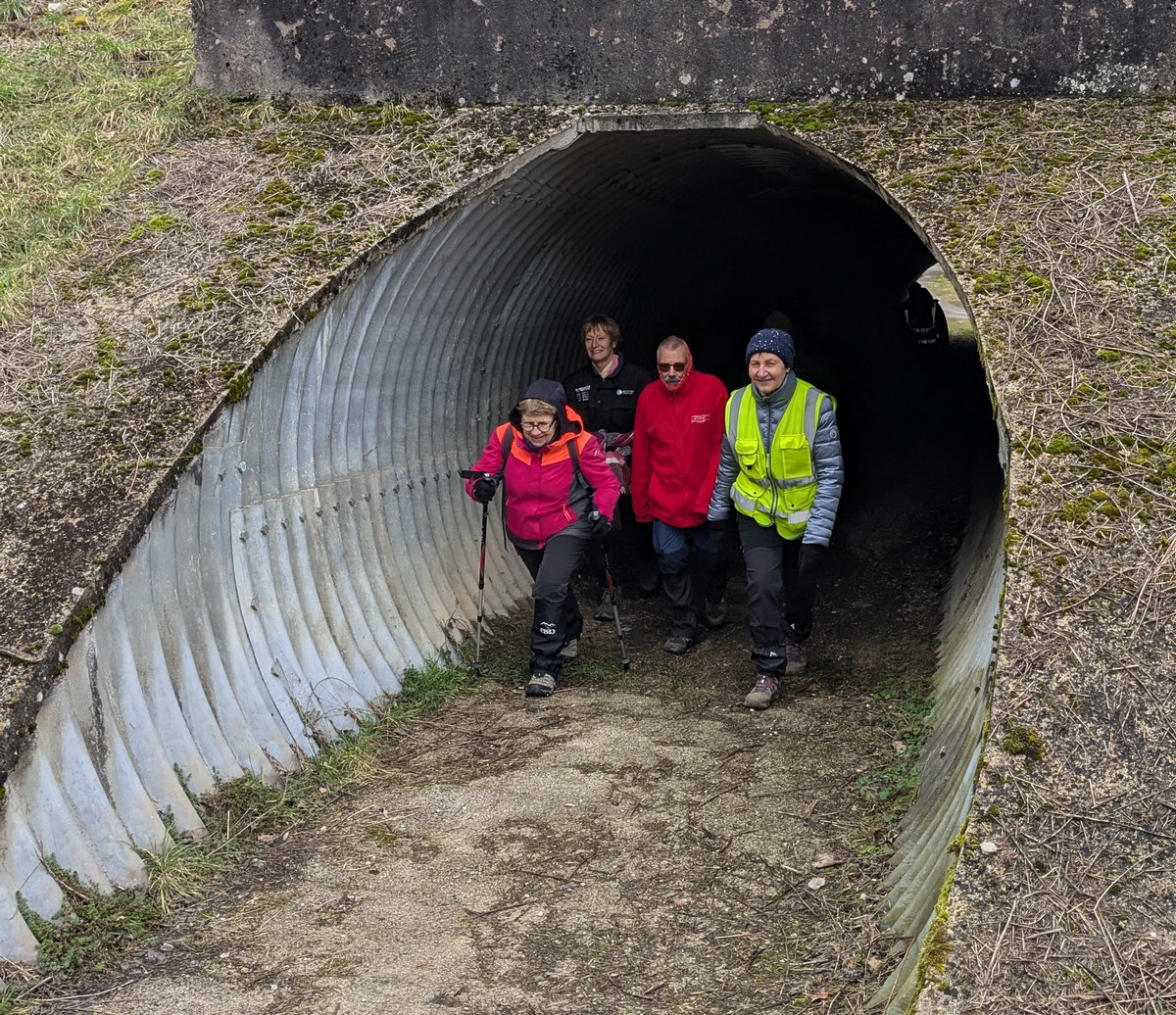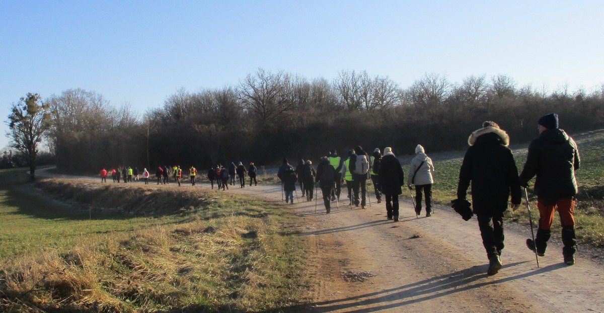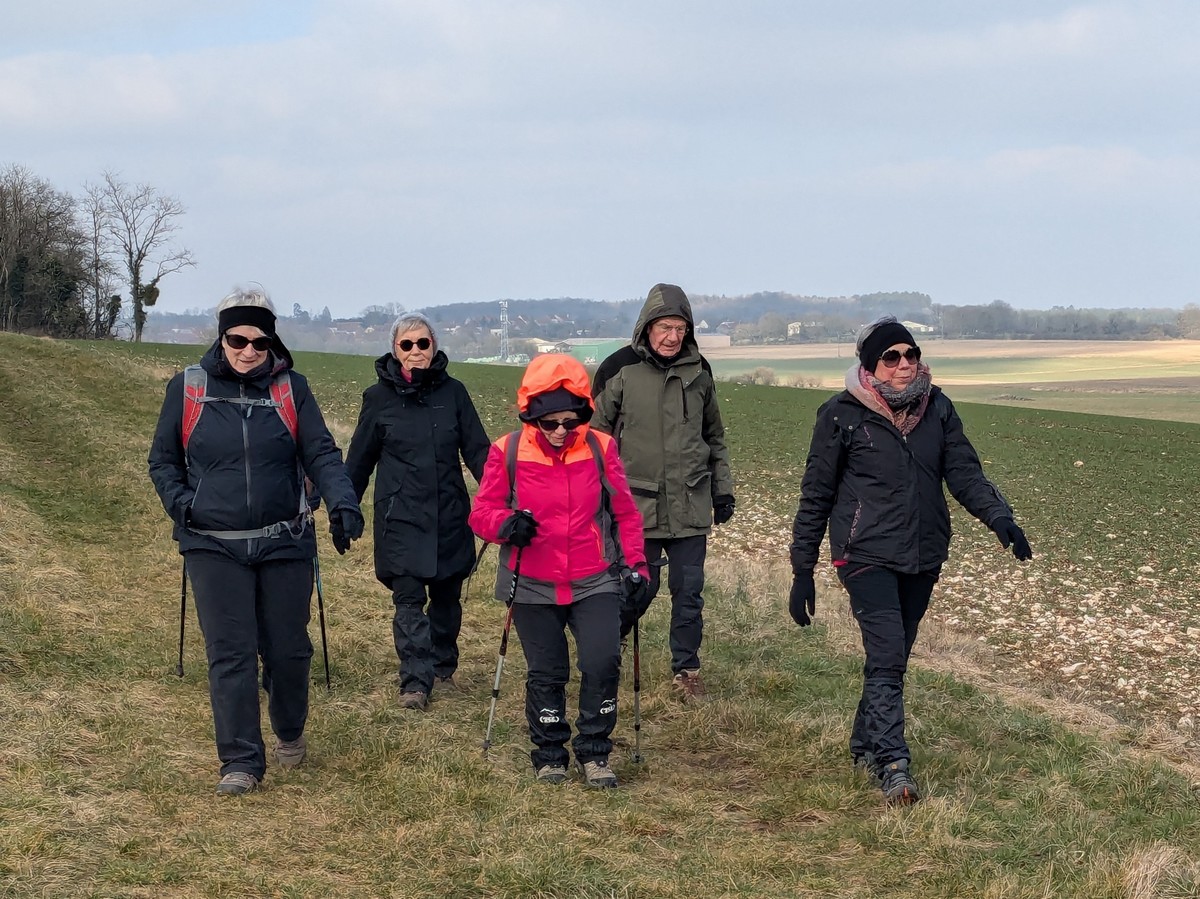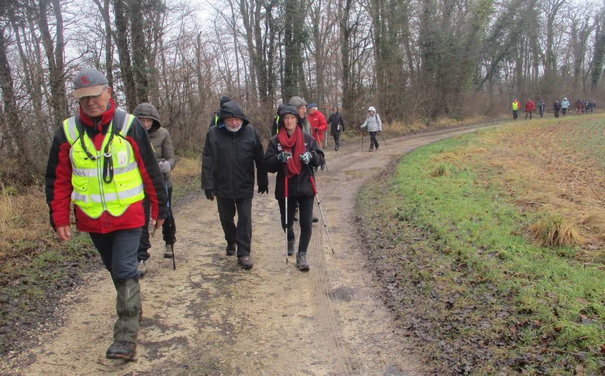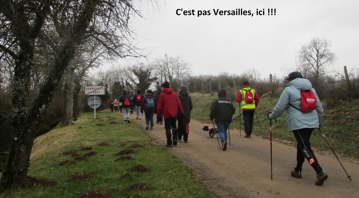 Nous sommes une petite vingtaine au départ de Vesaignes, la température est de 8°. Nous prenons la direction de Marnay-sur-Marne en longeant le canal pour reprendre un tunnel. S’en suit une côte avant l’entrée du village, puis pose photos devant le lavoir de la Potesse. Nous repartons pour une longue montée afin de rejoindre la plaine avec une magnifique vue dominant la vallée de la Marne. Ensuite une descente dans le bois ou l’on peut apercevoir les cabanes insolites du domaine du Moulin de Trimeule. Pour finir, petit passage scabreux de façon à attaquer la dernière montée et redescendre sur Vesaignes, soit 9,8 kms.