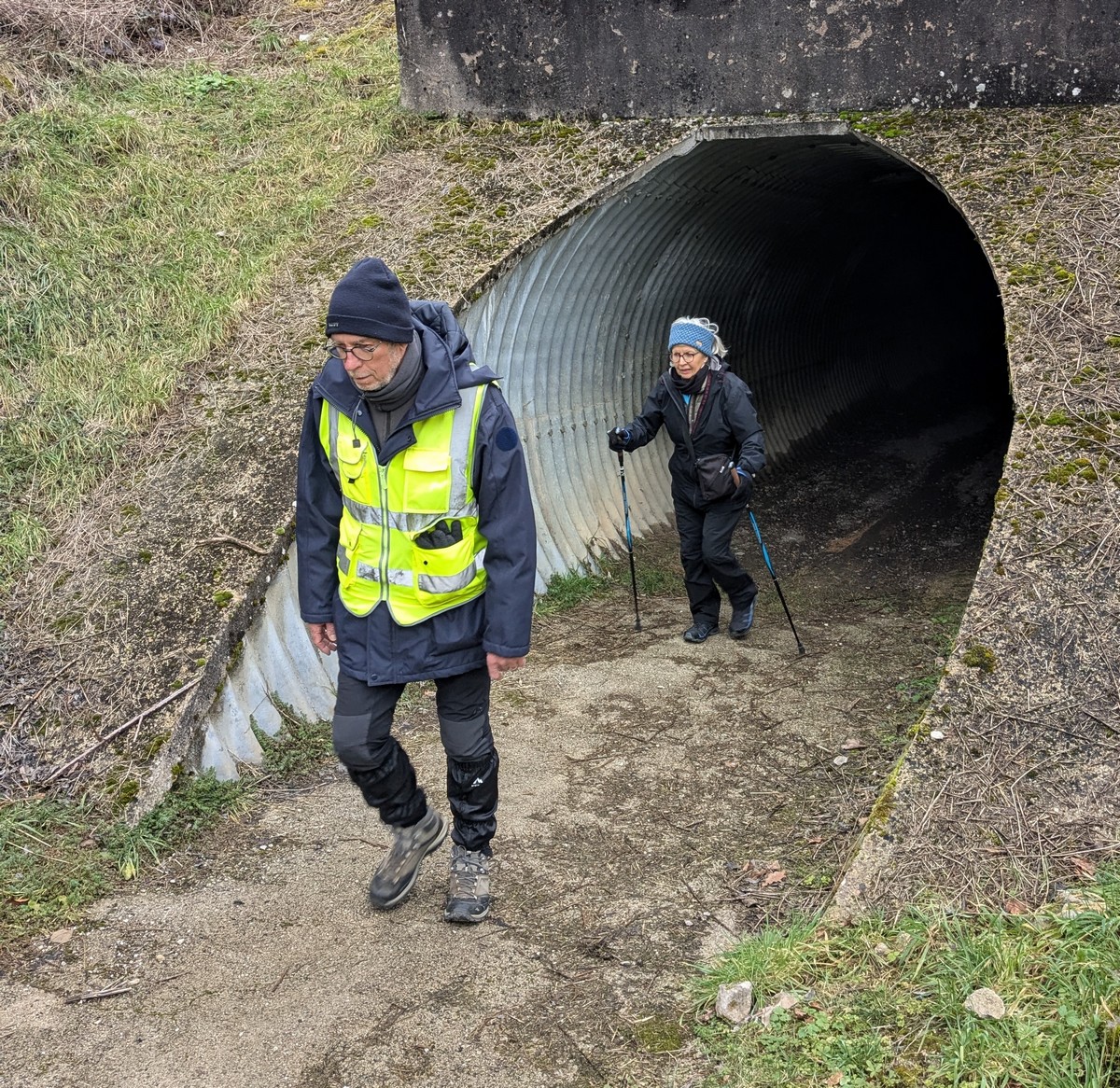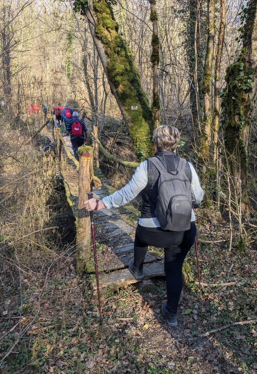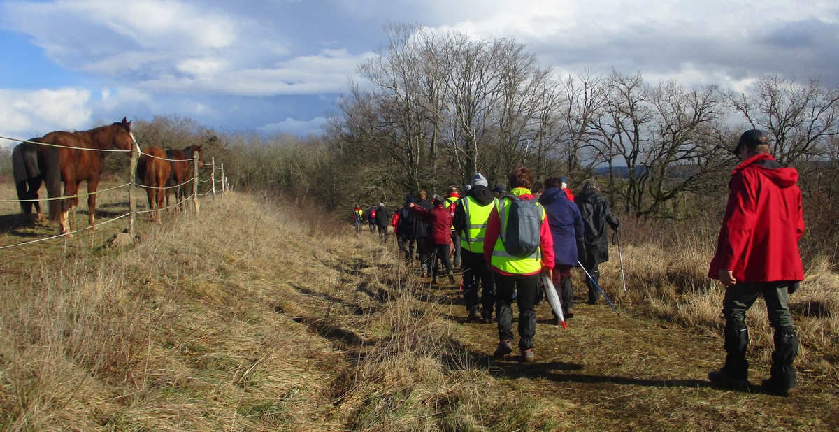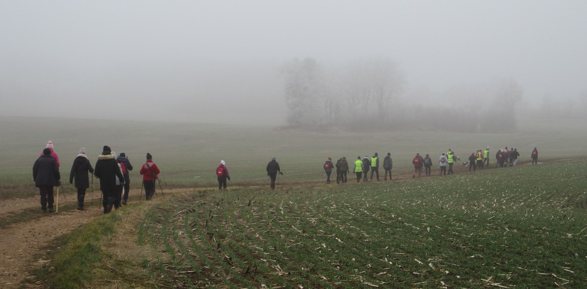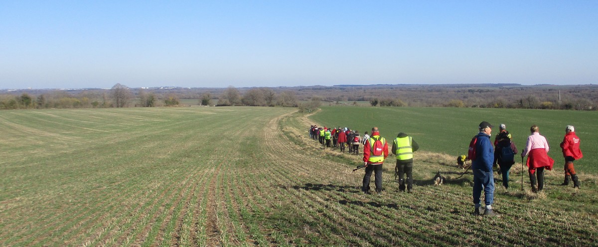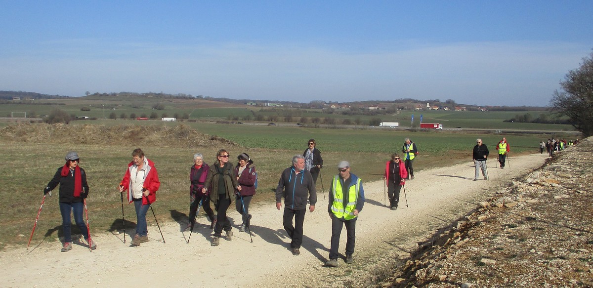 Nous sommes une petite vingtaine au départ de Vesaignes, la température est de 8°. Nous prenons la direction de Marnay-sur-Marne en longeant le canal pour reprendre un tunnel. S’en suit une côte avant l’entrée du village, puis pose photos devant le lavoir de la Potesse. Nous repartons pour une longue montée afin de rejoindre la plaine avec une magnifique vue dominant la vallée de la Marne. Ensuite une descente dans le bois ou l’on peut apercevoir les cabanes insolites du domaine du Moulin de Trimeule. Pour finir, petit passage scabreux de façon à attaquer la dernière montée et redescendre sur Vesaignes, soit 9,8 kms.