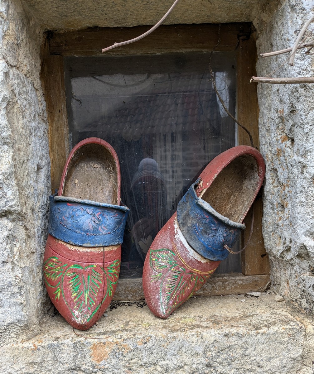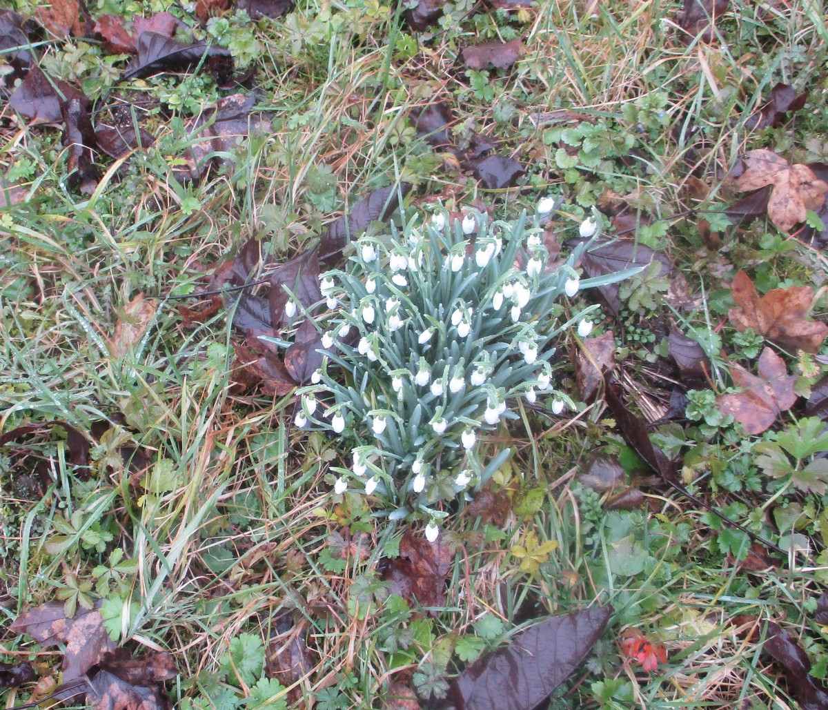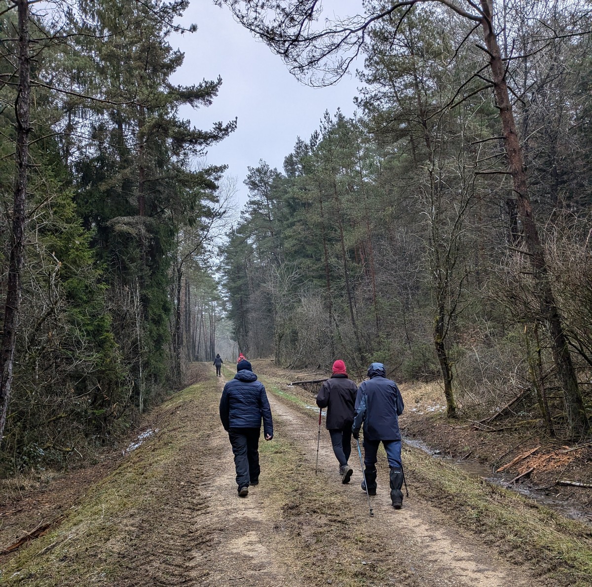Que d’eau, que d’eau ! Mais rien n’arrête la vingtaine de marcheurs du club venus, non pas pour chanter l’In-Ternat-ionale, mais pour se mouiller pour la dernière du mardi avant les vacances. Dans ce circuit en grande partie boisé et long de 6 kms, on al-Ternat entre monts et vaux, entre chemins et routes, avec en prime quelques épisodes légèrement gouillasseux. Seules particularités rencontrées : des becs de canard sur la fontaine au pied de l’Eglise, un gros miroir à selfie que j’ai testé, des ruches colorées, quelques balles rondes patriotes, un abri tôlé pour faire une halte et cons-Ternat-ion : des perce-neiges qui commencent à fleurir.