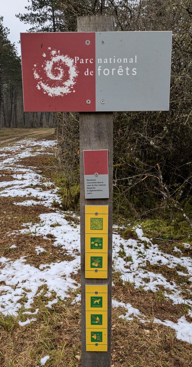 Pour la dernière marche du cœur du 2ème trimestre de la saison 24-25, nous sommes moins d’une quarantaine à s’être déplacés au pays de la Peûte Bête, bien connue du côté d’Aujeurres. La météo n’est pas au beau fixe, mais douce pour la saison avec un ciel couvert au départ en direction de la Forêt de Formont. Cette dernière fait partie de la Forêt Domaniale d’Auberive en plein cœur du Parc National des Forêts ; Violette et Bingo sont encore privés de pouvoir gambader en toute liberté. Après avoir suivi la route forestière, droite comme un I, nous nous enfonçons dans une tranche où nous rencontrons quelques portions de chemins gouillasseux, mais sans crotter nos godillots. Nous sortons du bois jusqu’à revenir sur la route en direction du village. En route, nous nous arrêtons devant le porche de la « Chapelle St-Georges » où nous posons pour la photo. Encore un petit effort et nous atteignons l’entrée d’Aujeurres jusqu’au pied de l’Eglise où nos voitures nous attendent. A ce propos, Aujeurres d’hiver va passer Aujeurres d’été dimanche !