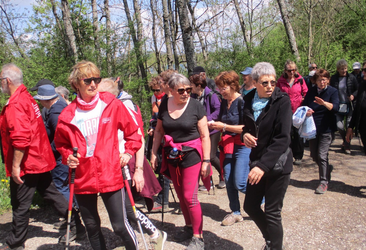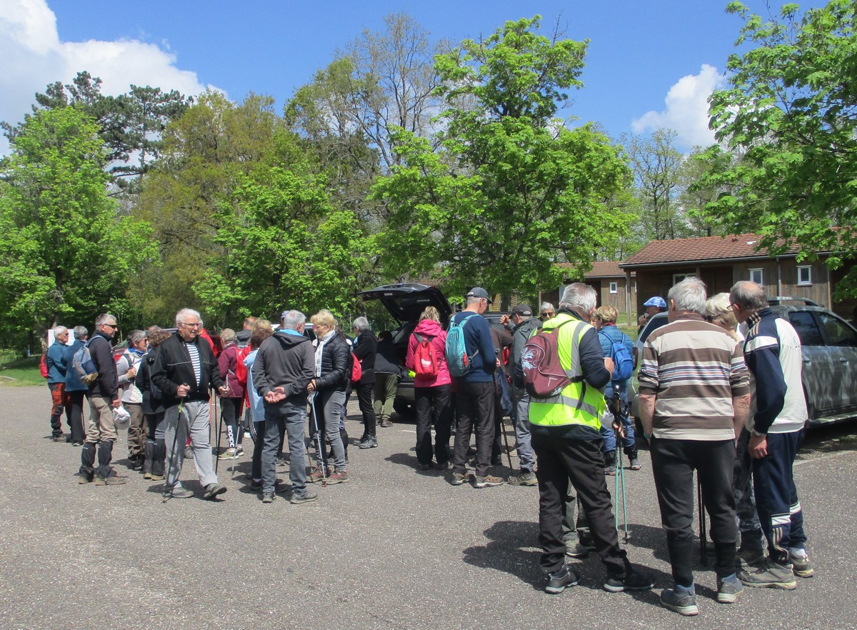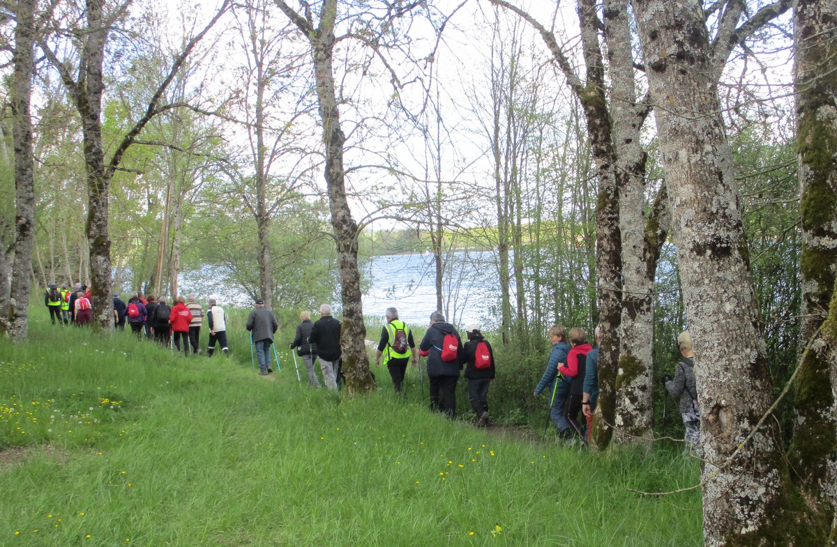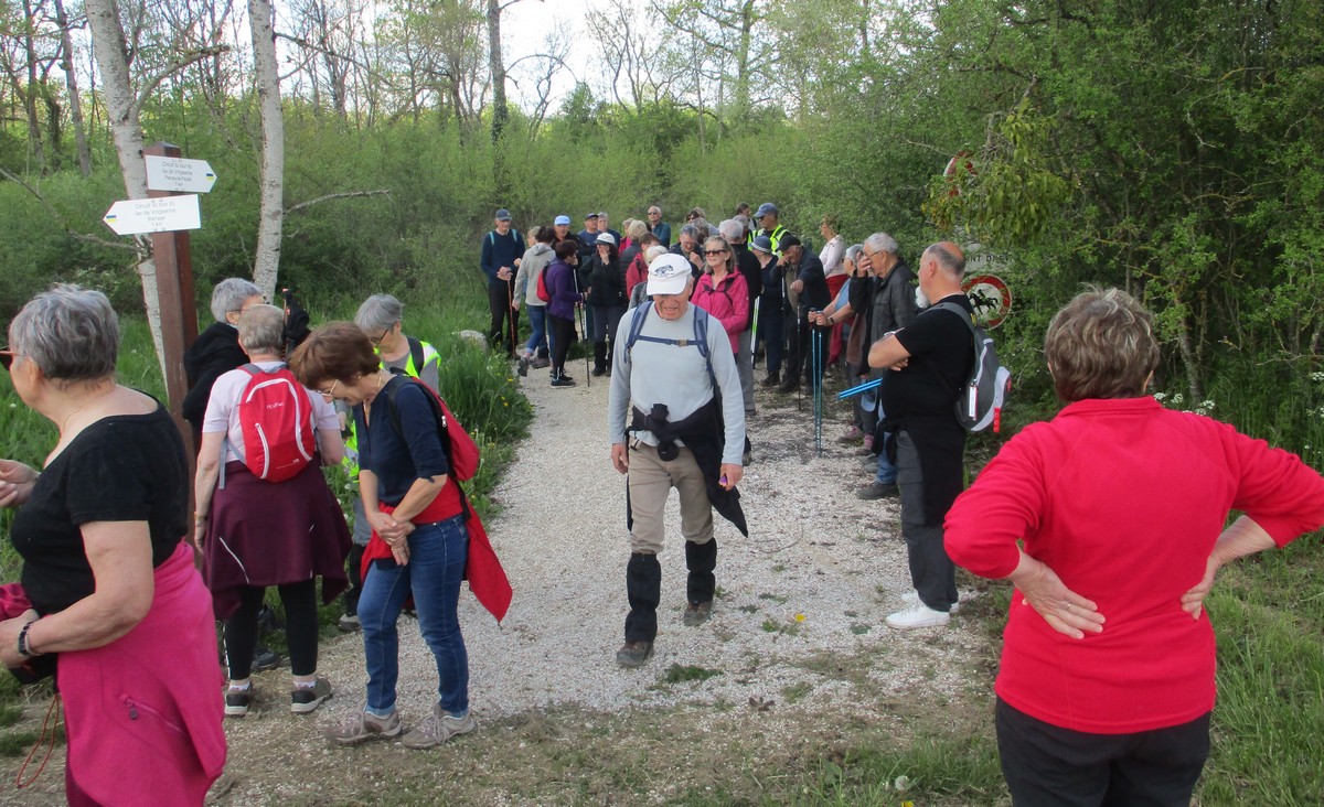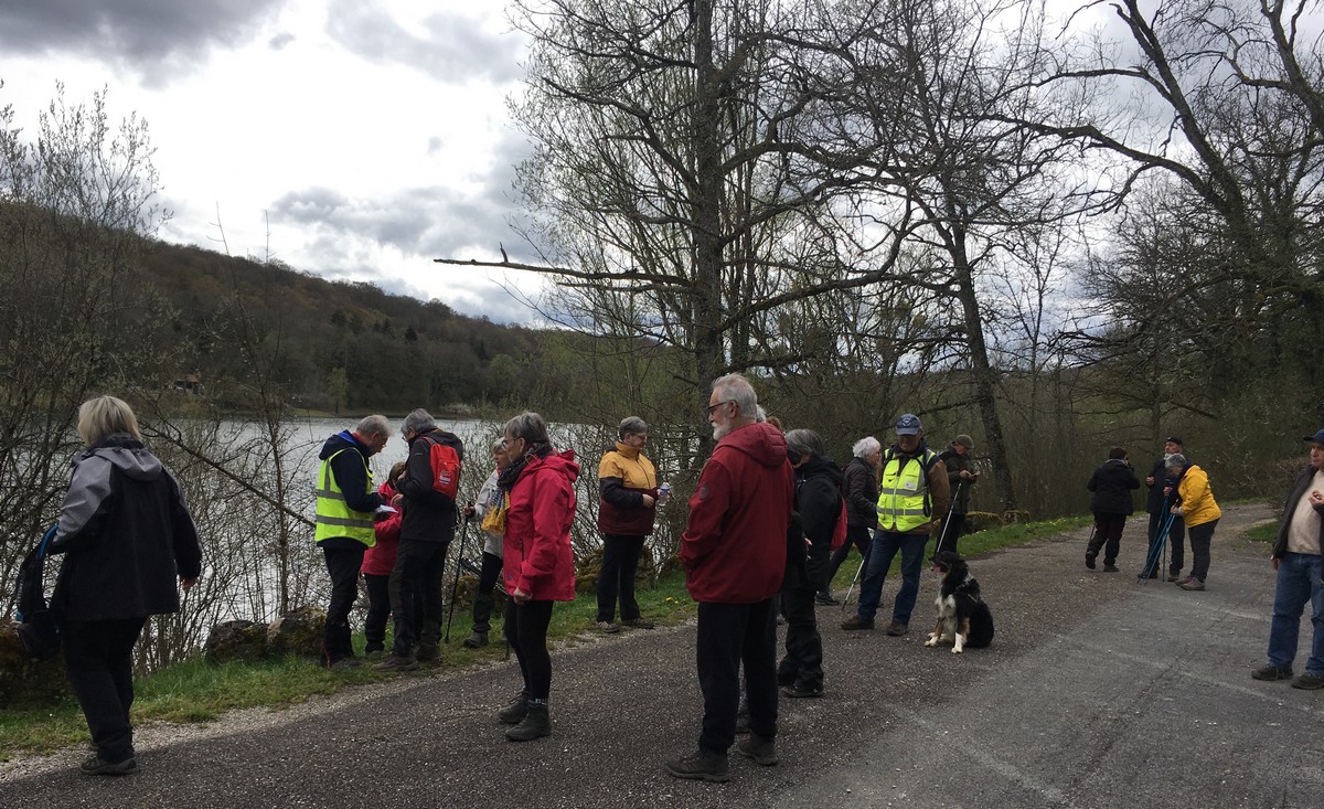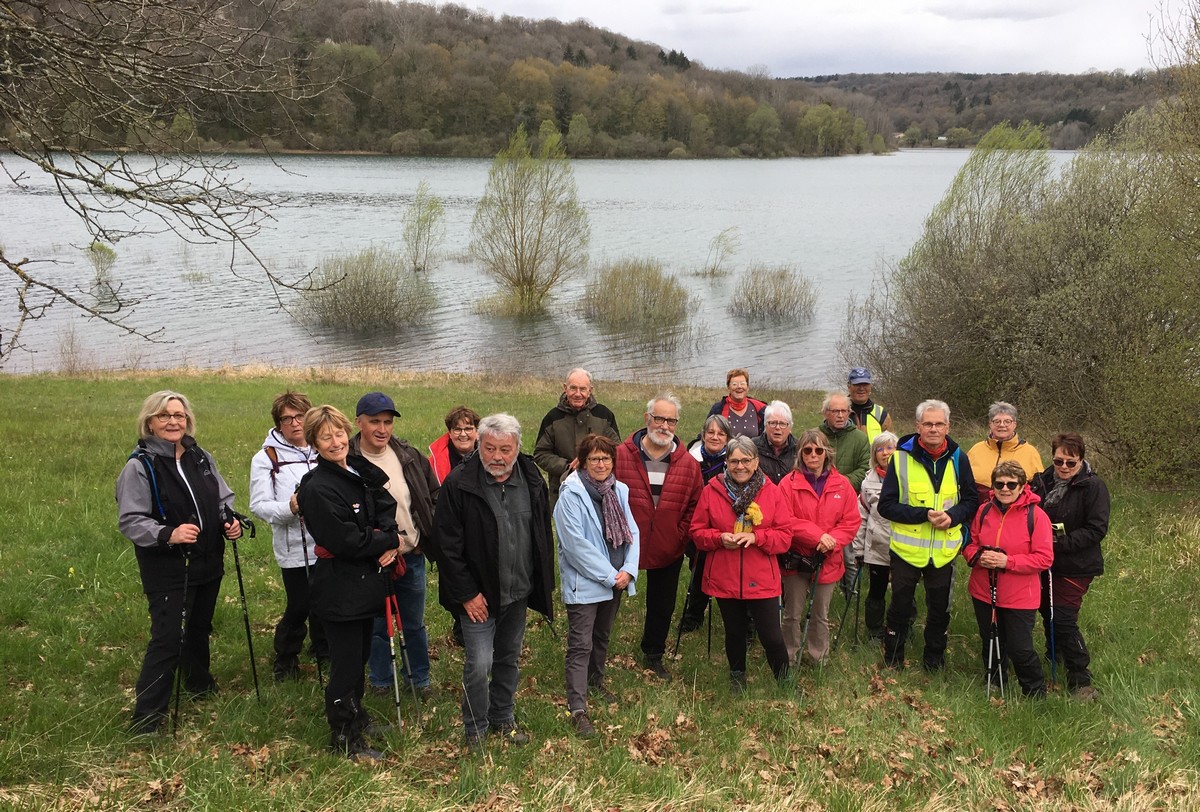 En mai, fait ce qu’il te plait ! Et bien en ce mardi de reprise, près d’une cinquantaine de valeureux marcheurs s’est plu à venir faire le petit tour du lac de la Vingeanne avec en prime le soleil et la douceur printanière tant attendus. Beaucoup se racontent leur emploi du temps de la semaine passée tout en démarrant la marche, laquelle ne présente pas de difficulté particulière à part éviter les passages encore humides. La traversée du pont se fait sous un soleil radieux, on aperçoit même un nid rempli d’œufs dans les roseaux, mais à qui sont-ils ? Vu aussi un pêcheur équipé pro en plein milieu du lac et qui attend que ça morde. Pas facile non plus de faire rentrer tout le monde dans l’appareil photo lors de la pose. Nombre d’arbres tombés suite aux vents forts jonchent le sentier provoquant quelques acrobaties pour les enjamber. Le lavoir du village est à sec cette année. Une dernière photo de groupe à l’arrivée et nous rejoignons nos voitures en se disant à la prochaine !