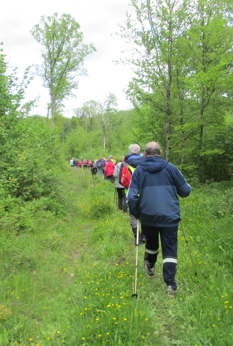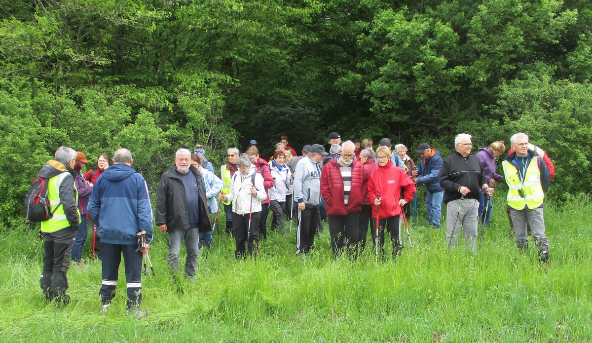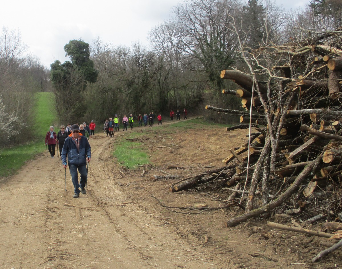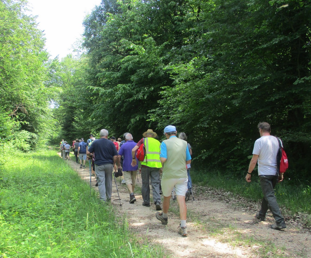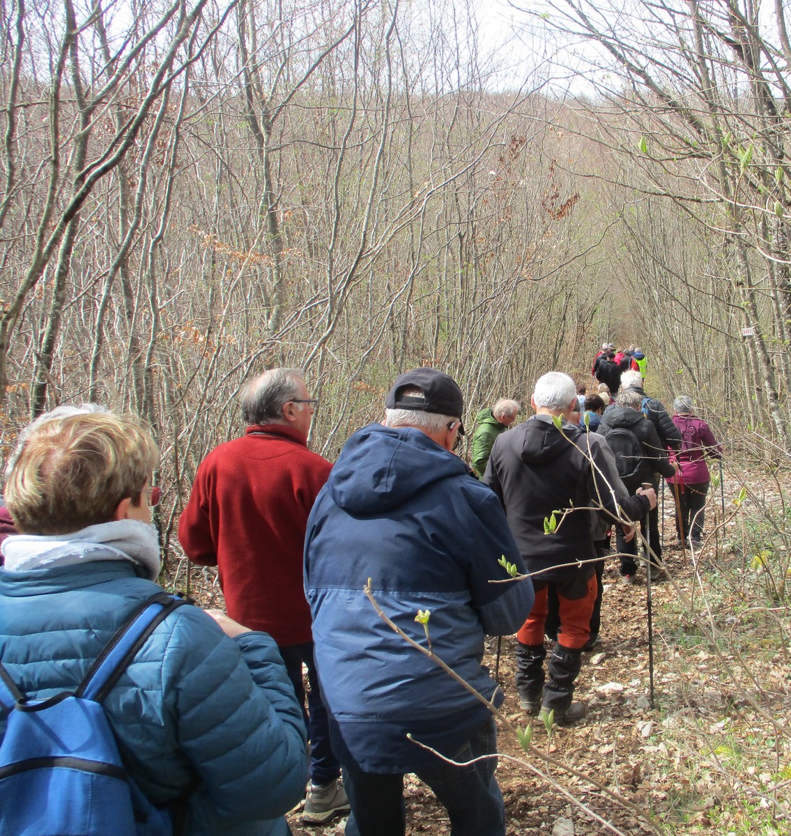 Aujourd’hui 11 avril, nous étions quasi 4 x 11 adhérents à s’être déplacés pour affronter le bois de Voisines. Tout d’abord, après avoir été soutenu par un troupeau de bovins, il a fallu monter pour rentrer dans la forêt. Un instant recueillement au Maquis, là où des jeunes résistants ont été fusillés par les allemands suite à dénonciation, avec récit de l’évènement raconté par Bernard. Puis ce fut le calvaire pour nos mollets qui ont dû enjamber les branches laissées sur place et qui obstruaient les chemins. On a réussi à faire une photo lors du passage du groupe dans une clairière. Mais nous avons eu quand même de la chance : pas de pluie, ciel nuageux avec de temps en temps un rayon de soleil.