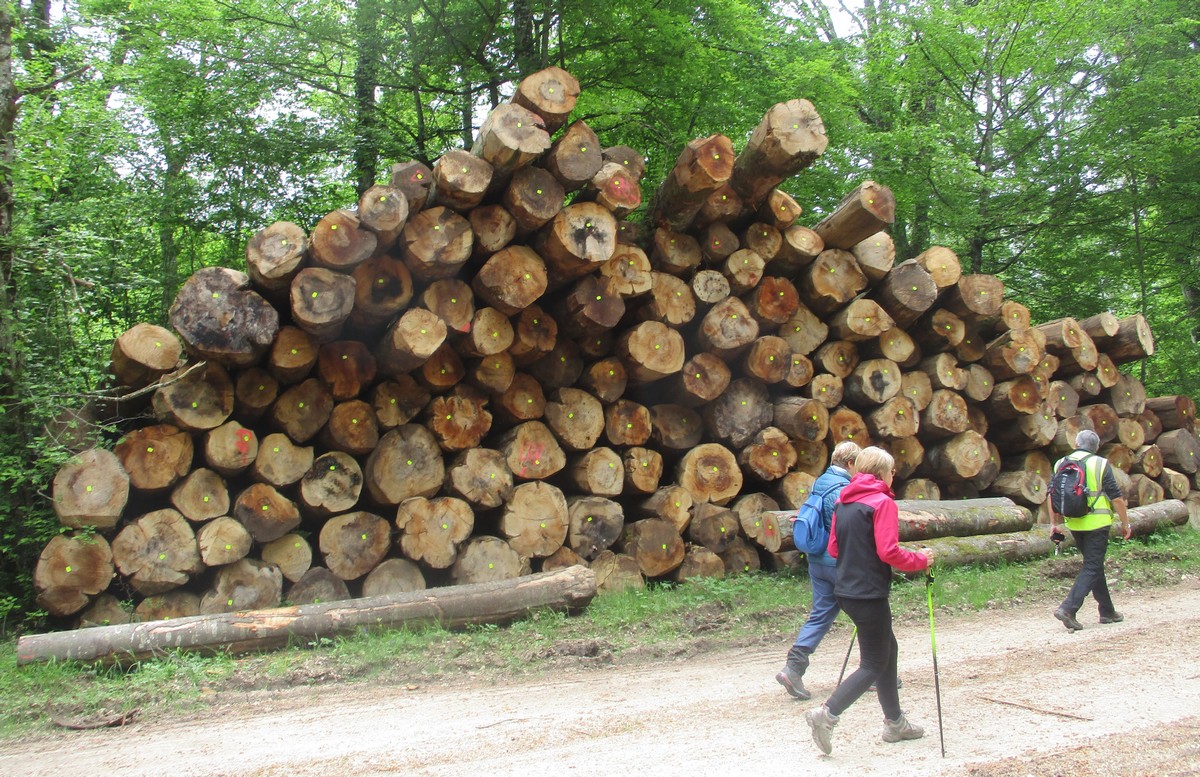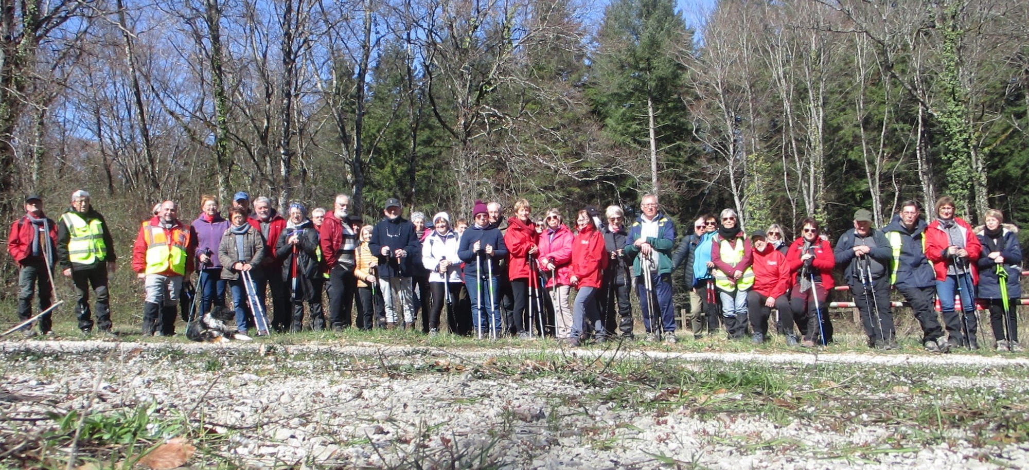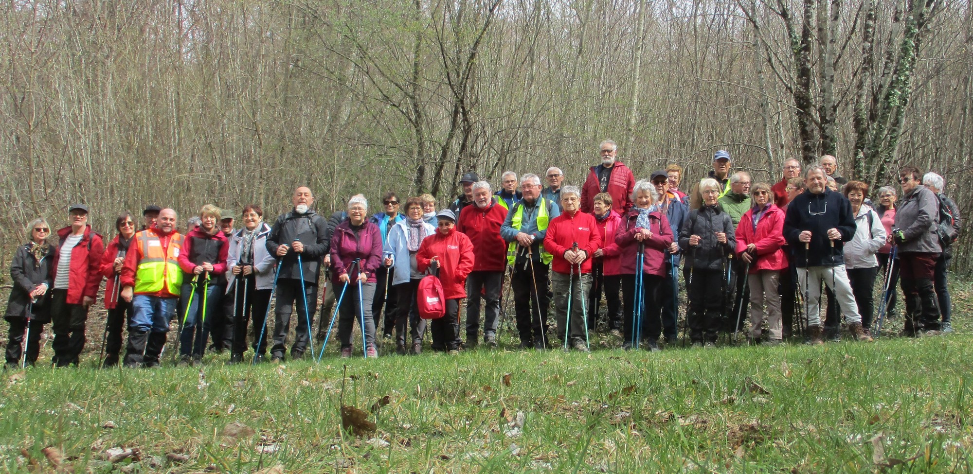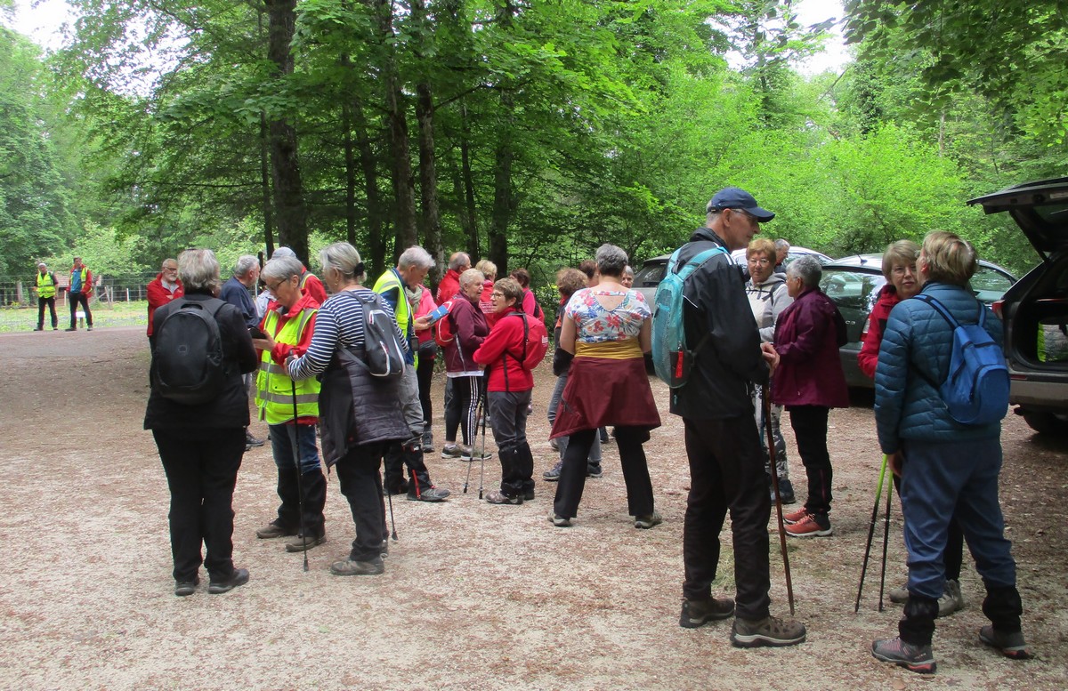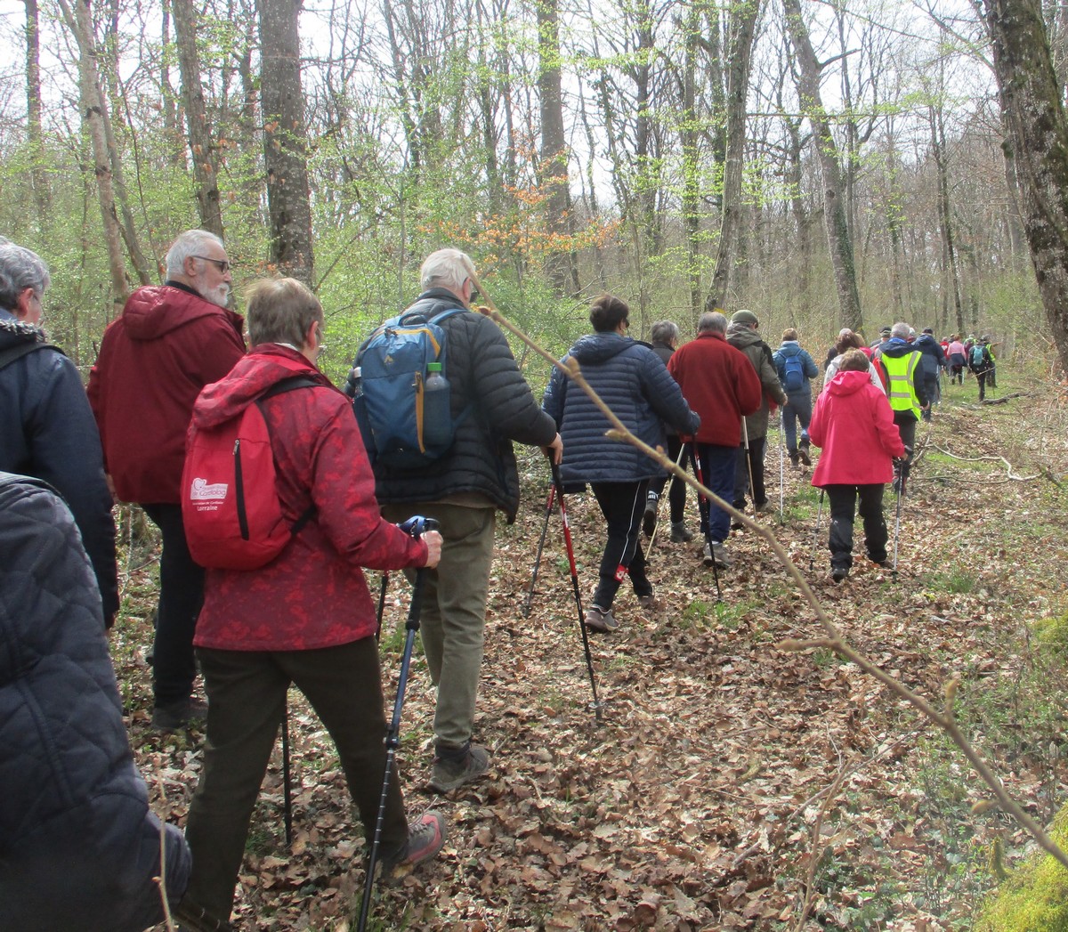 Aujourd’hui 11 avril, nous étions quasi 4 x 11 adhérents à s’être déplacés pour affronter le bois de Voisines. Tout d’abord, après avoir été soutenu par un troupeau de bovins, il a fallu monter pour rentrer dans la forêt. Un instant recueillement au Maquis, là où des jeunes résistants ont été fusillés par les allemands suite à dénonciation, avec récit de l’évènement raconté par Bernard. Puis ce fut le calvaire pour nos mollets qui ont dû enjamber les branches laissées sur place et qui obstruaient les chemins. On a réussi à faire une photo lors du passage du groupe dans une clairière. Mais nous avons eu quand même de la chance : pas de pluie, ciel nuageux avec de temps en temps un rayon de soleil.
