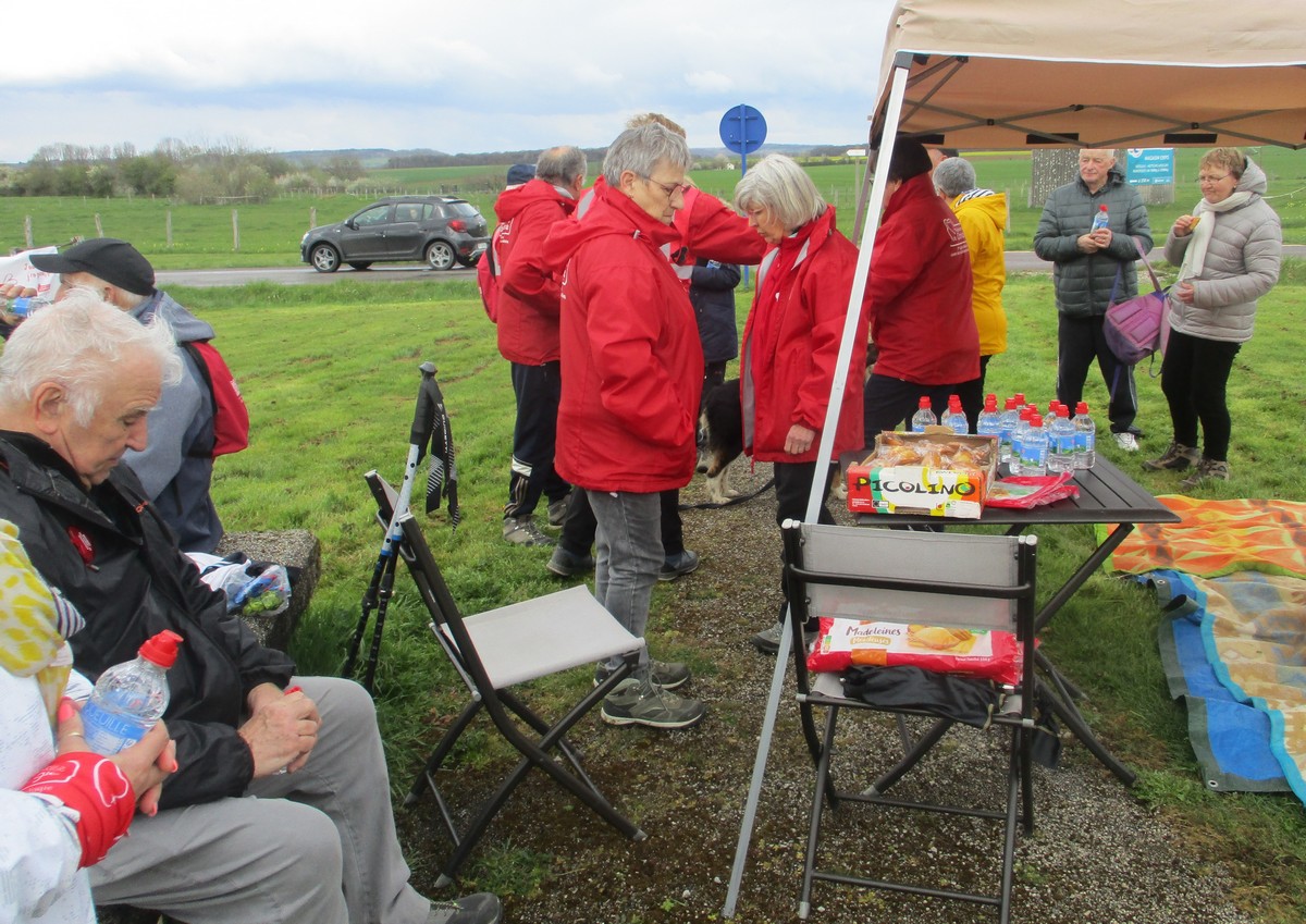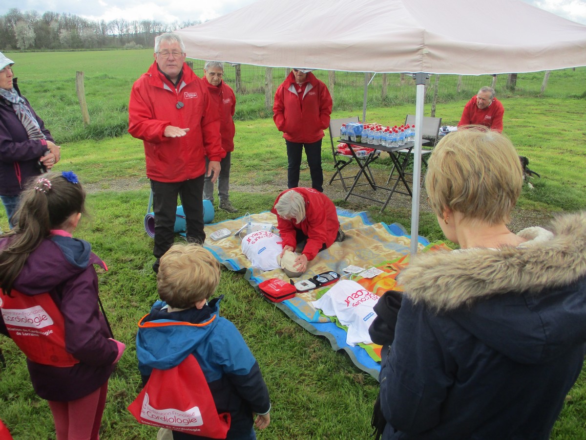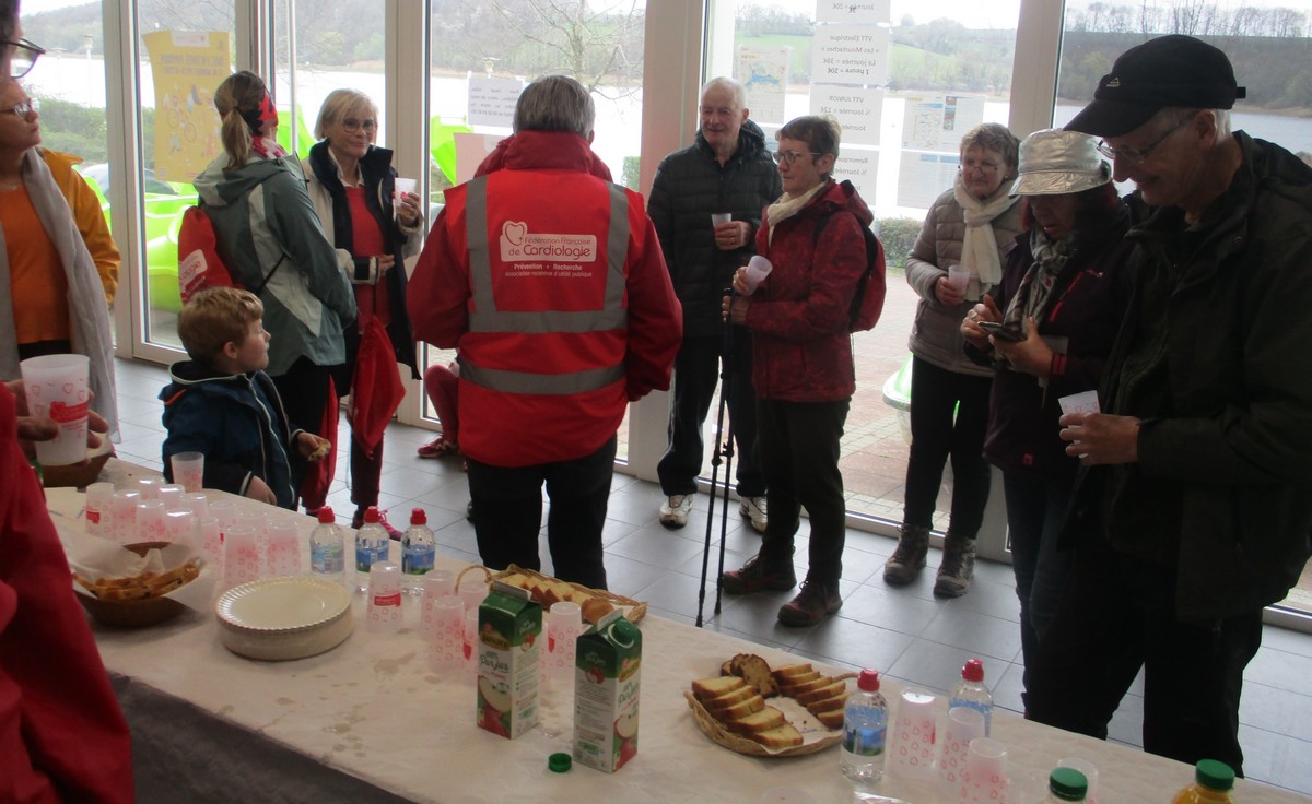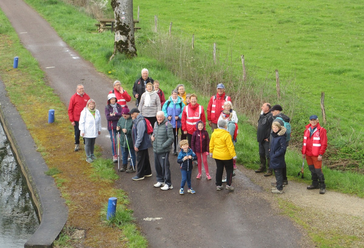 Vu le temps qu’il nous annonçait ce samedi après-midi, à part une petite pluie fine qui n’a duré que quelques minutes lorsque nous longions le canal, nous avons été préservé ; on a même eu un rayon de soleil qui nous a réchauffé le cœur. Dommage que certains adhérents n’ont pas pu participer aux parcours du cœur proposés cette année. Nelly s’est exprimée à tous, juchée sur un pédalo, avant le départ. Chacun pouvait choisir le circuit qui lui convenait, à savoir : un petit de presque 6 kms qui emmène au village de Peigney en passant par le canal avec retour par la ferme d’Angoulevent et un grand de plus de 10kms qui longe la Liez côté nord jusqu’à rejoindre la stratégique qui ramène au point de départ. Le point commun aux deux circuits était une pause à proximité d’un calvaire où le responsable des marches avait installé un barnum ainsi que les accessoires indispensables pour rappeler les gestes qui sauvent, à savoir : la respiration artificielle et l’emploi du défibrilateur. Un petit ravitaillement était offert à l’issue. Ils étaient une bonne vingtaine de participants pour faire le petit circuit et une bonne trentaine pour le grand circuit. Une collation était offerte à la fin par le club à chacun des valeureux marcheurs.