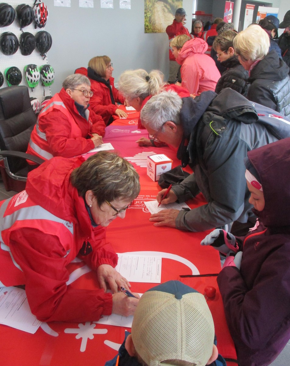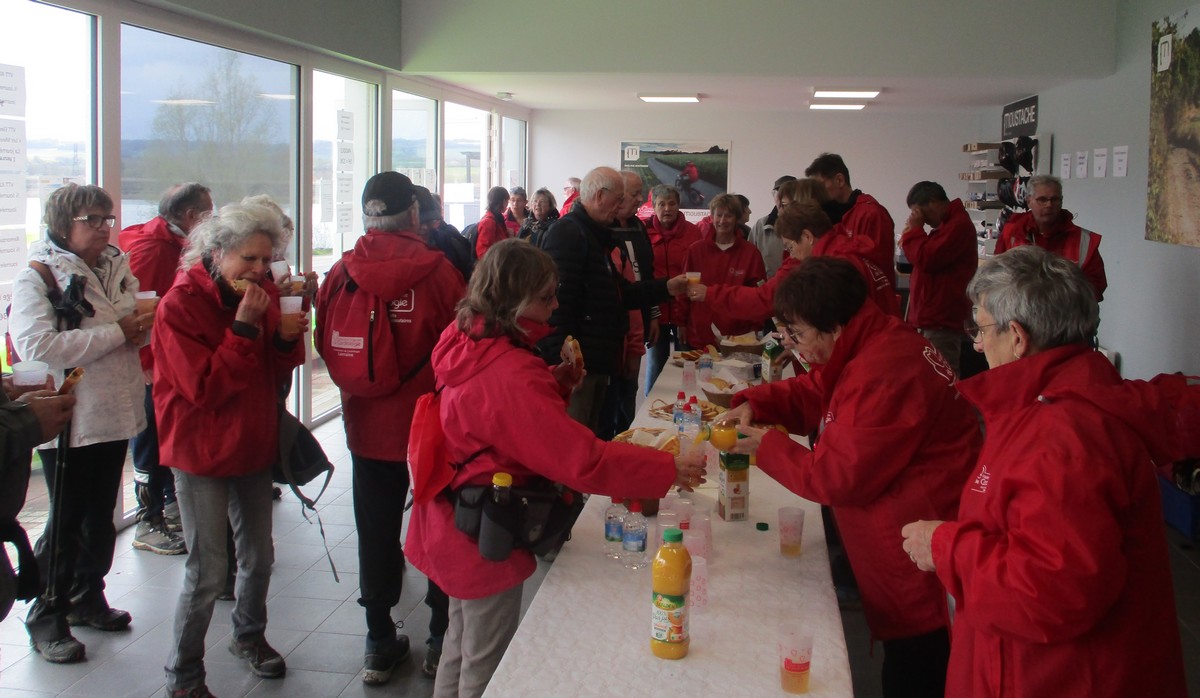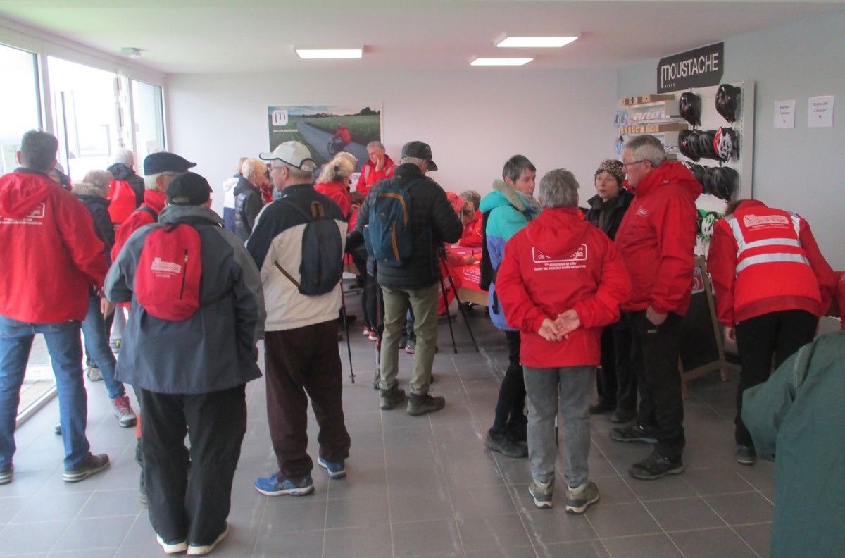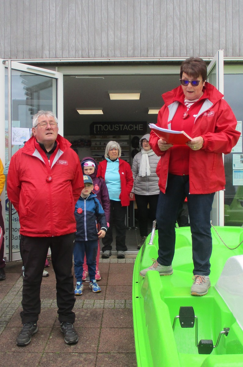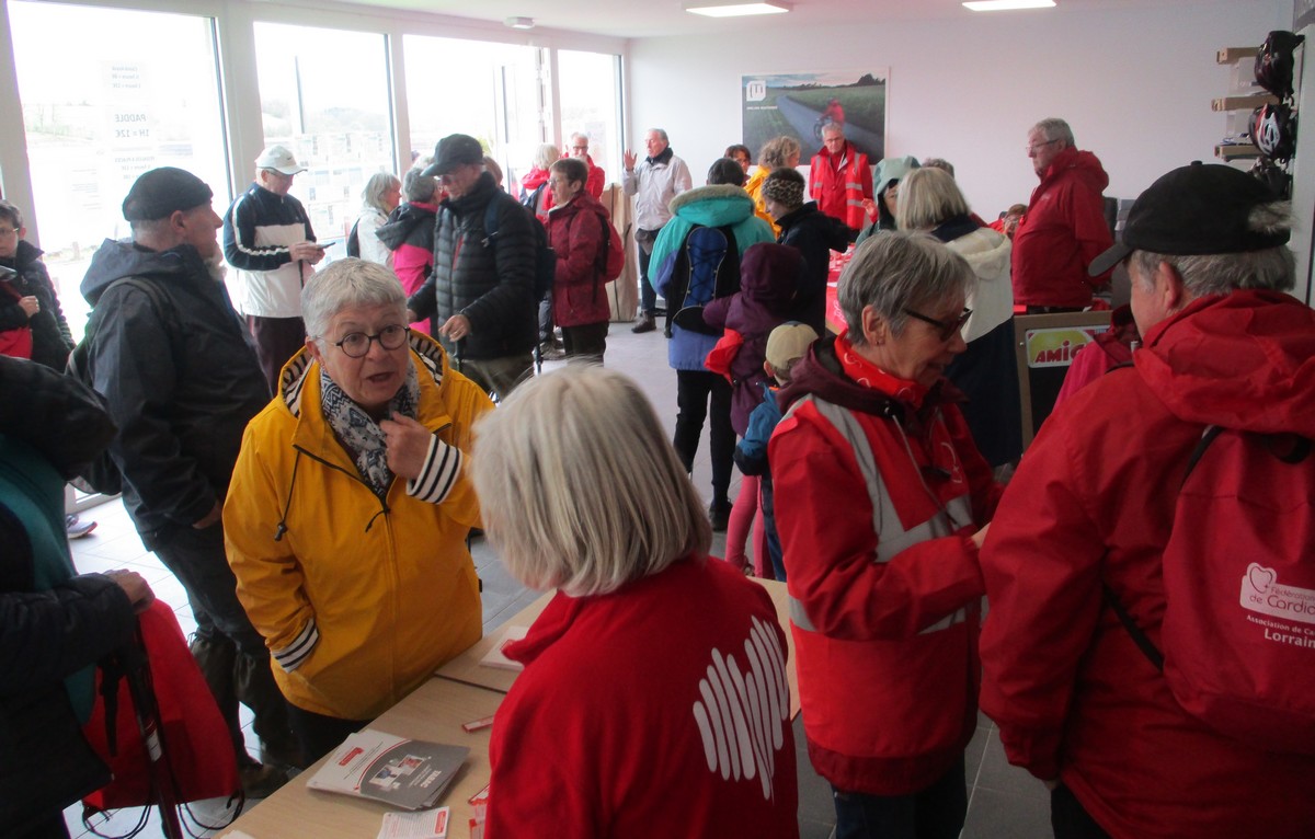 Vu le temps qu’il nous annonçait ce samedi après-midi, à part une petite pluie fine qui n’a duré que quelques minutes lorsque nous longions le canal, nous avons été préservé ; on a même eu un rayon de soleil qui nous a réchauffé le cœur. Dommage que certains adhérents n’ont pas pu participer aux parcours du cœur proposés cette année. Nelly s’est exprimée à tous, juchée sur un pédalo, avant le départ. Chacun pouvait choisir le circuit qui lui convenait, à savoir : un petit de presque 6 kms qui emmène au village de Peigney en passant par le canal avec retour par la ferme d’Angoulevent et un grand de plus de 10kms qui longe la Liez côté nord jusqu’à rejoindre la stratégique qui ramène au point de départ. Le point commun aux deux circuits était une pause à proximité d’un calvaire où le responsable des marches avait installé un barnum ainsi que les accessoires indispensables pour rappeler les gestes qui sauvent, à savoir : la respiration artificielle et l’emploi du défibrilateur. Un petit ravitaillement était offert à l’issue. Ils étaient une bonne vingtaine de participants pour faire le petit circuit et une bonne trentaine pour le grand circuit. Une collation était offerte à la fin par le club à chacun des valeureux marcheurs.
