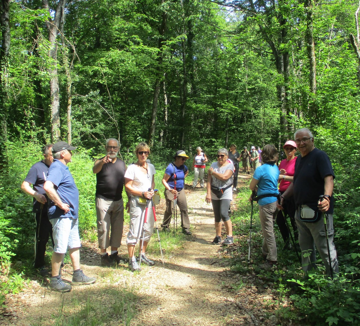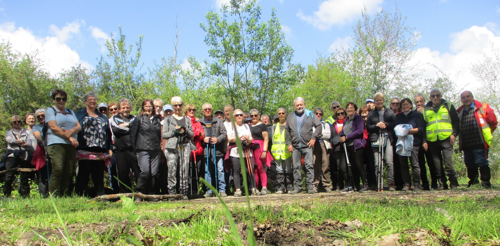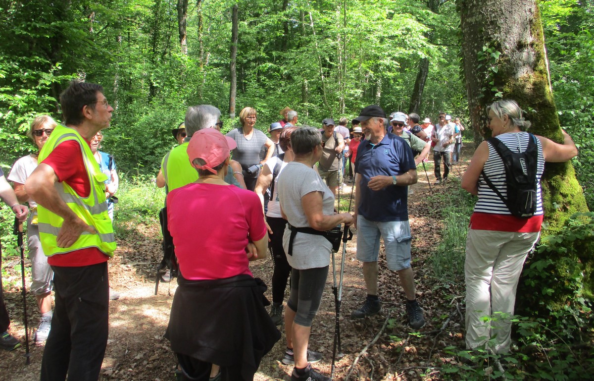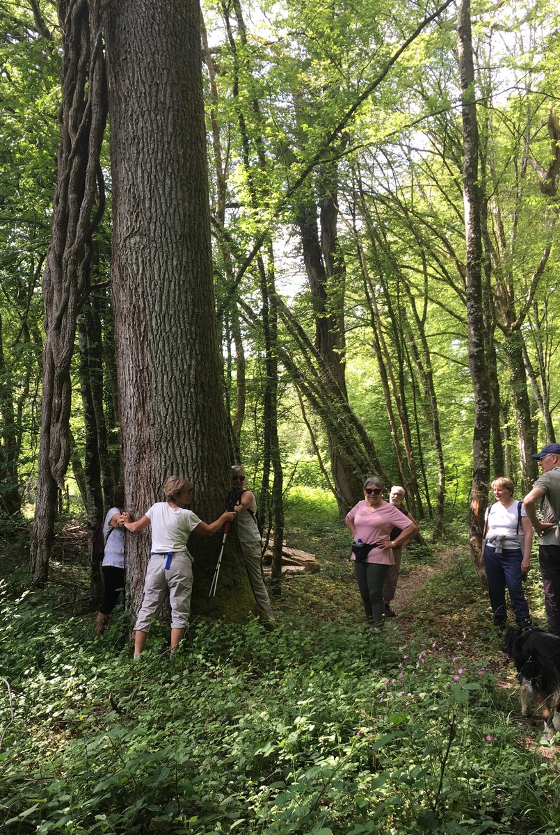Cet après-midi ensoleillé et chaud nous a permis d’effectuer avec grand plaisir notre marche du mardi. Nous étions entre 30 et 40 présents, certaines et certains avaient même sorti leurs mollets. Après avoir arpenté la plaine, nous entrons dans le bois qui nous apporte un peu de fraicheur. Un arrêt s’impose alors devant une signalétique nous indiquant l’endroit où un maquisard a été fusillé. Il est vrai que nous longeons le maquis de Voisines. Un autre arrêt pour le ravitaillement et la photo et nous poursuivons sous la bienveillance de notre Noël soulevant quelque branche obstruant le chemin pour laisser passer les dames ! Mais plus loin dans une descente, votre serviteur s’est laissé surprendre par une branche roulant sous son pied et provoquant ainsi une chute sans gravité, ni pour lui, ni pour l’appareil photo … ouf ! D’autres s’adonnent aussi à s’imprégner de l’énergie positive dégagée par certains arbres ! Et nous voici sortant du bois pour rejoindre le village, non sans avoir pour certaines, cueilli au passage un petit bouquet printanier. Un nouveau moment de recueillement devant une stèle érigée à la mémoire d’un autre fusillé et nous regagnons enfin nos voitures, satisfait de cette belle ballade.