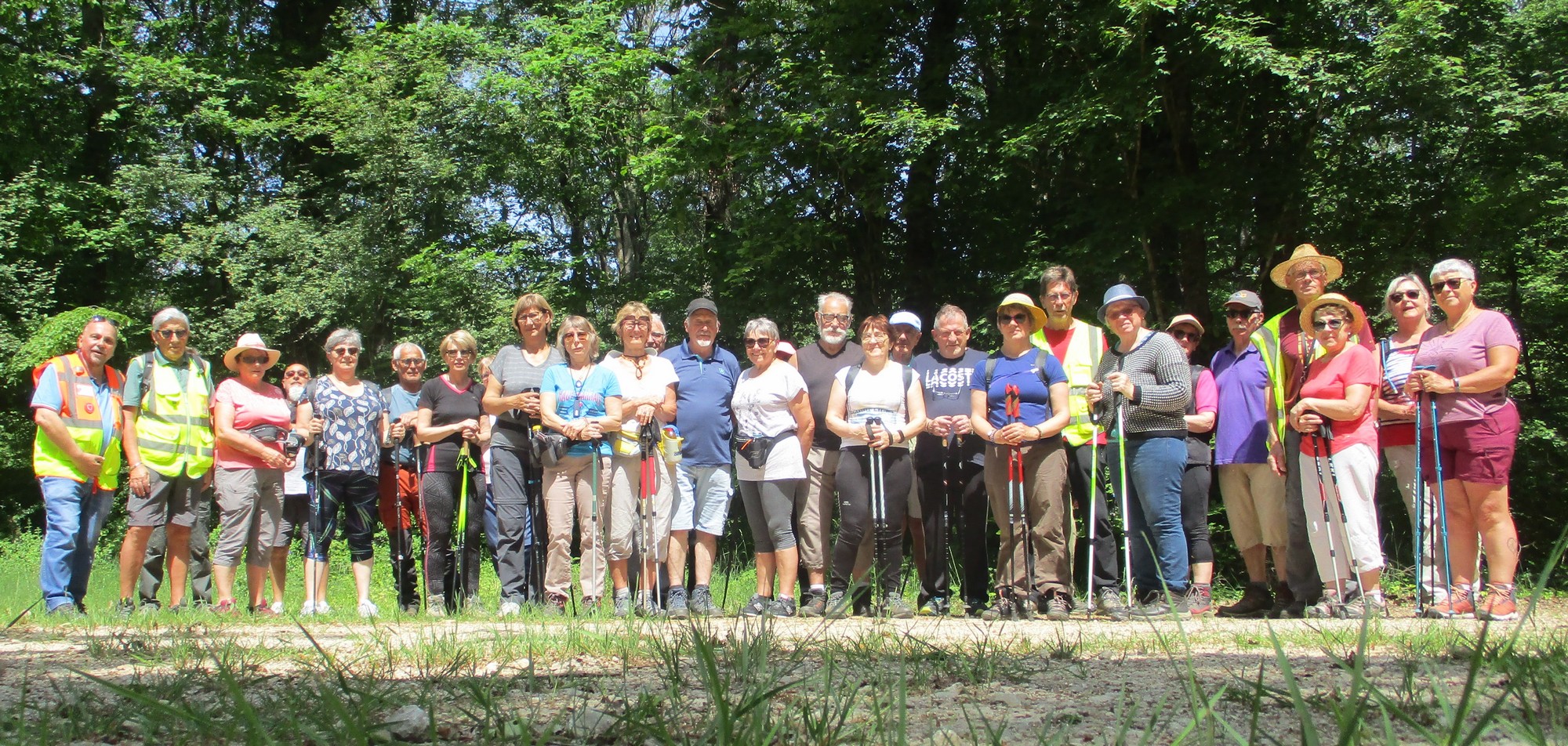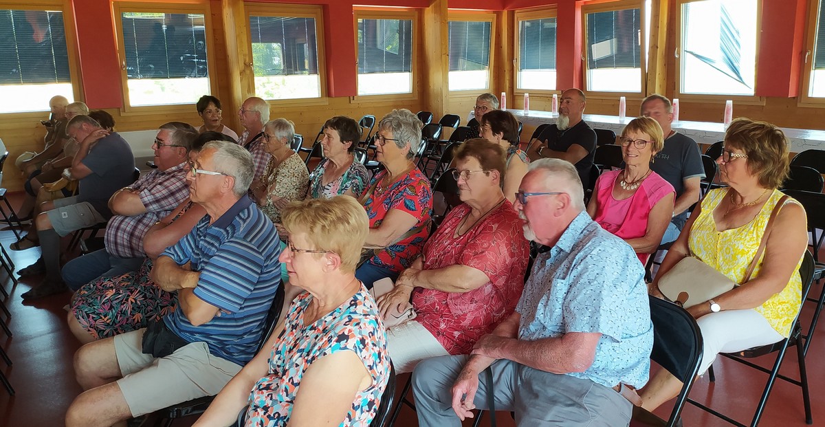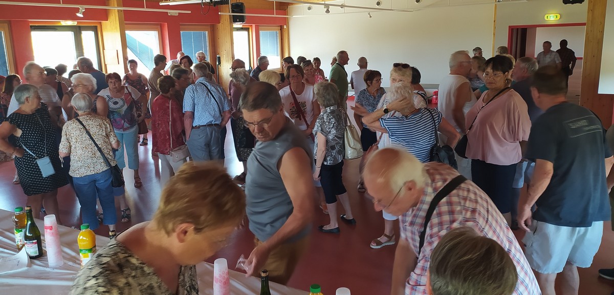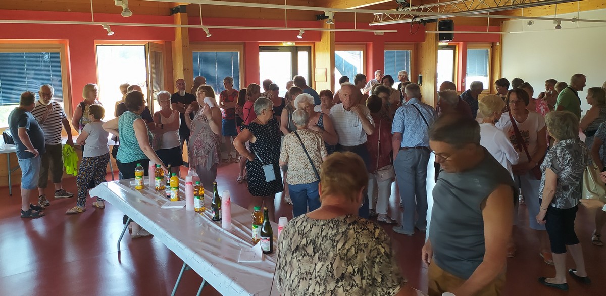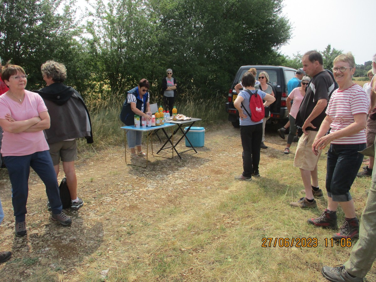 Et nous voilà ce mardi à Marac et plus précisément aux abords de l’étang de Chenot. C’est un parcours largement ombragé qui a satisfait la bonne trentaine de marcheurs venus à la dernière marche de la saison. La température est supportable, rien à voir avec celle des jours d’avant. Mais en arrivant au pied de l’étang, quelle n’est pas notre surprise de voir qu’il n’y a quasi plus d’eau. On aperçoit même des moules géantes jonchant le sol aride. Une dernière photo de groupe et nous remontons jusqu’à nos voitures où Nelly a dressé la table pour nous offrir une petite collation pour arroser cette fin d’année du club. Et on a trinqué en se souhaitant de bonnes vacances en attendant de se retrouver en septembre.