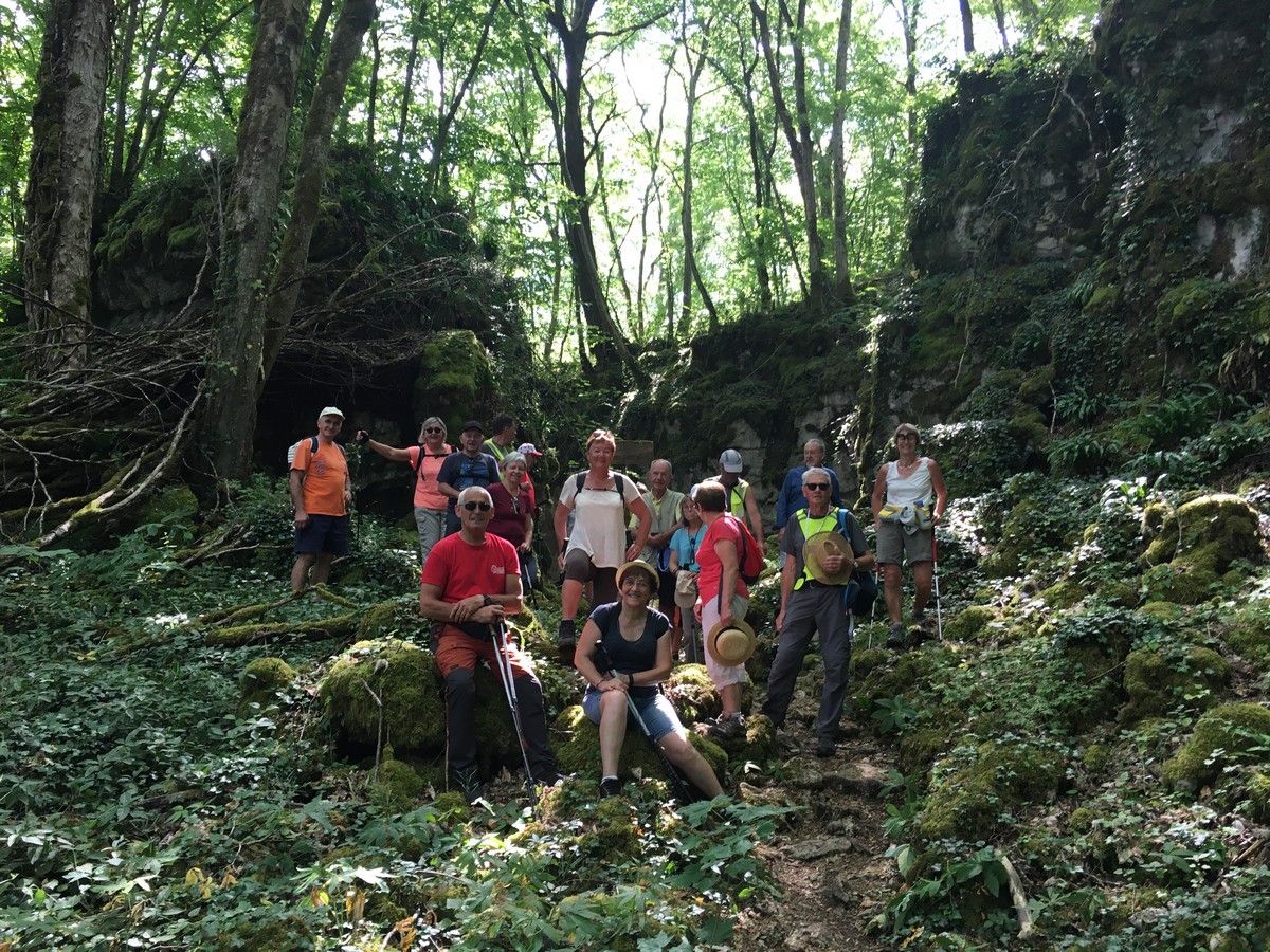 Noidant le Rocheux, parking salle des fêtes : c’était le lieu de rendez-vous ce matin pour une vingtaine de marcheurs. La randonnée initialement prévue de 11,5kms a été volontairement écourtée pour ne marcher que dans la fraîcheur du bois pour le plus grand bonheur de tous. Un beau parcours sur le sentier écologique…. au creux du canyon rocheux, une petite grotte n’a pas manqué d’être explorée !!! Un grand merci à notre marcheur local Noël qui nous a gentiment invité à prendre un pot à la fin de cette belle randonnée.